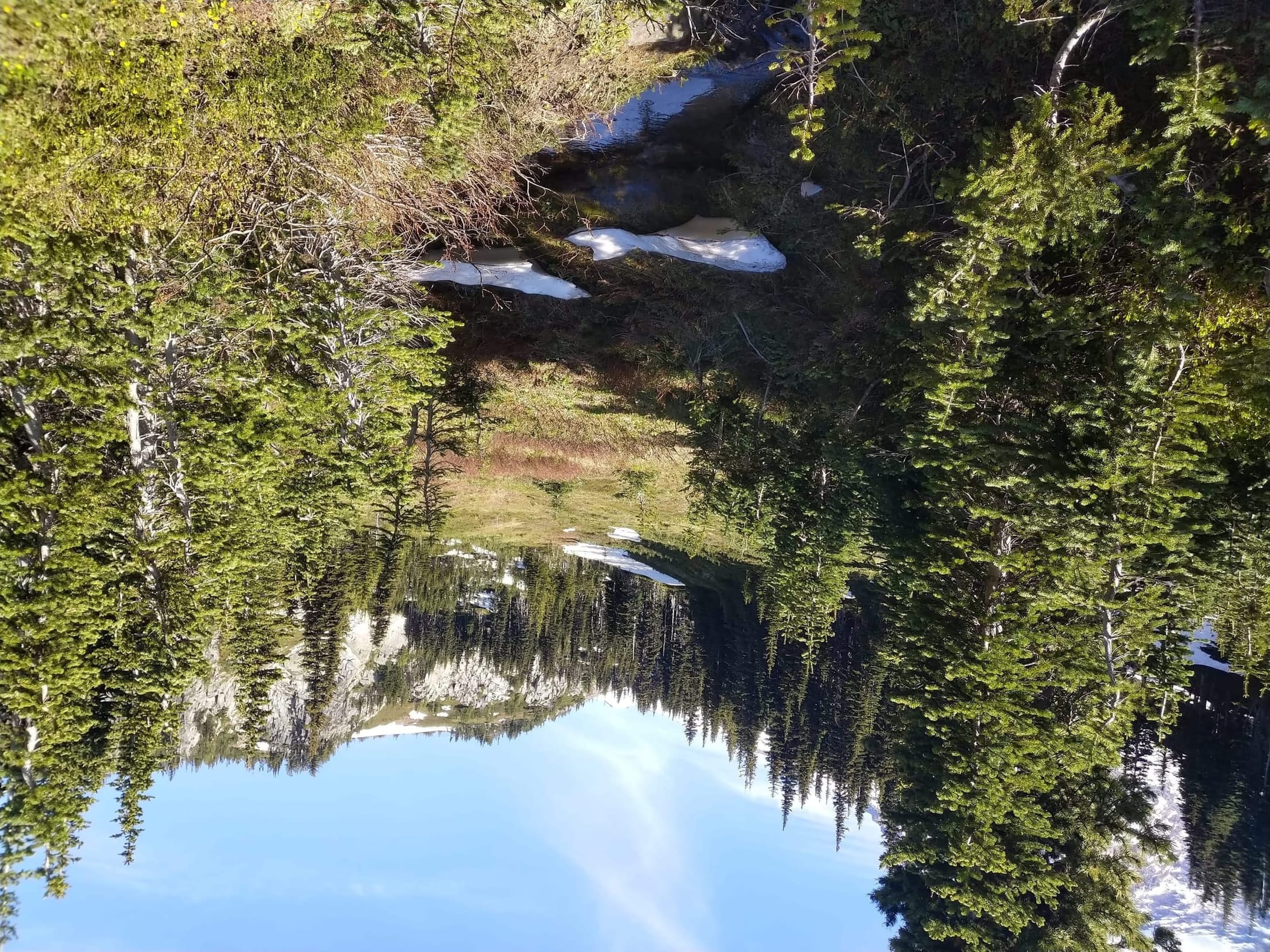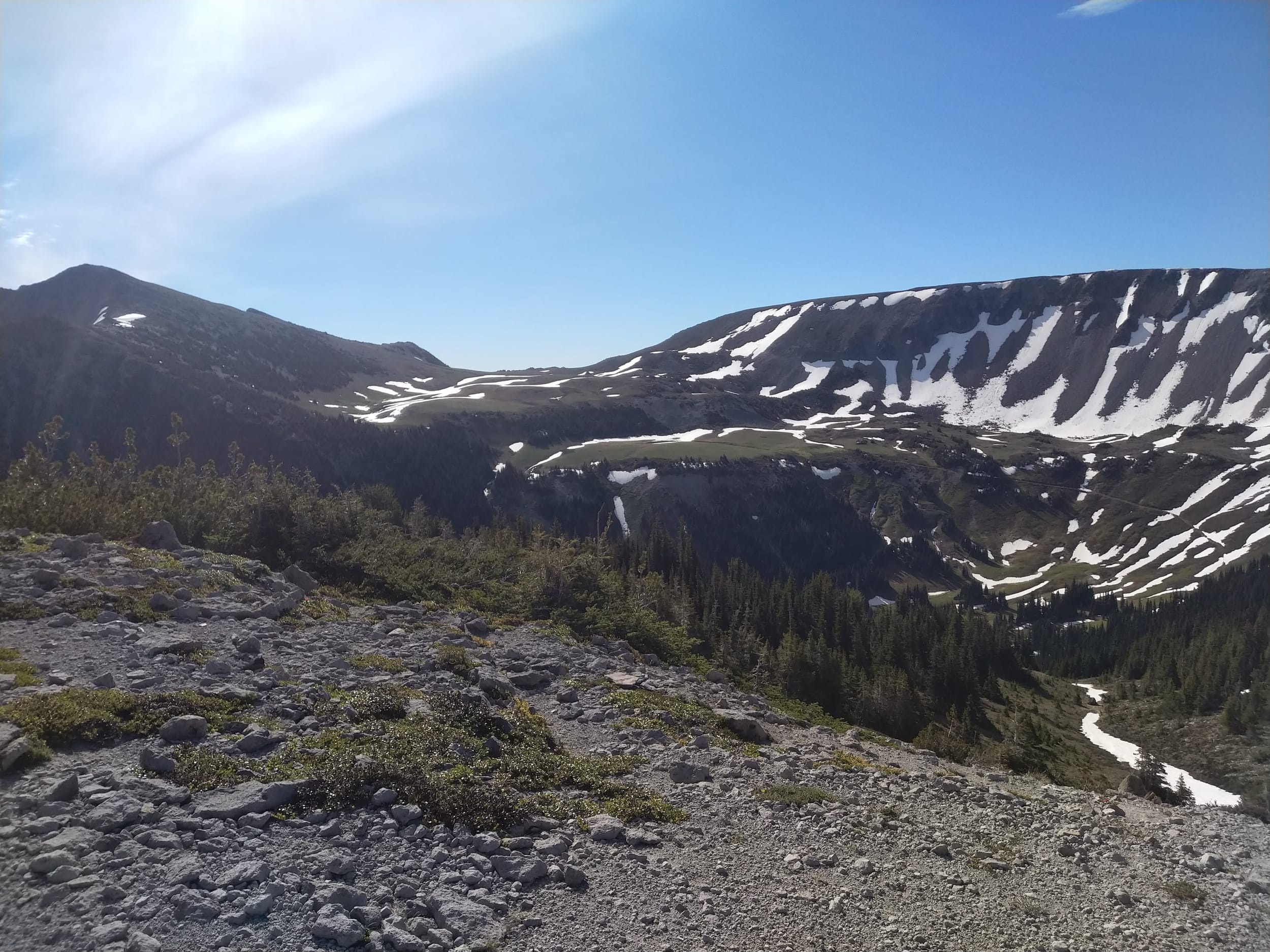 This was a long day, but a beautiful one. While Devil’s dream only had patches of snow, we immediately hit snow as we left camp. We had 3 separate high points today, each hitting snow before coming back down into lower valleys. On our first climb, we passed Squaw lake along Devil’s dream creek. Most of this was covered in snow, so there wasn’t much to see. Once we got to the high ground surrounding Indian Henry’s cabin, we saw open snow covered meadows that were quite beautiful.