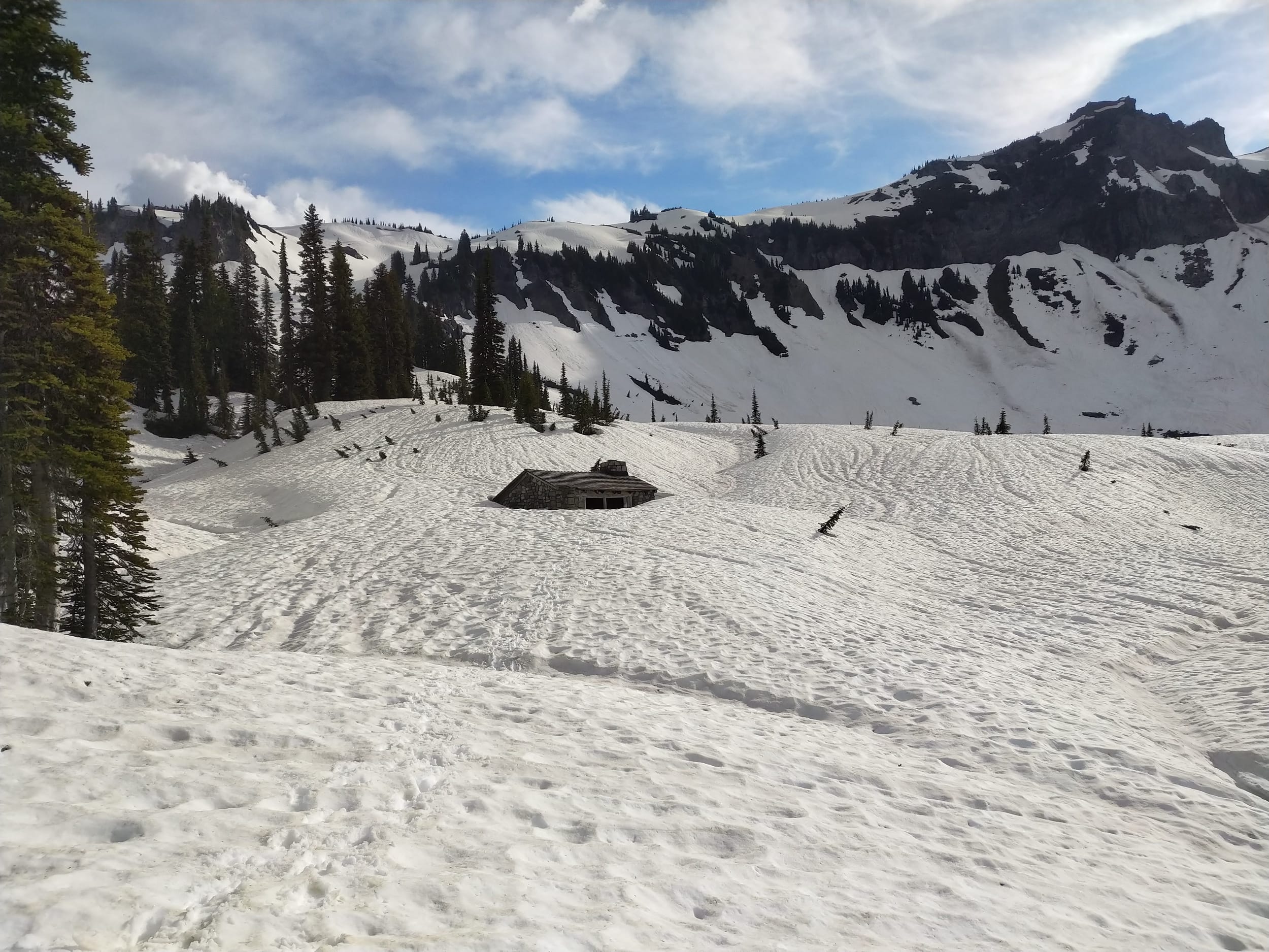 Day 5 saw a spectacular climb back into the deep snow and all the way into the high alpine at Emerald ridge pass. We also saw the first suspension bridge at Tahoma Creek (which was impressive given it’s location) and the oldest patrol cabin in the park at Indian Henry’s cabin (built in 1915).