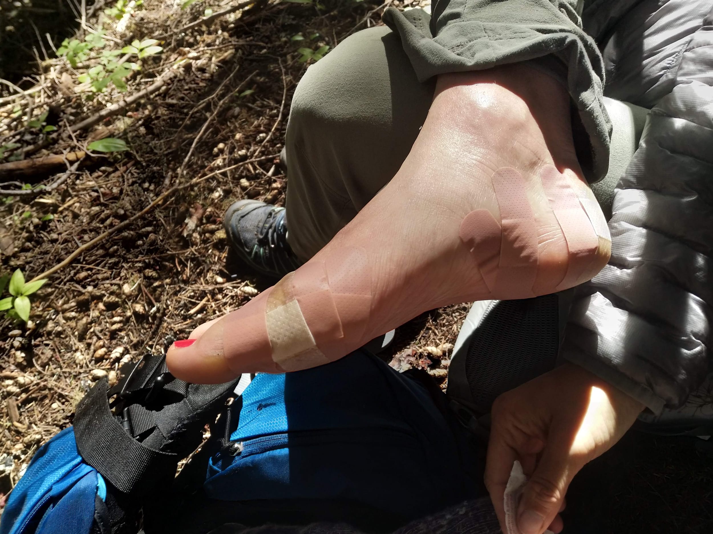 Angela had a rough time with her feet this morning. Finally when the rain abated a little, we stopped and bandaged up all the hotspots that were bothering her before continuing. As the rain continued to abate, we got our motivation back and Angela’s feet started to feel a lot better - dry socks can do wonders!