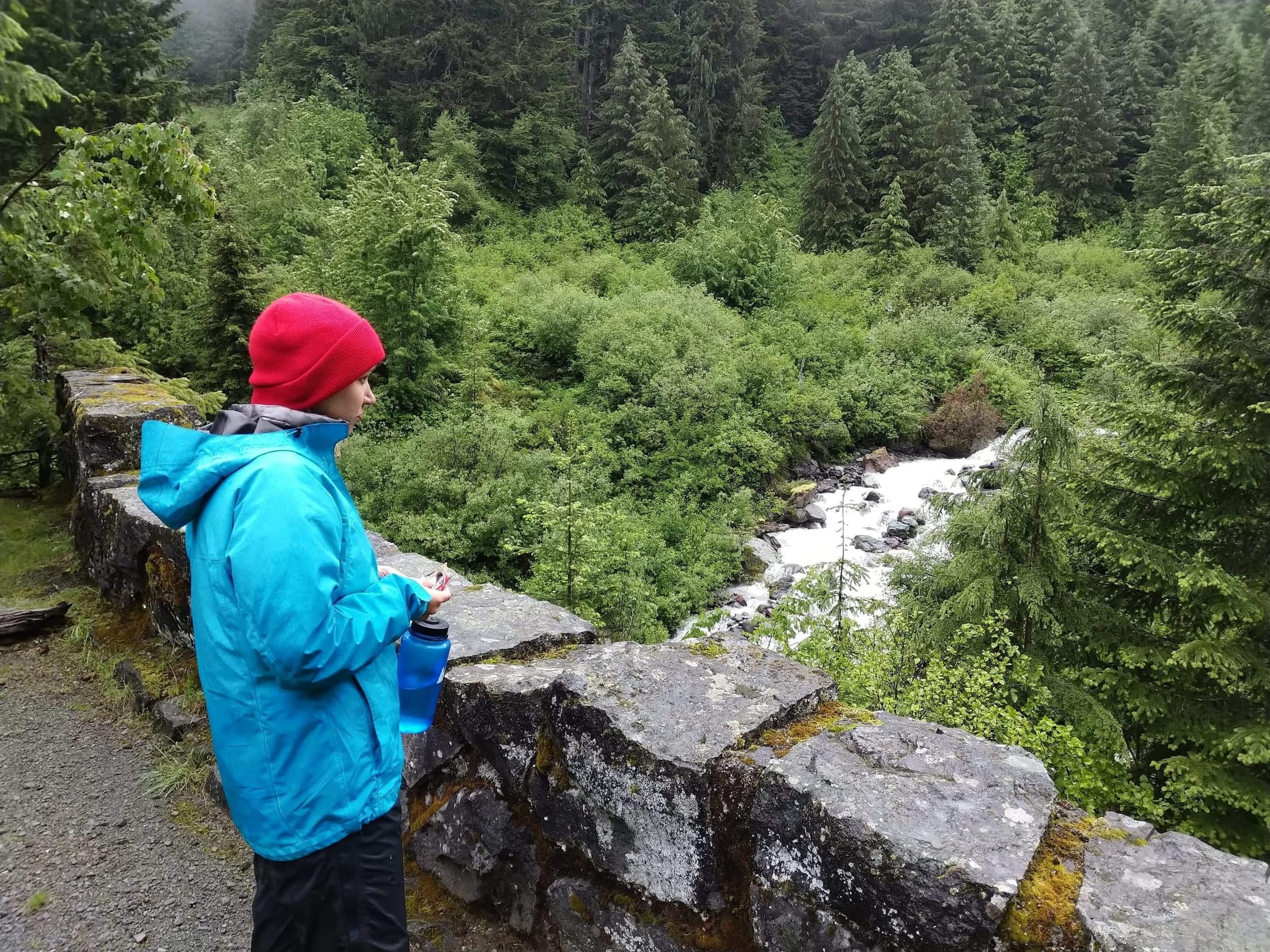 We got to Longmire before my parents and grabbed some breakfast while I charged my GPS/Camera and extra battery packs. Coffee and fancy breakfast was amazing and we were very excited to see Sara. We did a bit of playing around and shopping at the NPS gift shop there. My parents were going to do some day hiking with Sara and my dad had her backpack all ready to go.