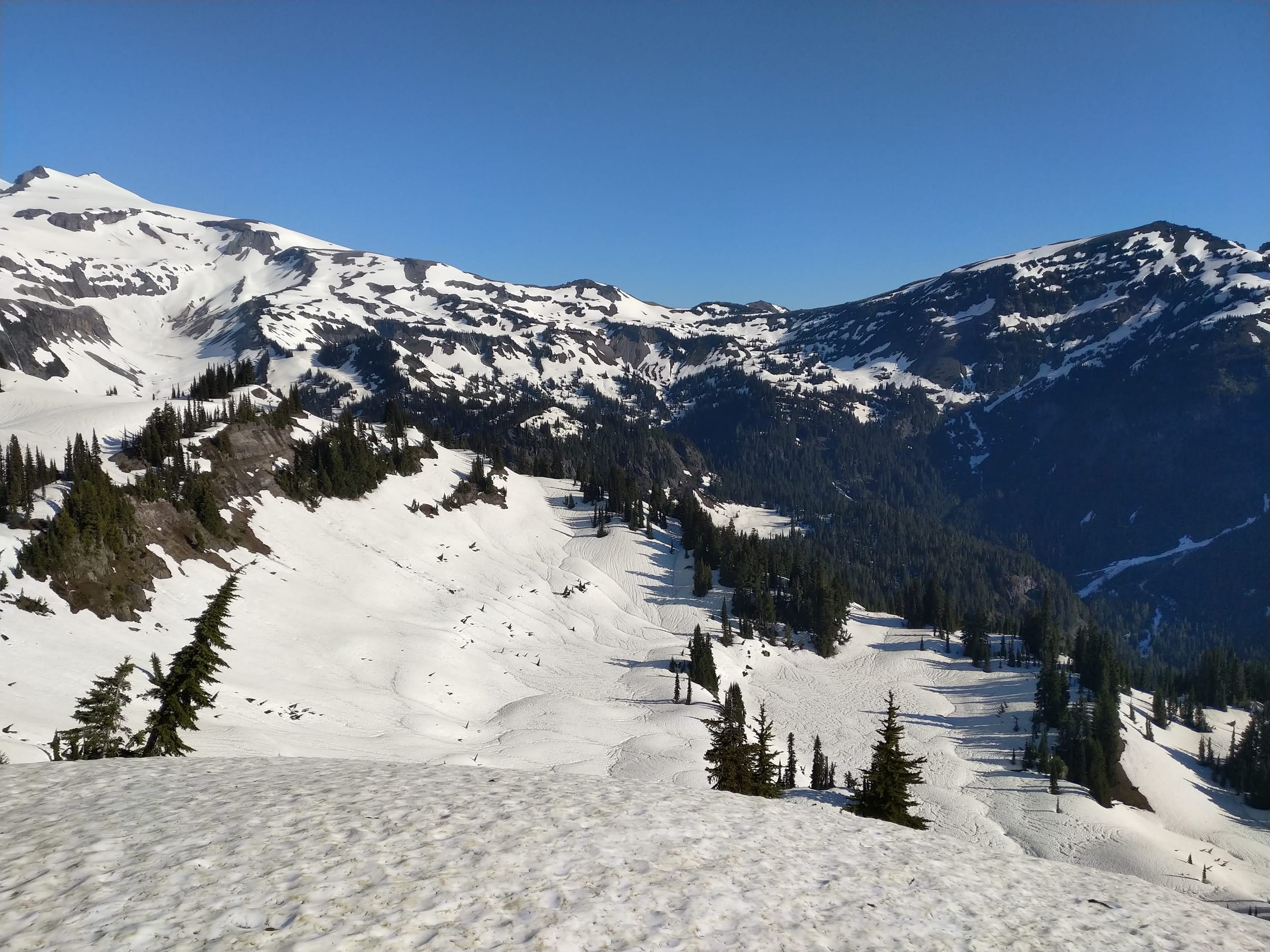 After the climb, the terrain became much more open and wonderful. We took a lot of pictures on day one and scrolling through them now you can see the tremendous variety from our start at White River (dense vegetation) up and over the Panhandle Gap (alpine views) and back down into Indian Bar (dense snow).