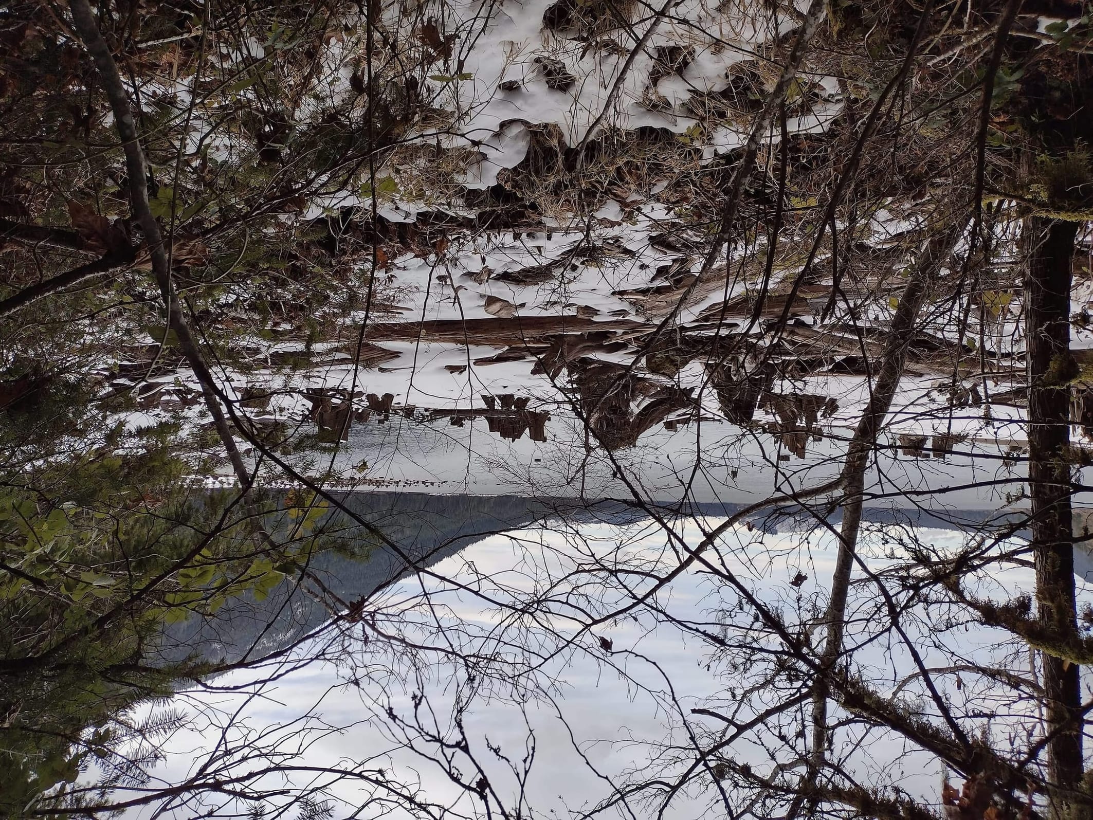 It had been somewhat warm recently (for Feb) and there was a lot of water on the trail - including a bunch of waterfalls draining off the hillside into the lake.