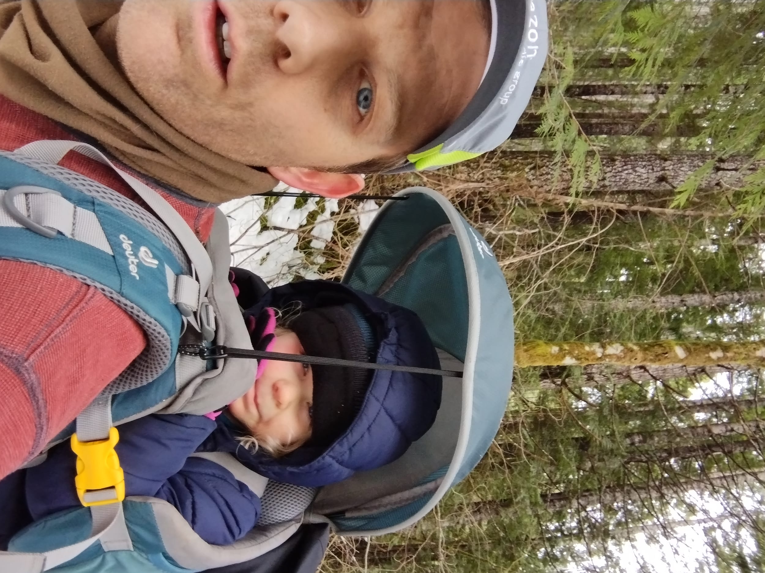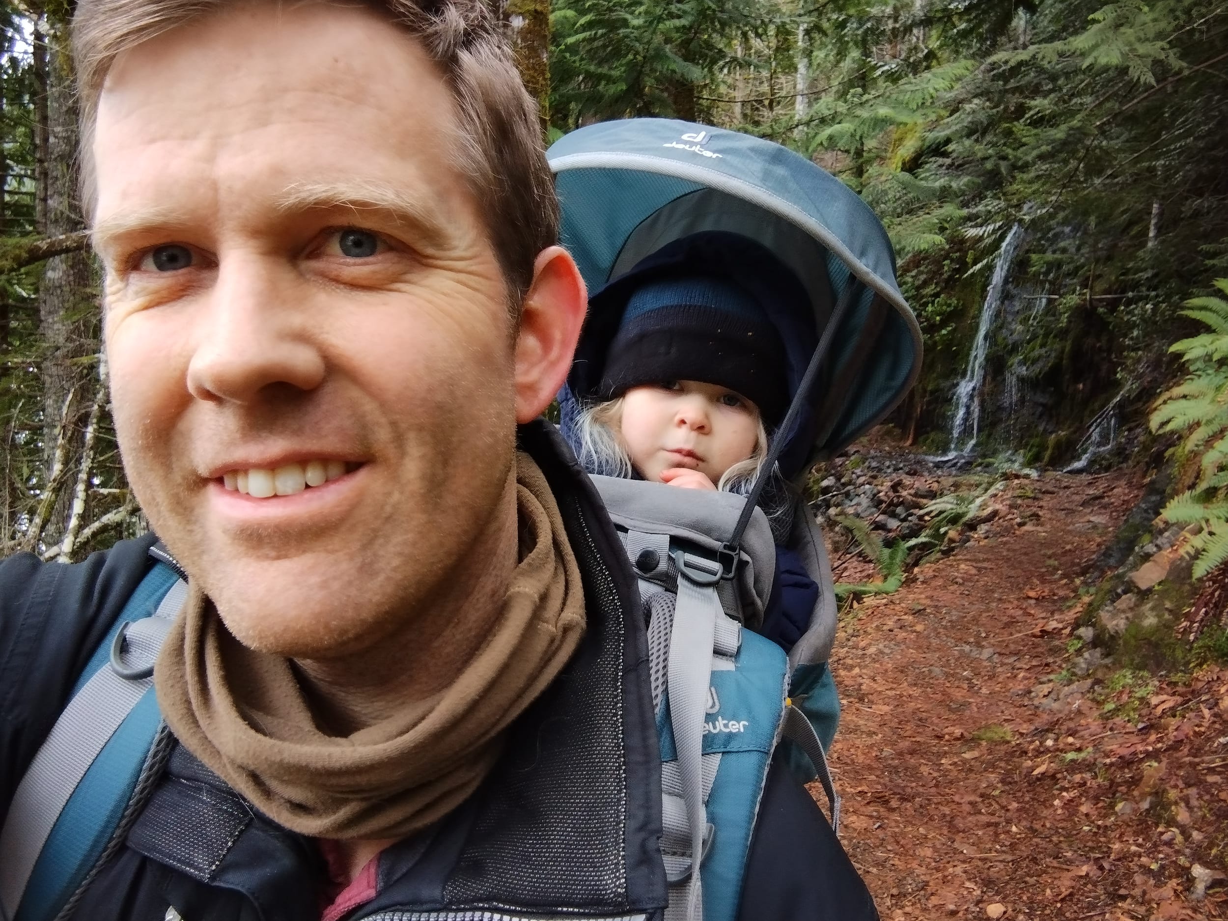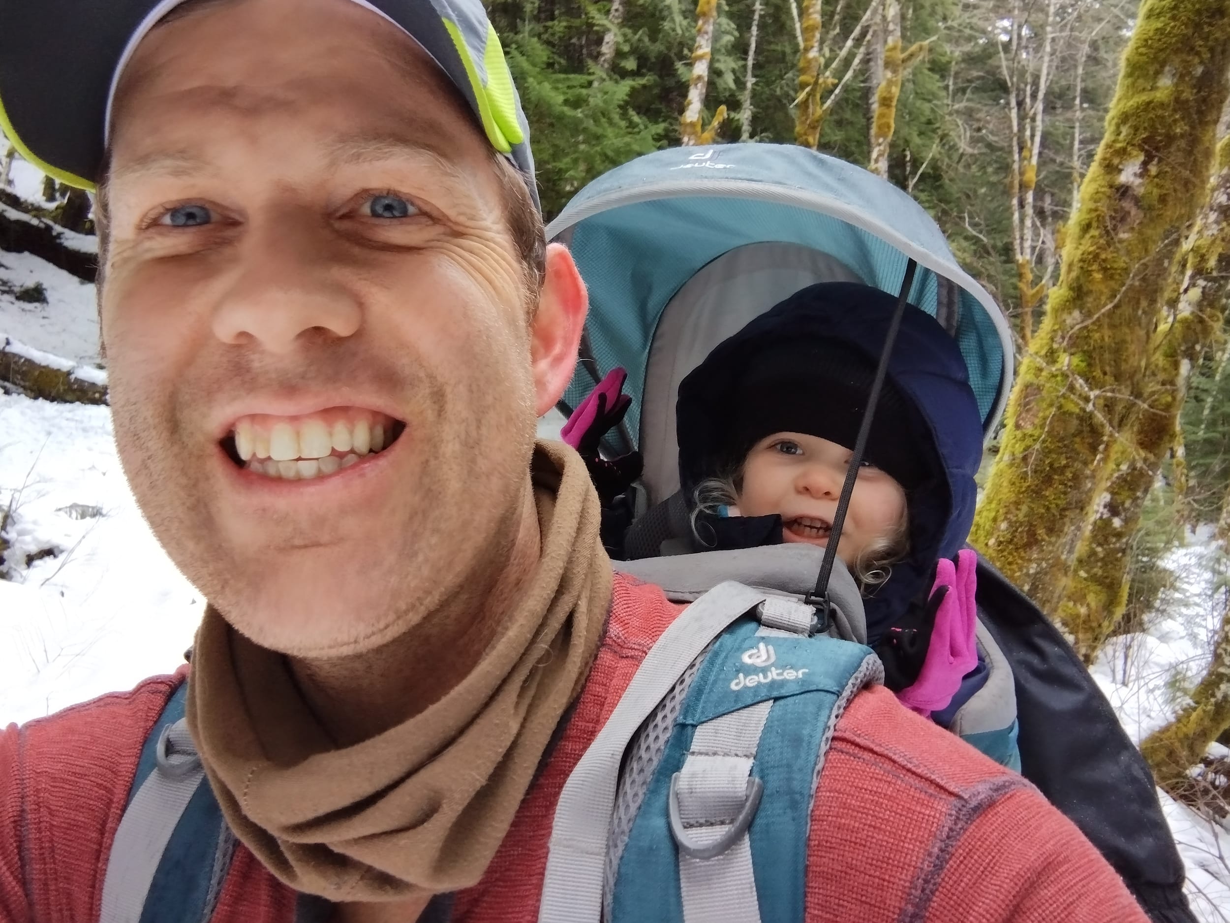 This time of year, the backpack is very cozy. After the quick run around to see all of the water - it’s time to hang out on daddy’s back in the warmth.