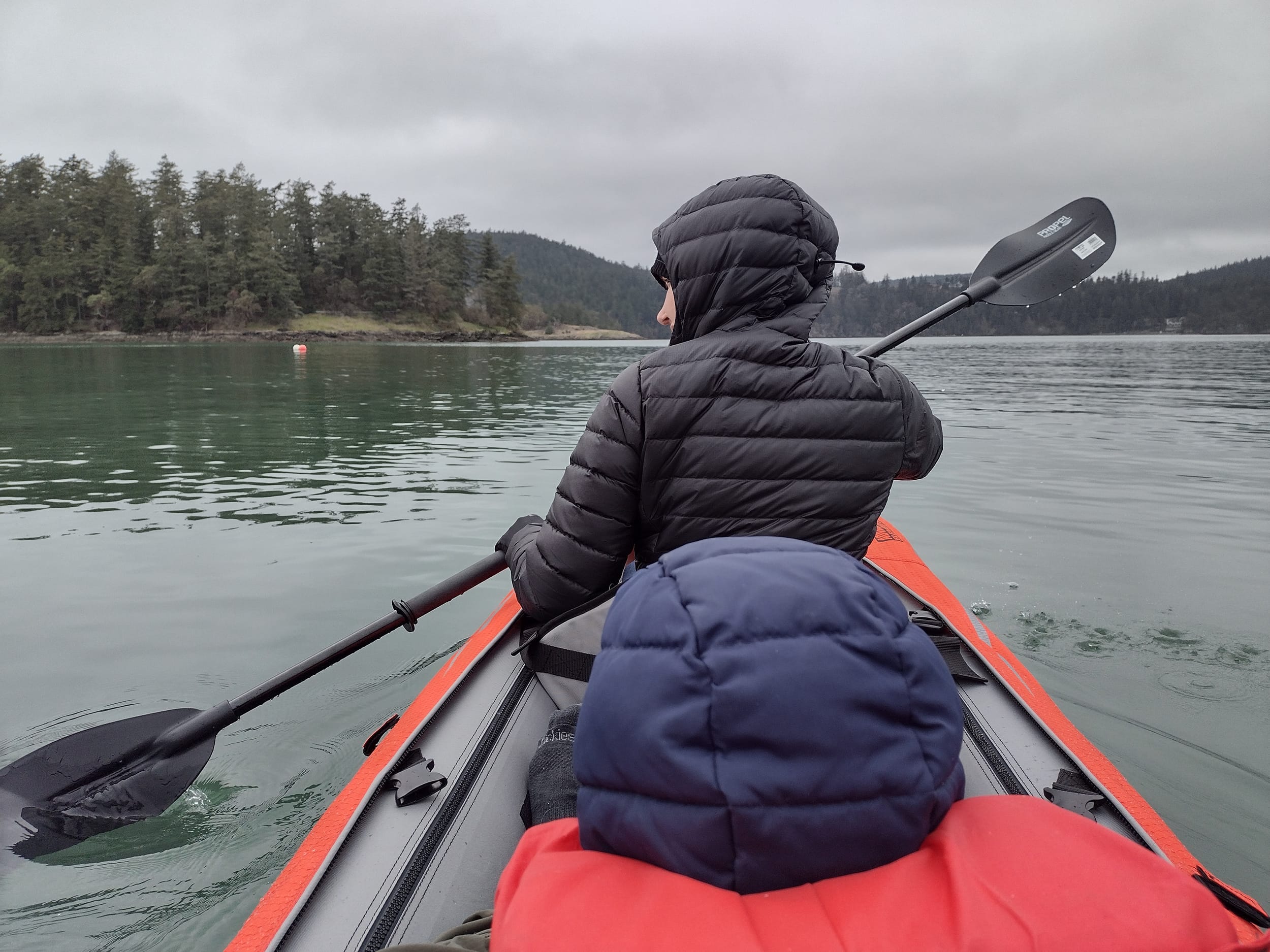 Early the next morning, we got up and made breakfast and drove to the boat launch to try out our new kayak. Inflating it was far simplier than I thought it would be, but we didn’t realize we needed a separate deck cover - so paddling made us a bit wet. Despite that - using the kayak was amazing. It was only barely slower than a plastic or fiberglass kayak and it was super easy to haul around…