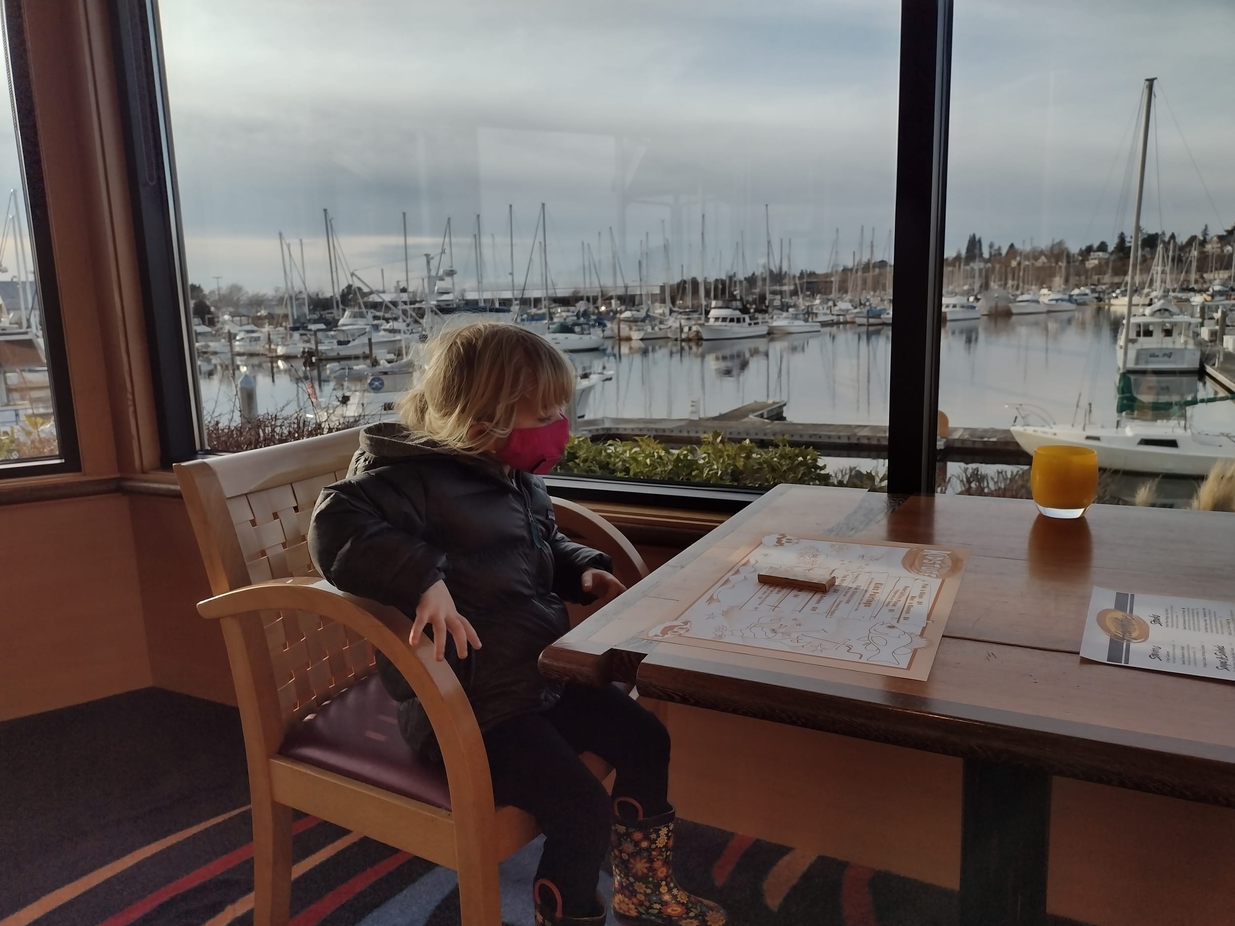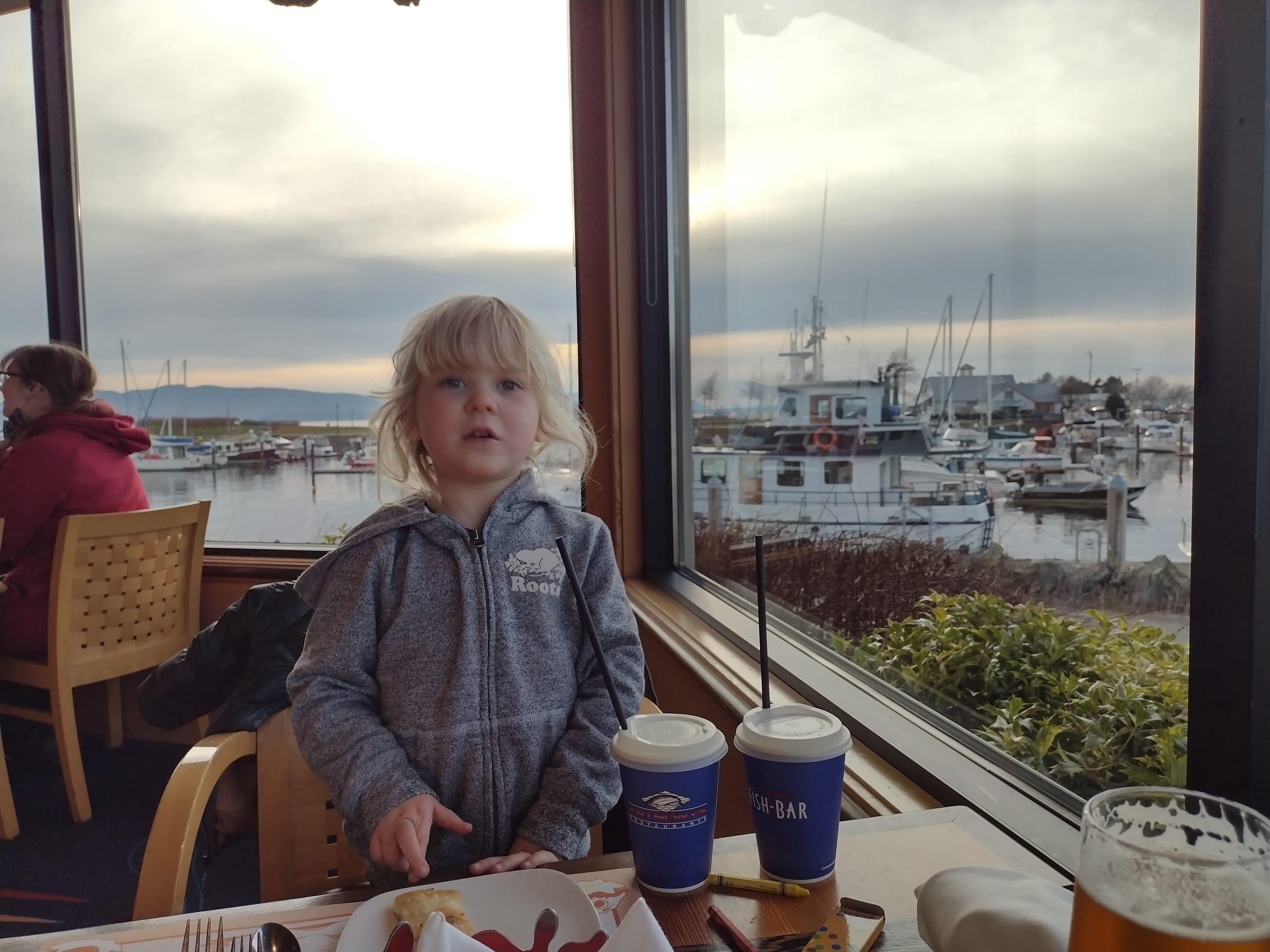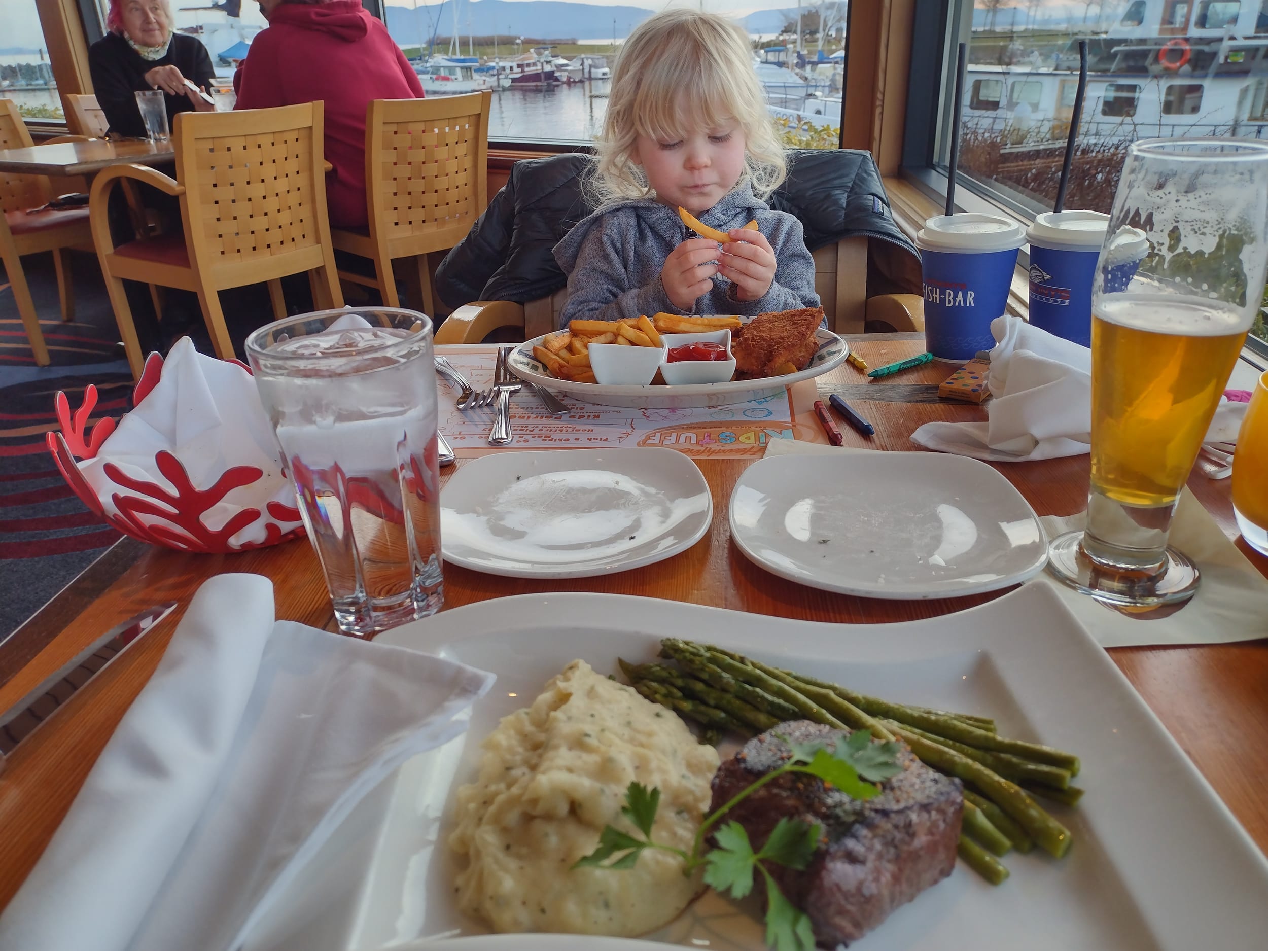 After Saras amazing performance on the hike, we decided to go into Bellingham for a nice dinner. We were a bit messy, but we snuck in anyway… We had an amazing dinner and the view was spectacular.