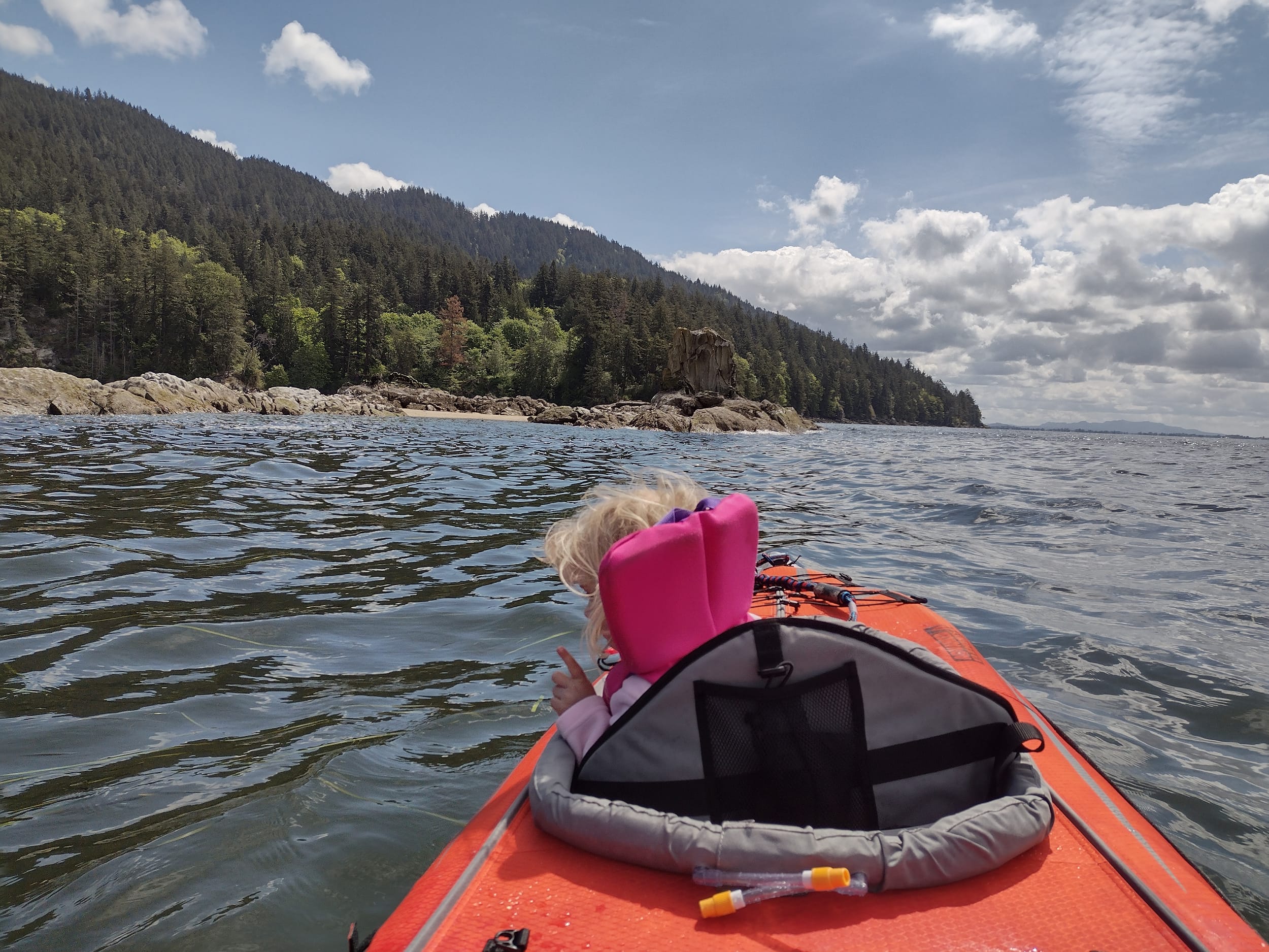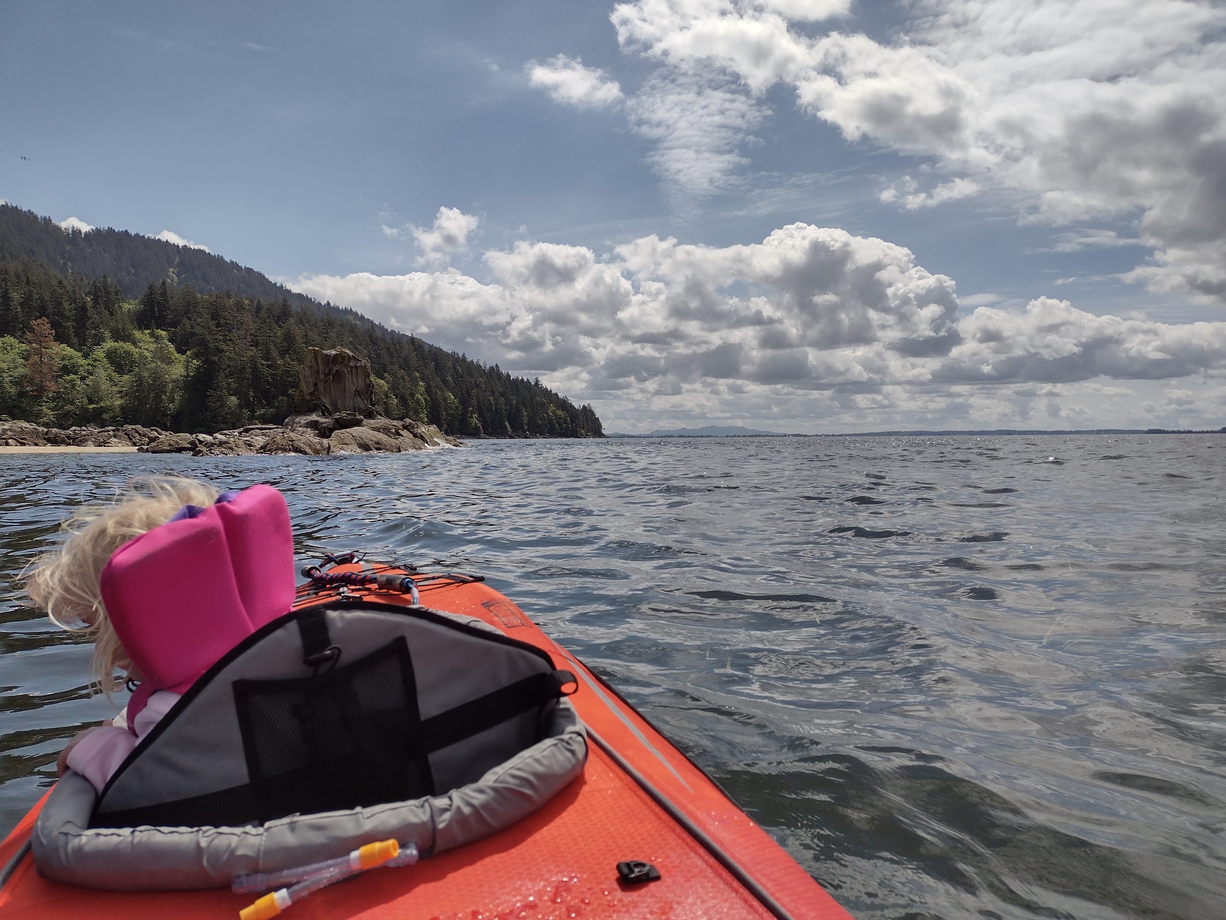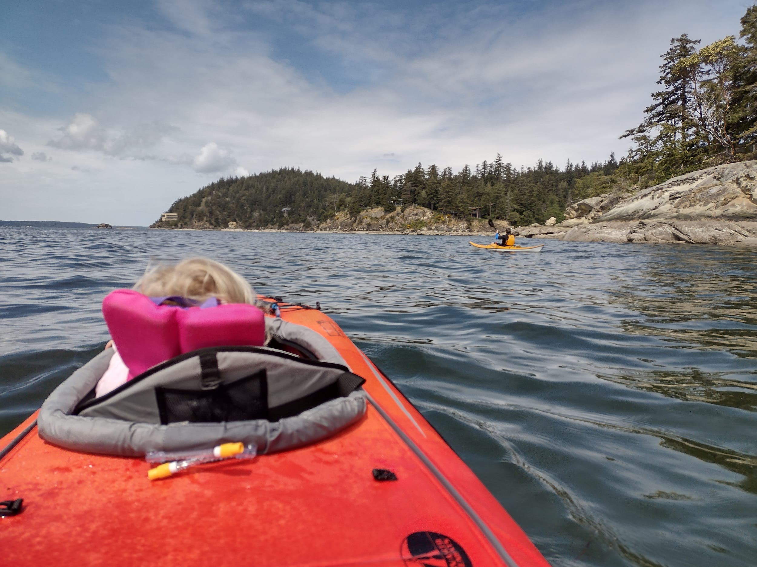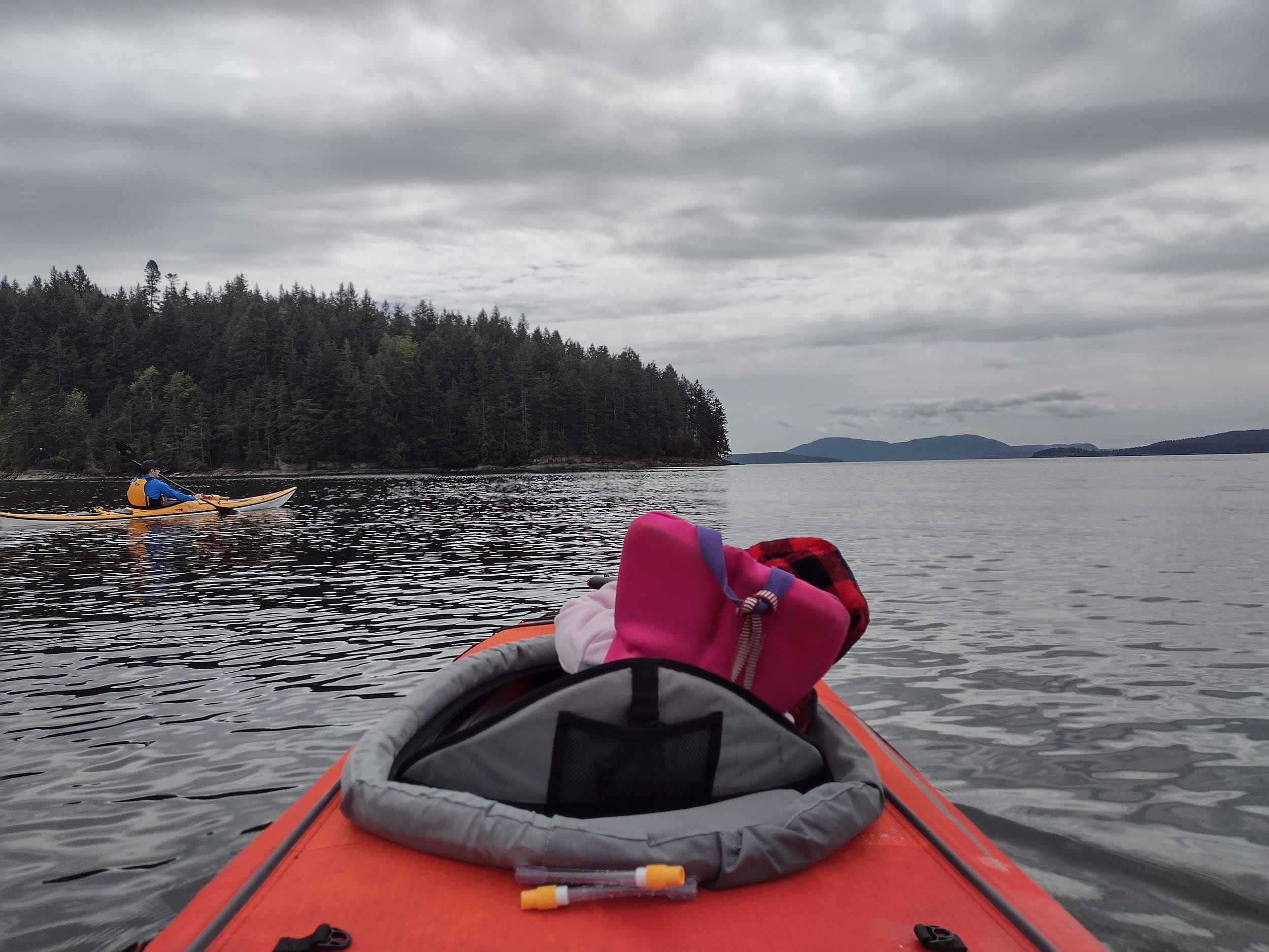 And then the morning paddle - about 3 miles, but very choppy/rough seas. Made paddling any distance really hard… I didn’t get a picture, but we saw some seals from up close - which was super fun - but Sara didn’t seem super impressed. She was far more interested in the bubbles!