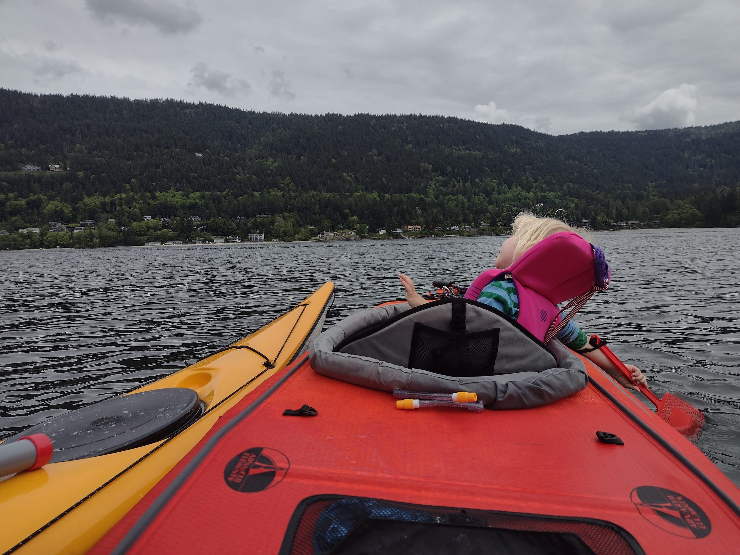 By the end of the paddle, someone was very tuckered out… The gentle rocking did her in. :)