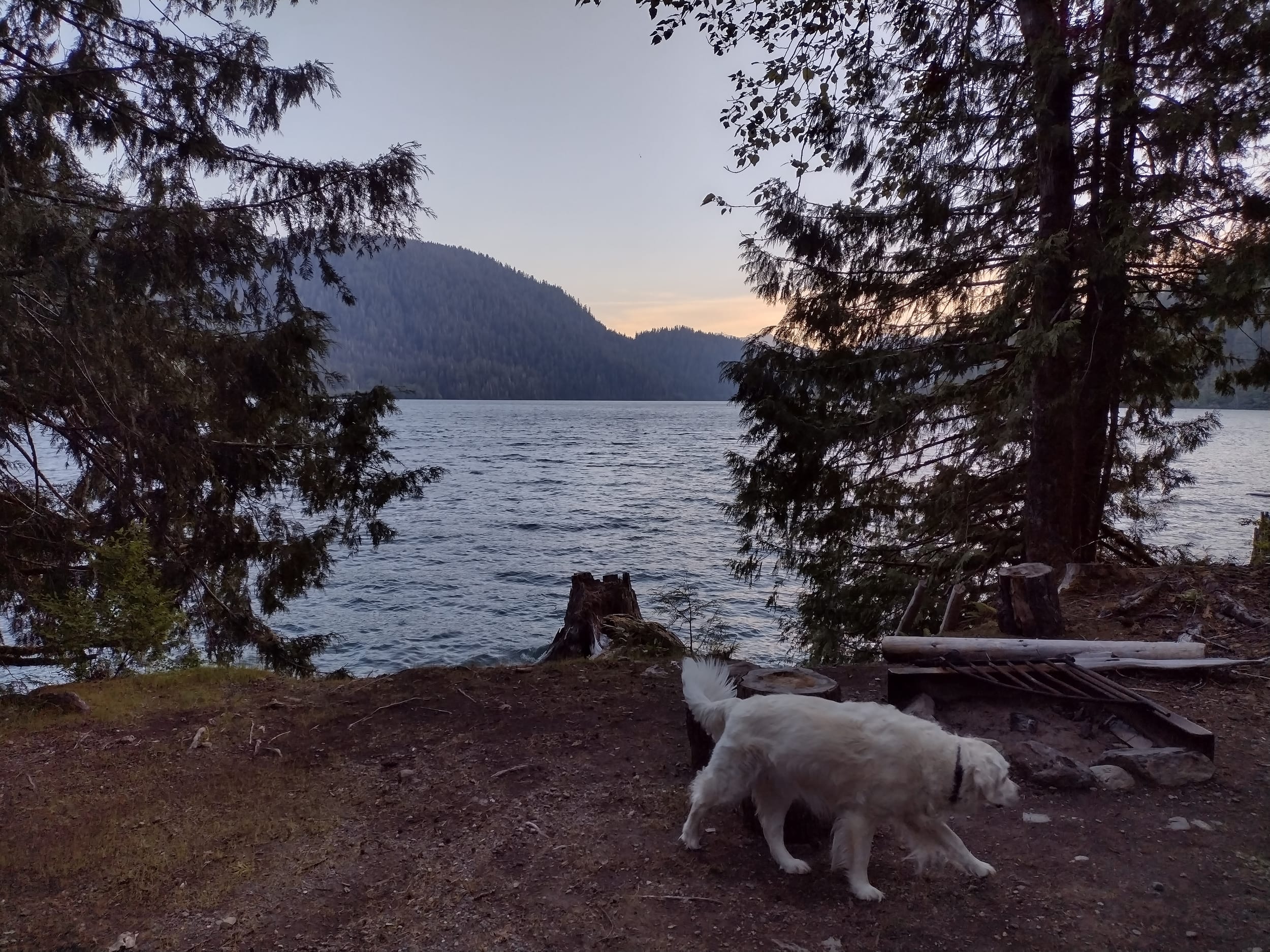 Beautiful sunset from our campsite right on the lake… I love mountain lakes.