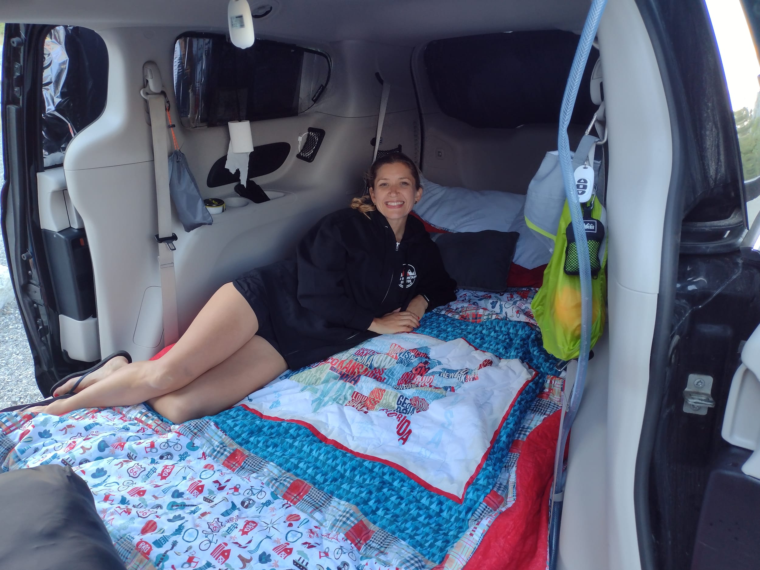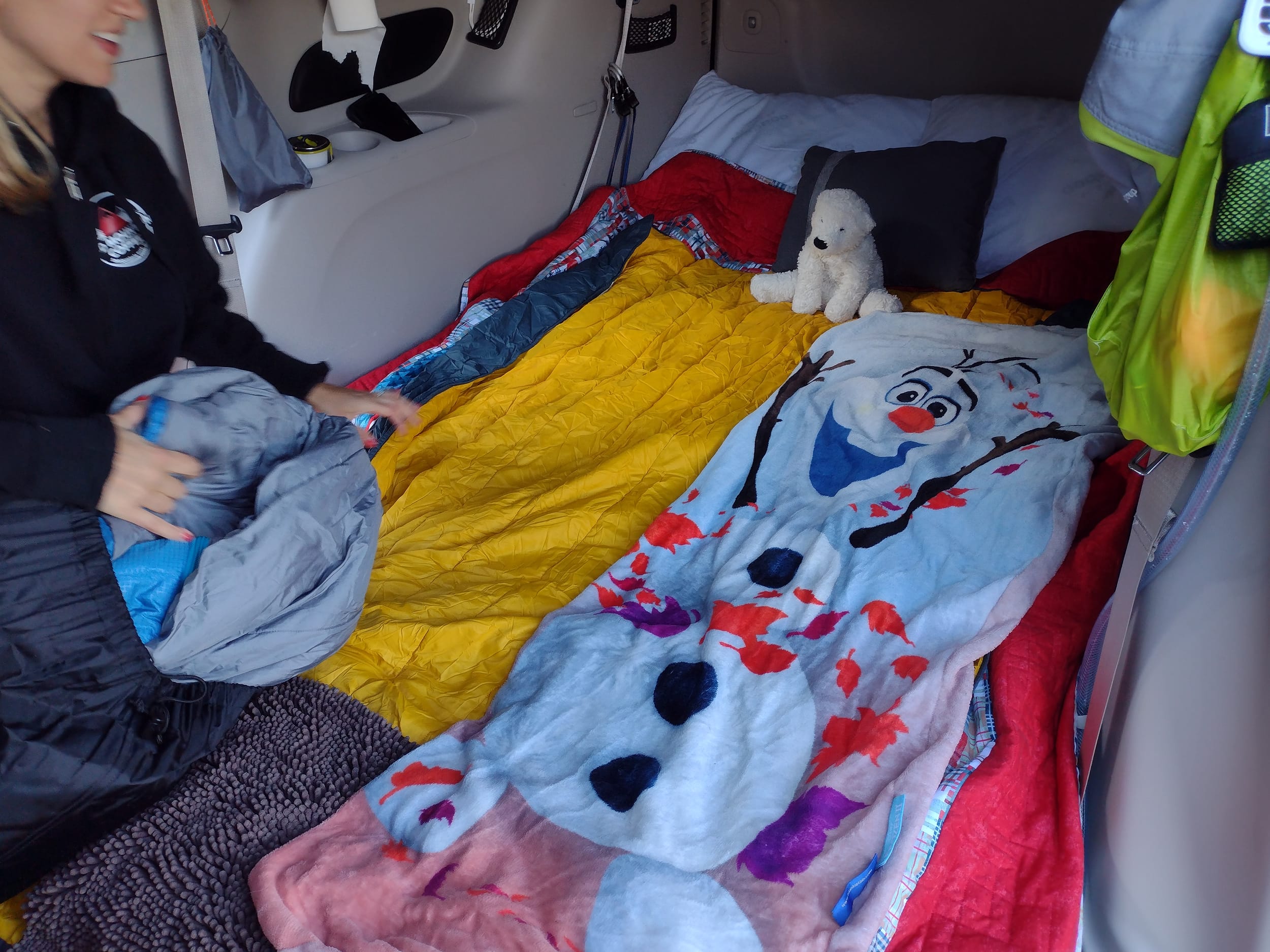 Angela did a much better job making the bed with the van in camper mode than I ever did. So good in fact, that I had to take a couple of pictures: