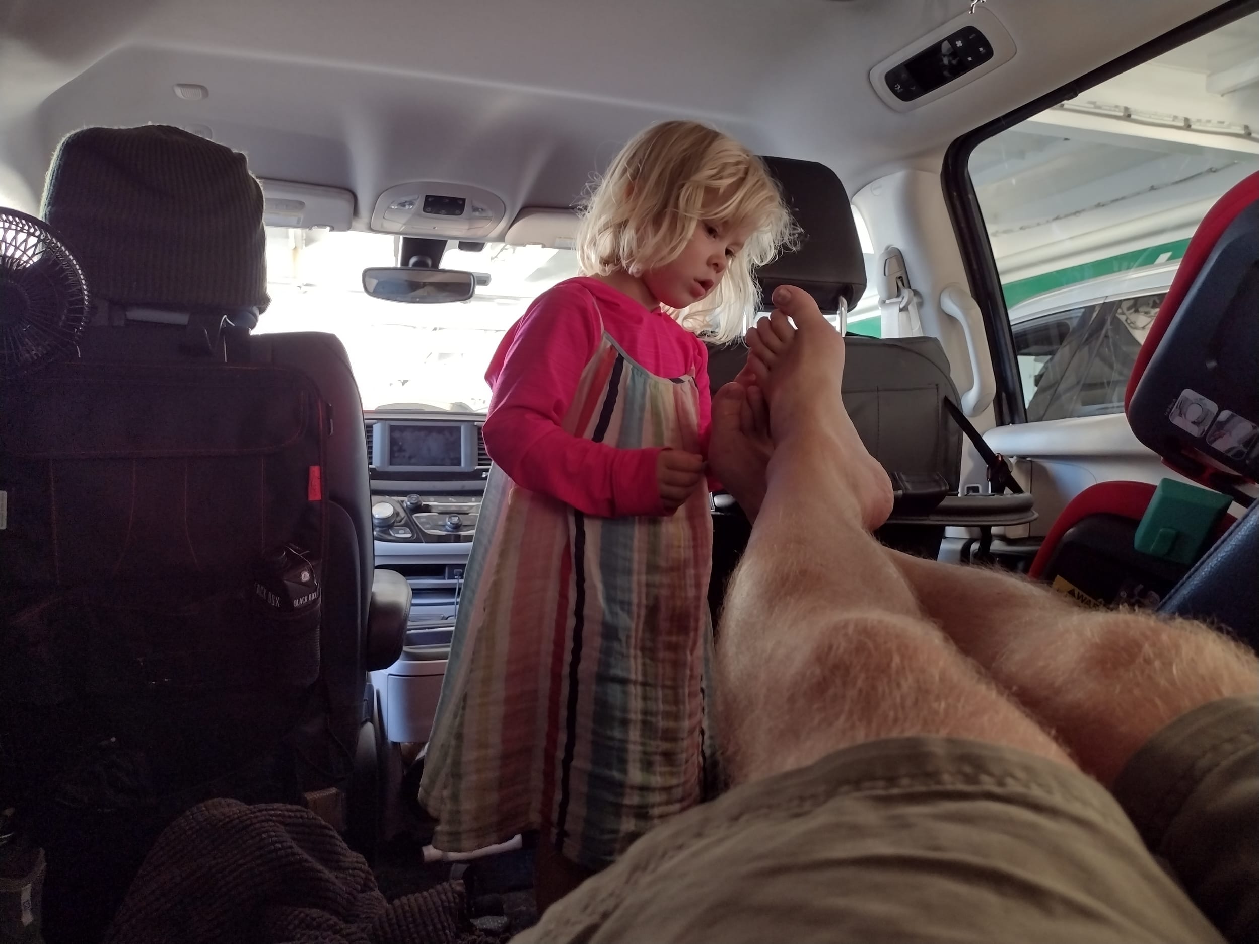 On the ferry, she came back to life. She was very concerned with my feet and wanted to fix all of my dry skin… :)