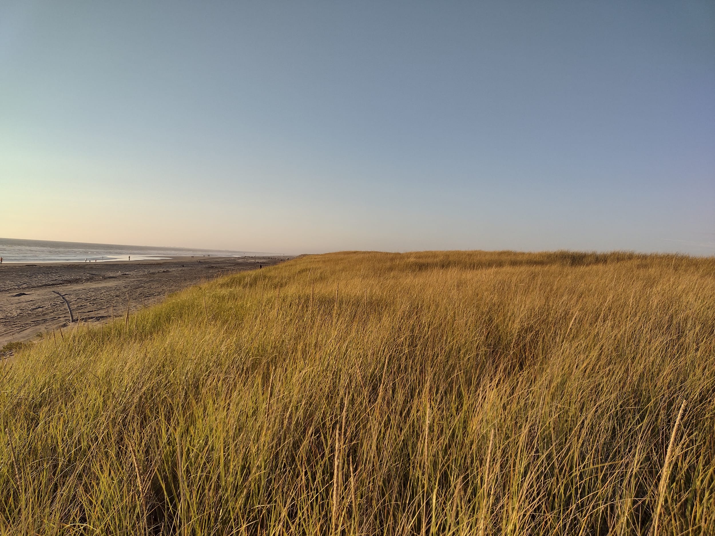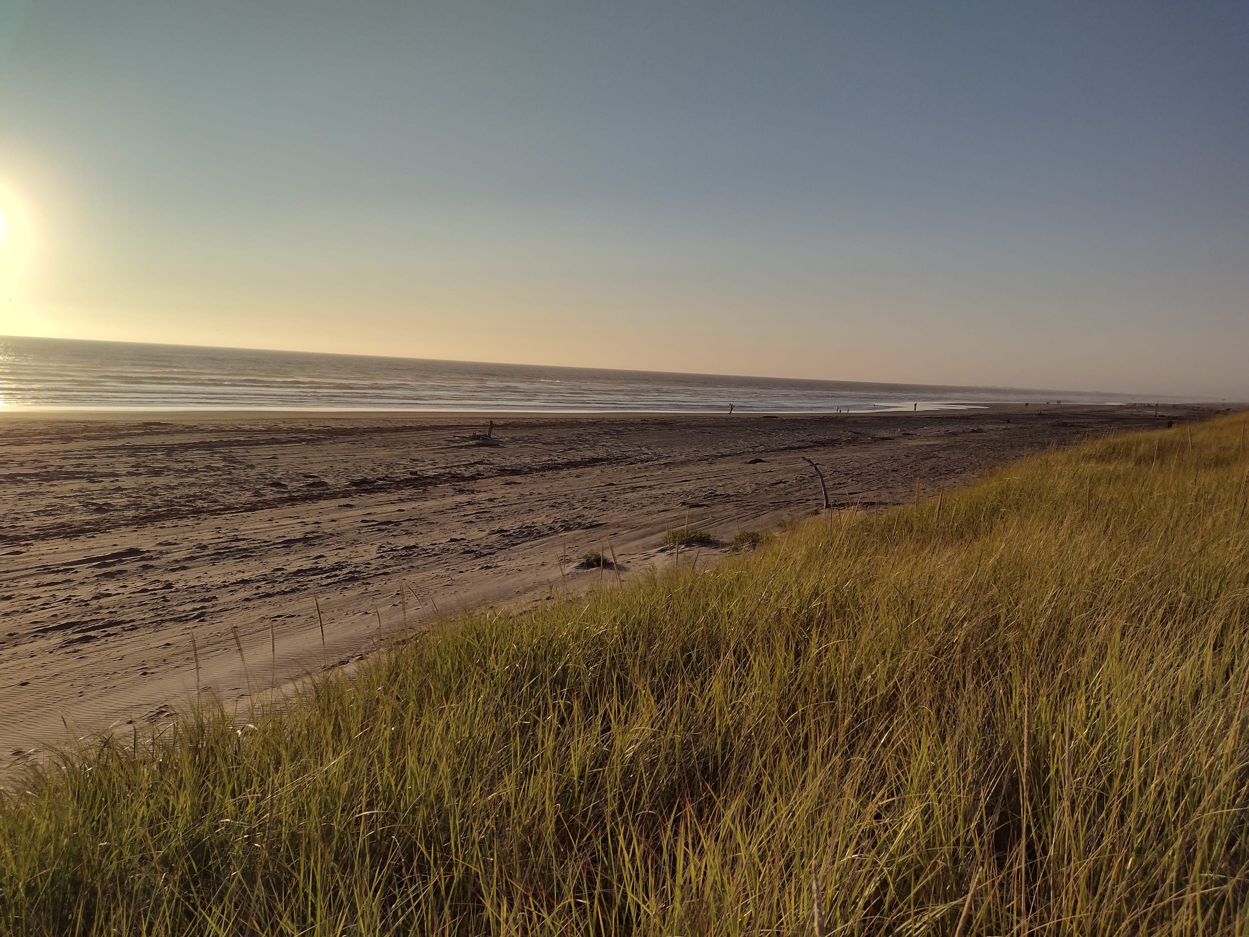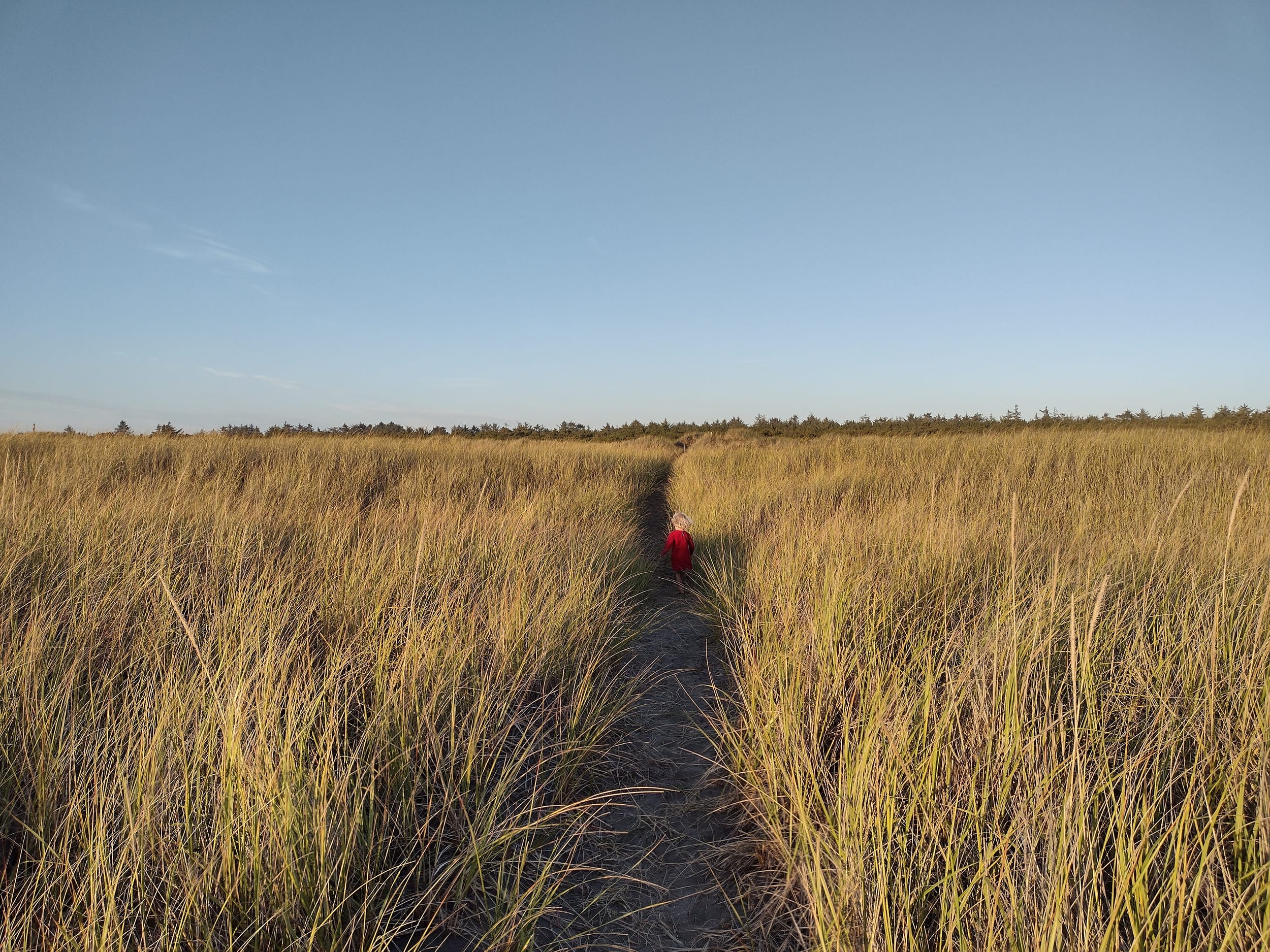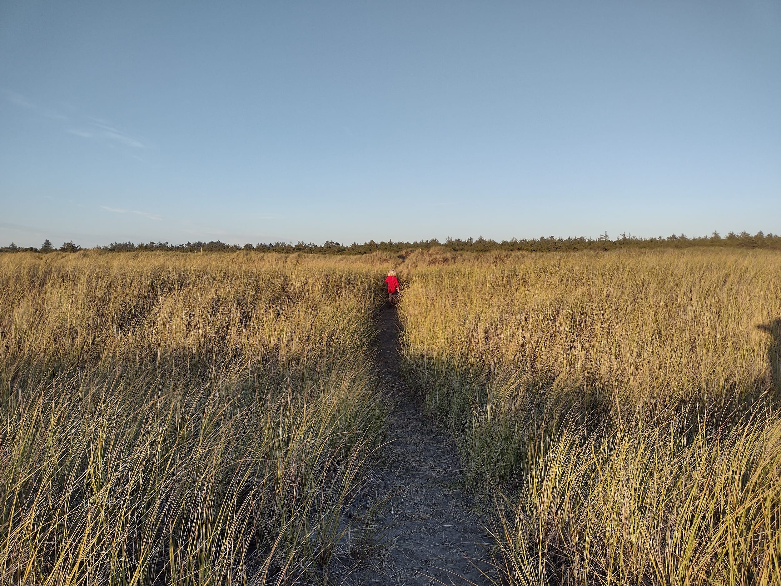 Angela cooked dinner for us - some pasta with garlic bread and shrimp for an appetizer. Very tasty and I was quite full by the end of dinner. Angela climbed into the van for some reading while Sara and I went on a walk down to the beach. There was a interpretive trail that took use there and they had a fun story for us to read about a field mouse who wanted to be an explorer and was trying to find traveling dune to teach him how. Spoiler alert, traveling dune had some grass/trees grown on him and he wasn’t traveling anymore. Sara was so excited to hear the story and she basically ran the 2 mile loop down to the beach and back.