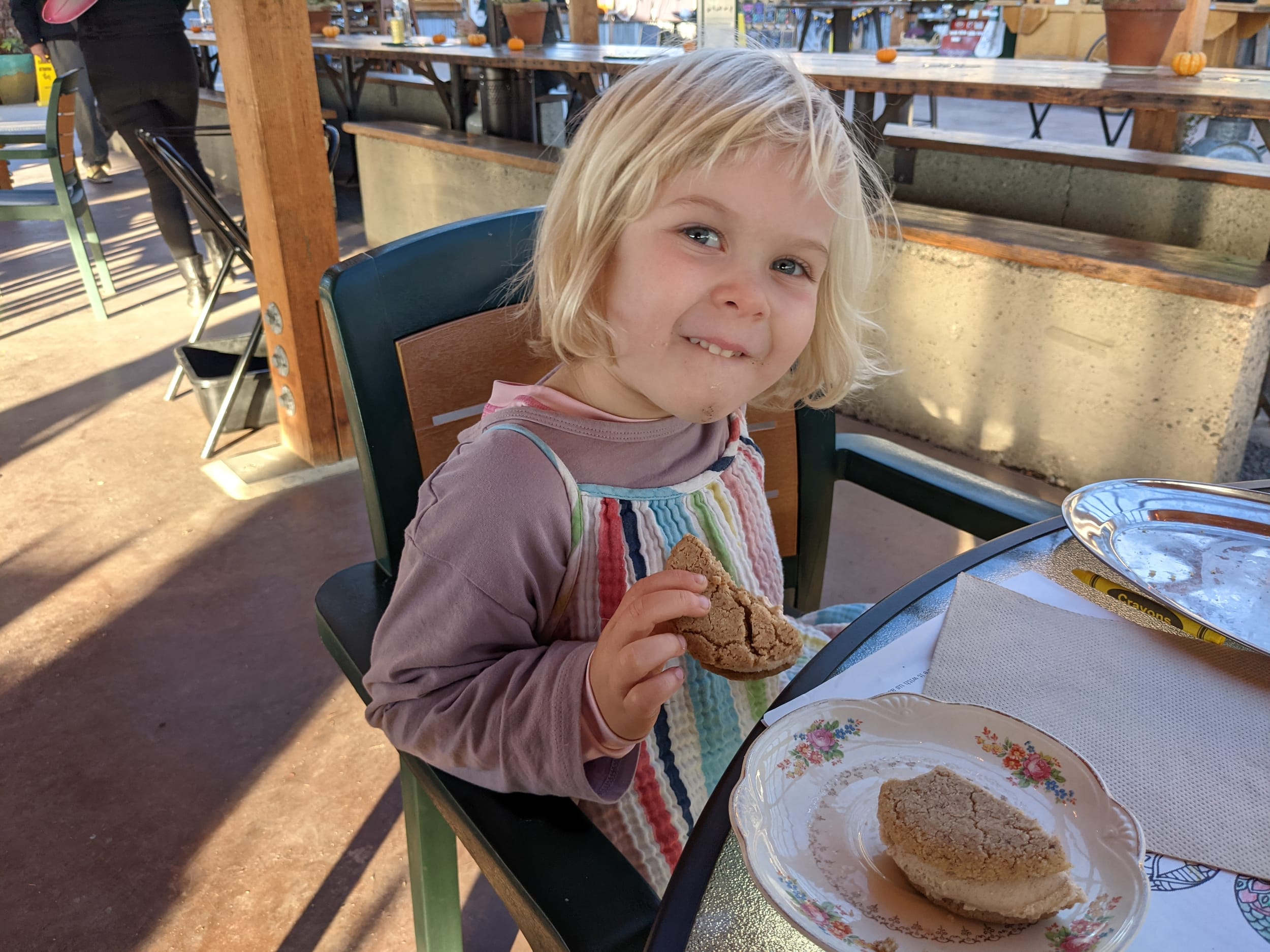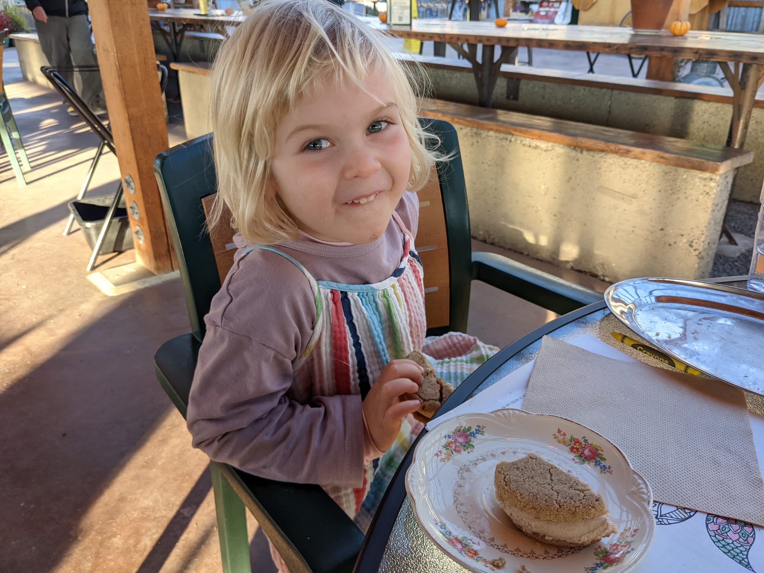 After the hike, I saw a sign for Finnriver which Angela and I went to when Sara was like a year old. We really enjoyed it then and we really enjoyed it this time as well. The cider is great and they have all kinds of snack options as well as colors/etc for Sara. They also had… ice cream sandwiches!