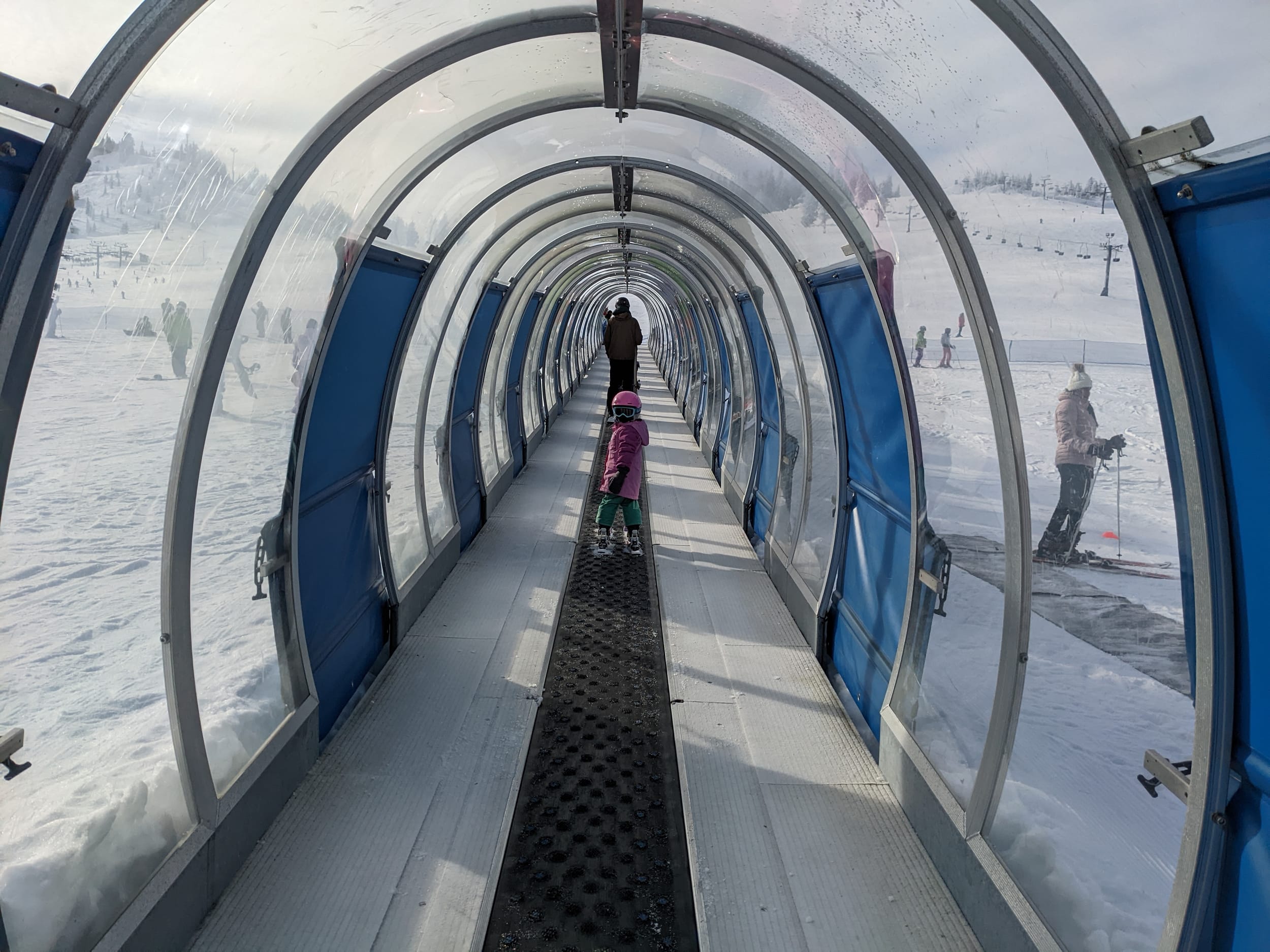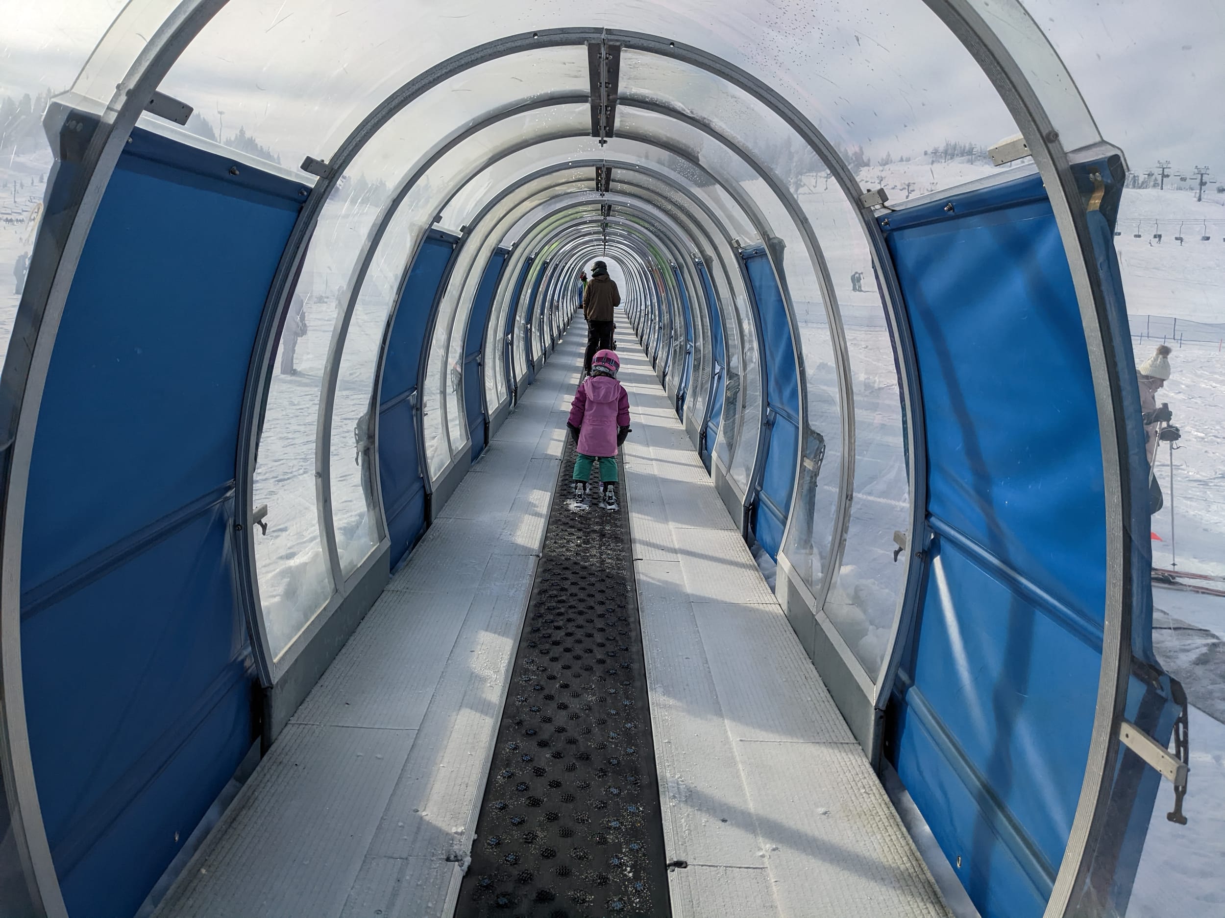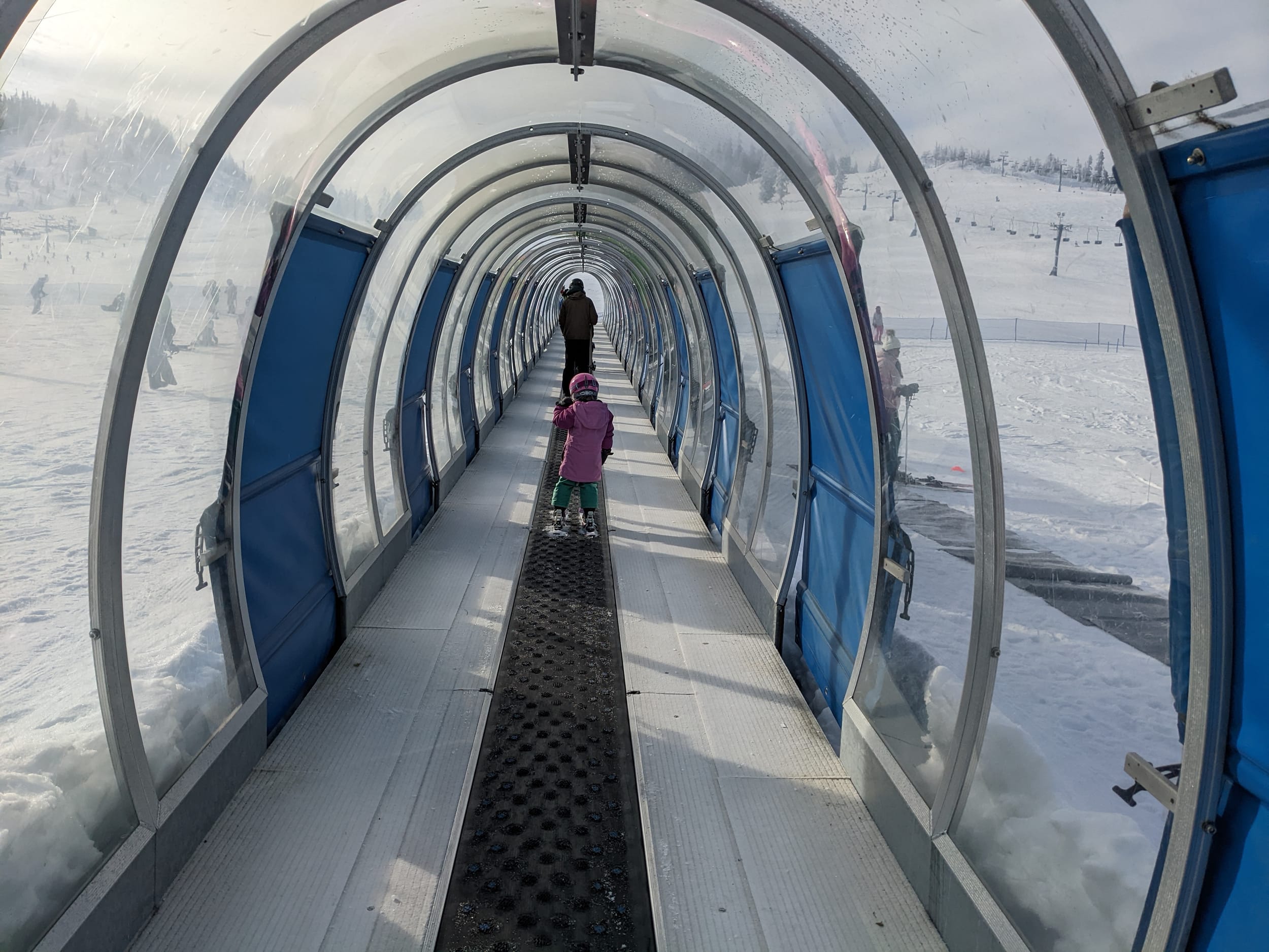 We did a couple of rides up the magic carpet ride and Sara wanted to ride by herself and wanted to watch me ride up the carpet.