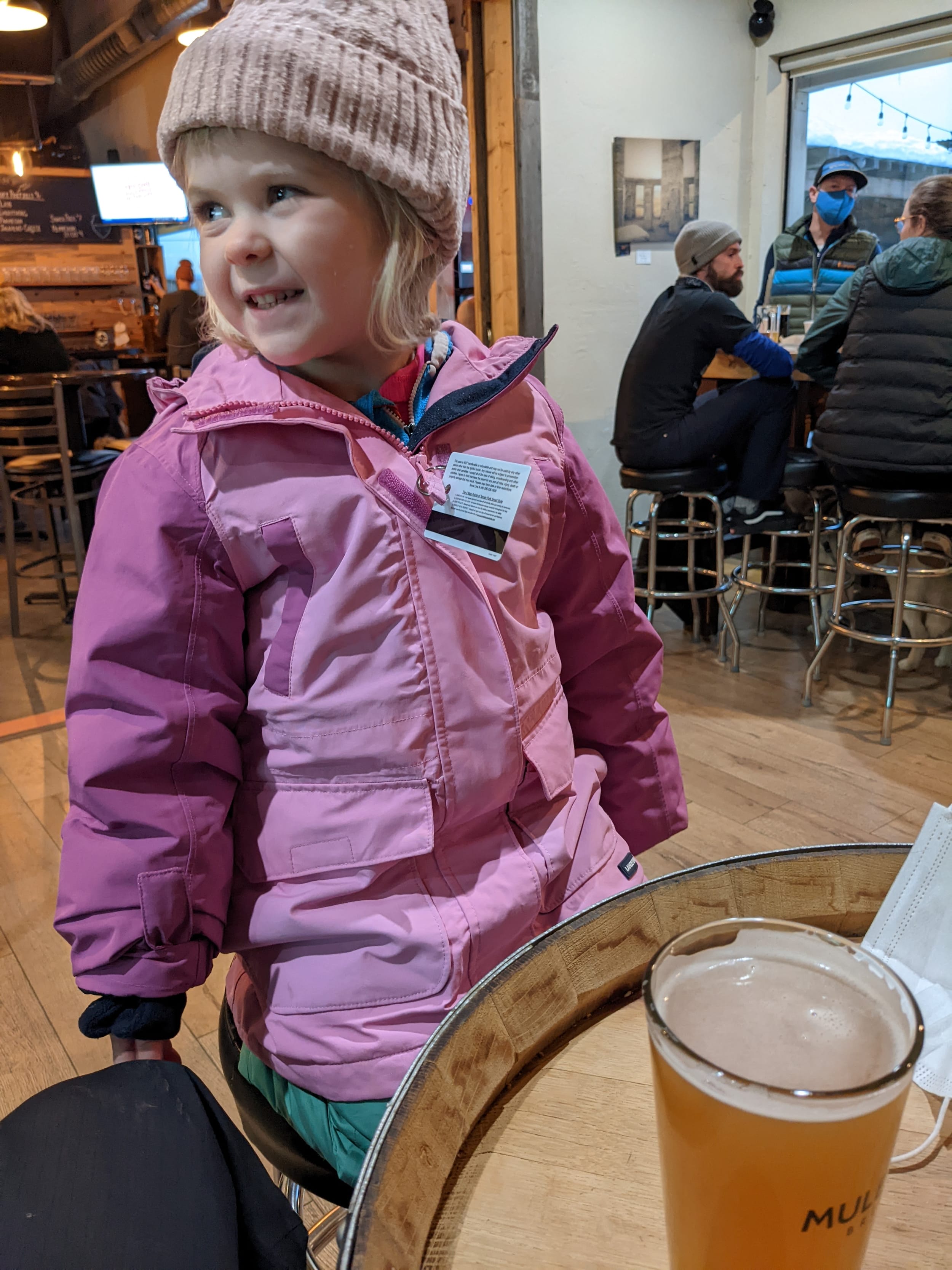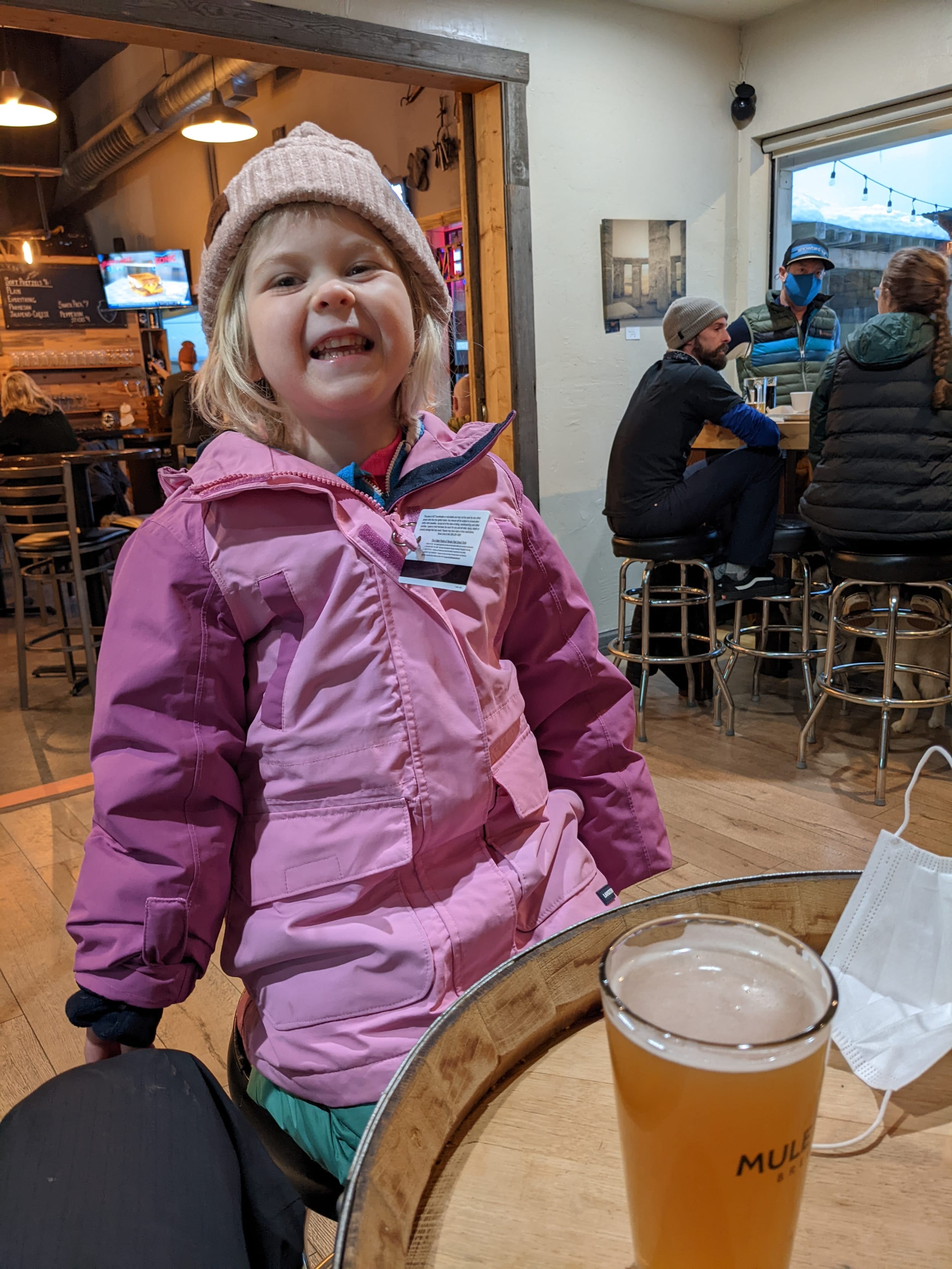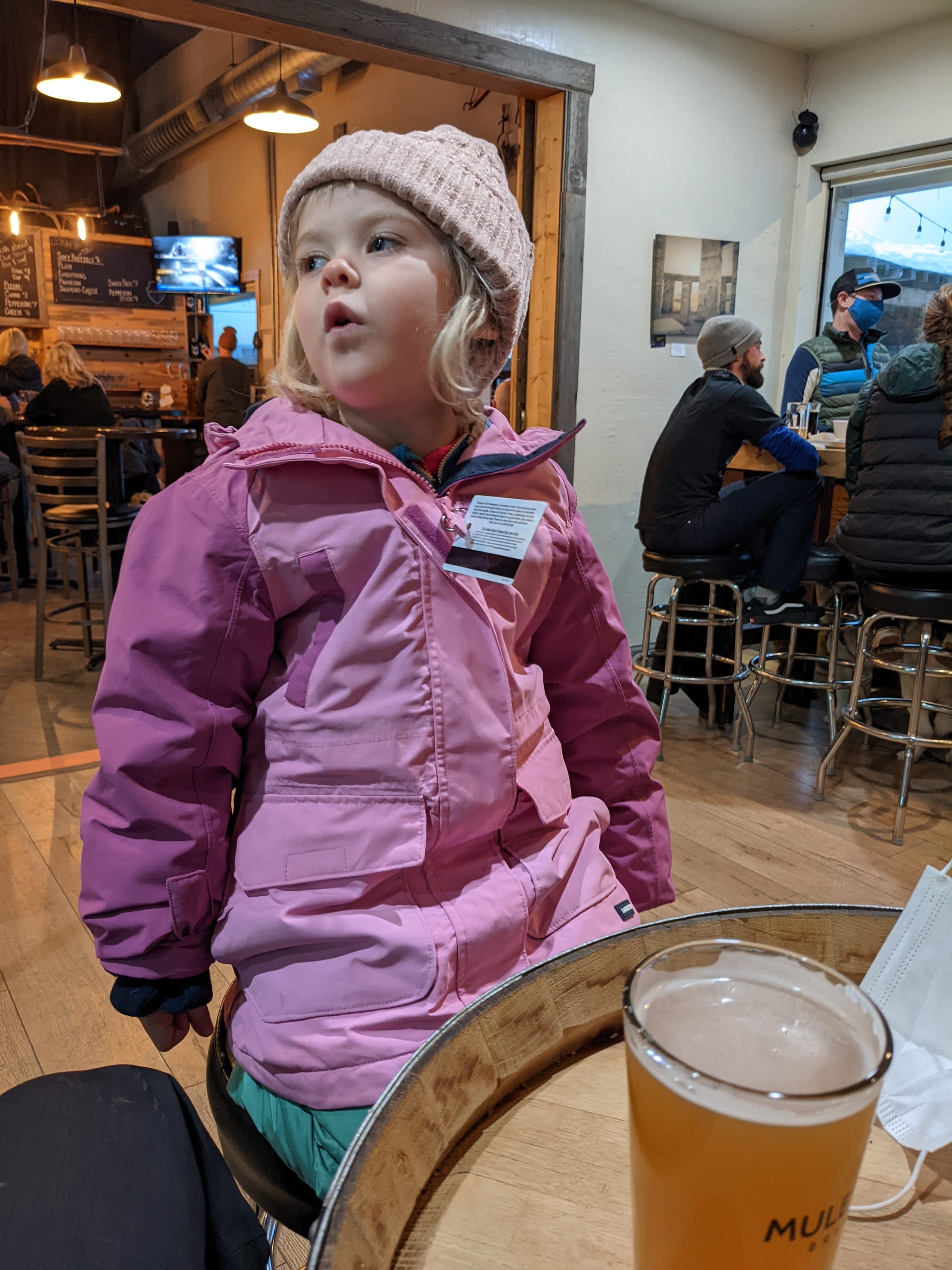 We did a couple of runs after the hot chocolate break and finished up skiing aroudn 4p. Sara was quite the skier by the end of the day - skiiing completely on her own and doing the entire run! We headed to a pub for a drink and some food after dinner.