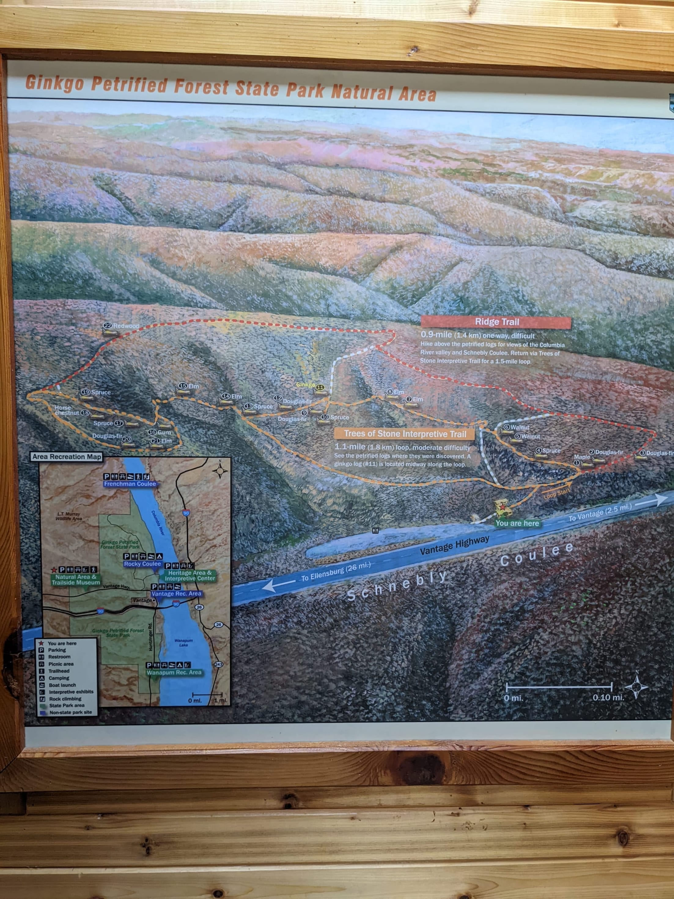 On the way home we stopped at a petrified forest state park (Ginkgo petrified forest/Wanapum recreational area) and did a 1-2 mile hike. Very arid terrain (very different from Seattle/western WA) and it was fun to see all the petrified wood (protected inside concrete/gated enclosures).