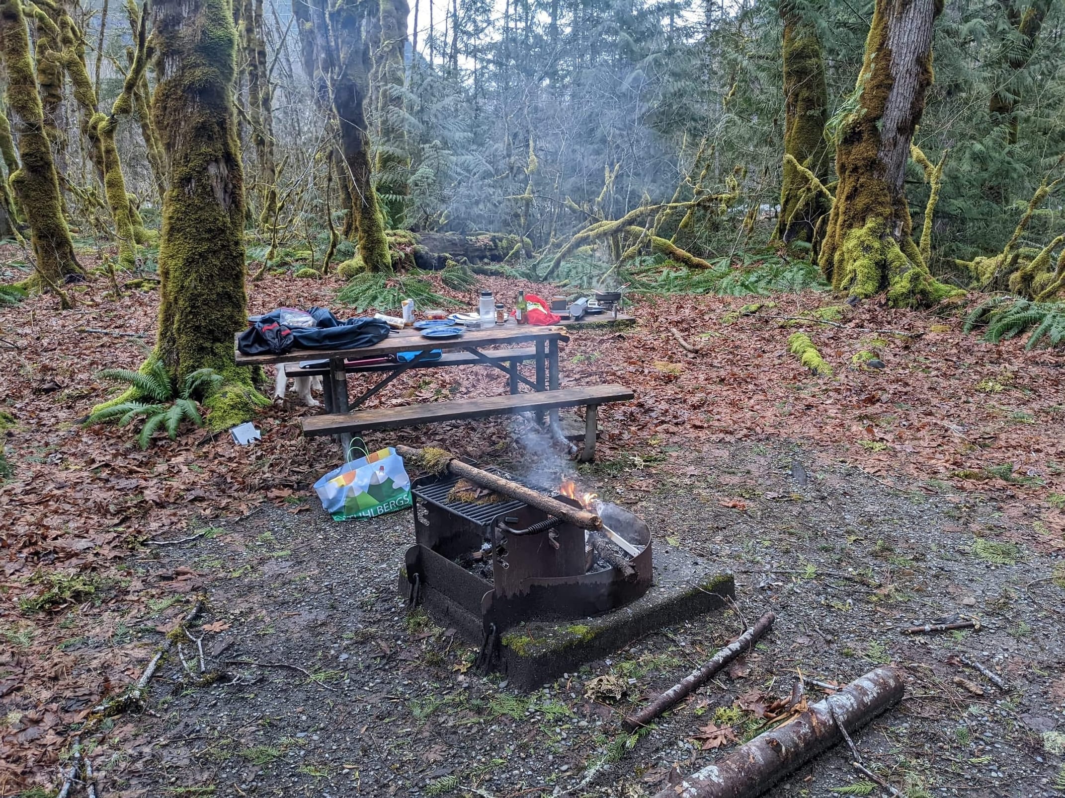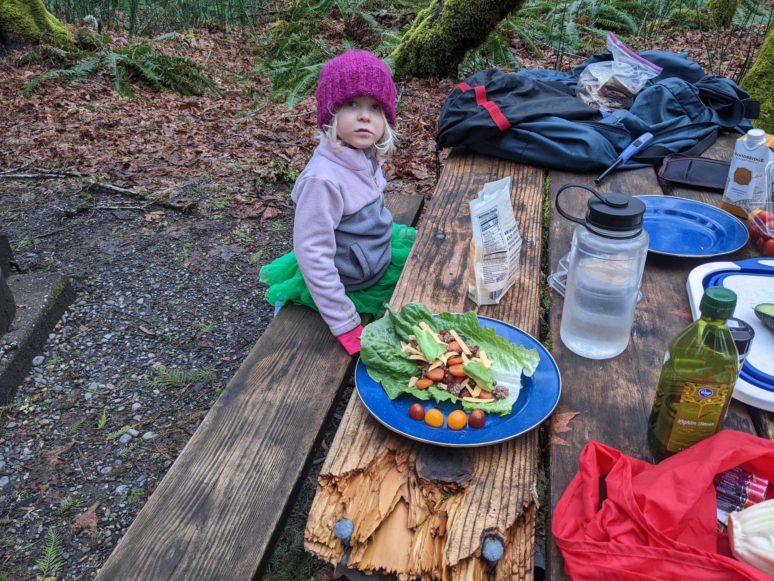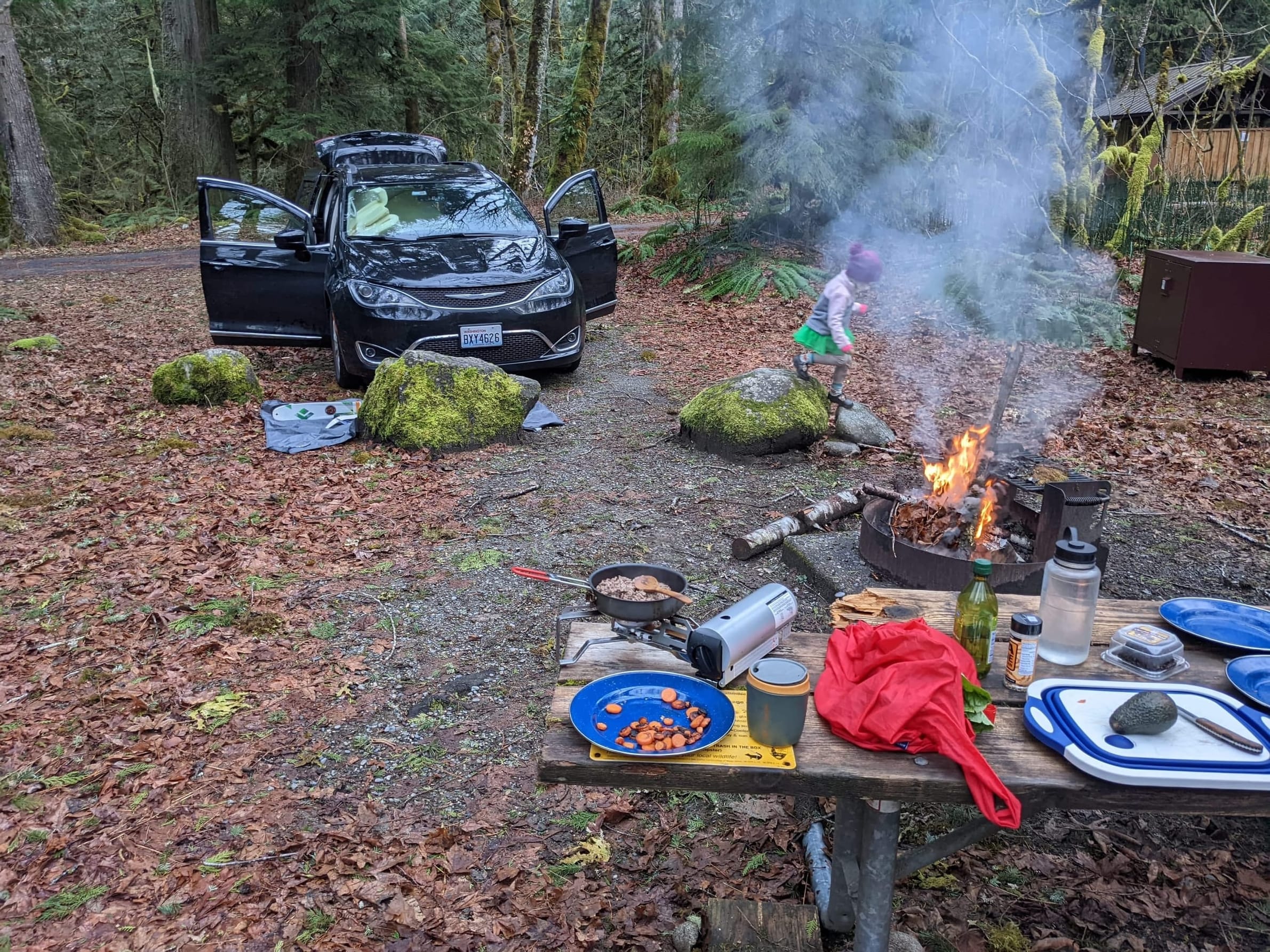 I got some photos of our campsite that evening. We stayed at Goodell campground - which is a national forest campground and it’s free during the off-season. We had lettuce tacos for dinner and cake for dessert. We also made a fire which we hung out around for a couple of hours before bedtime. We watched half of a very wierd live action version of the little mermaid - not sure we are going to end up finishing that one