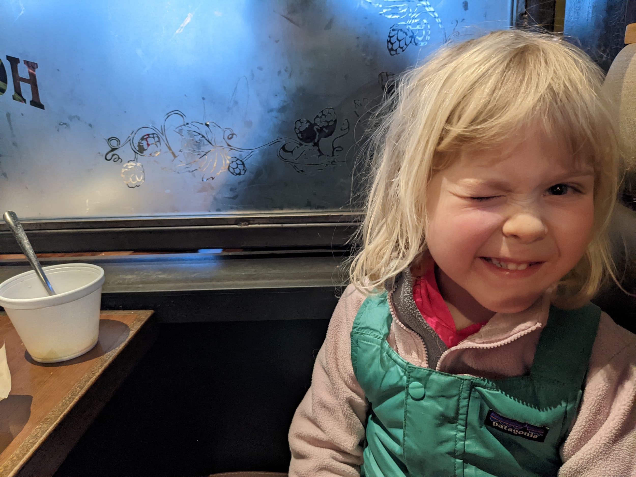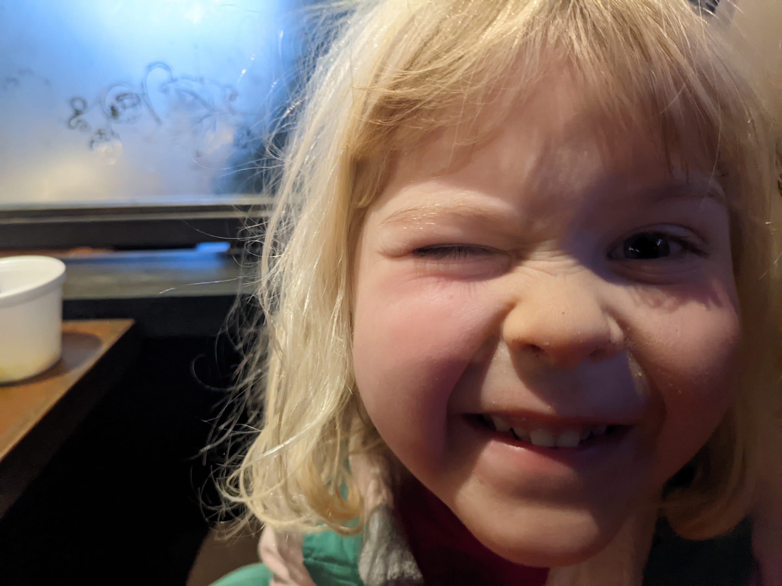 During dinner Sara showed me her new face - called “the eye”. Apparently it’s from a show she watches and after asking about 20 questions about the show, I found out that it’s a show/game she watches on her tablet called - the disappearing drink.