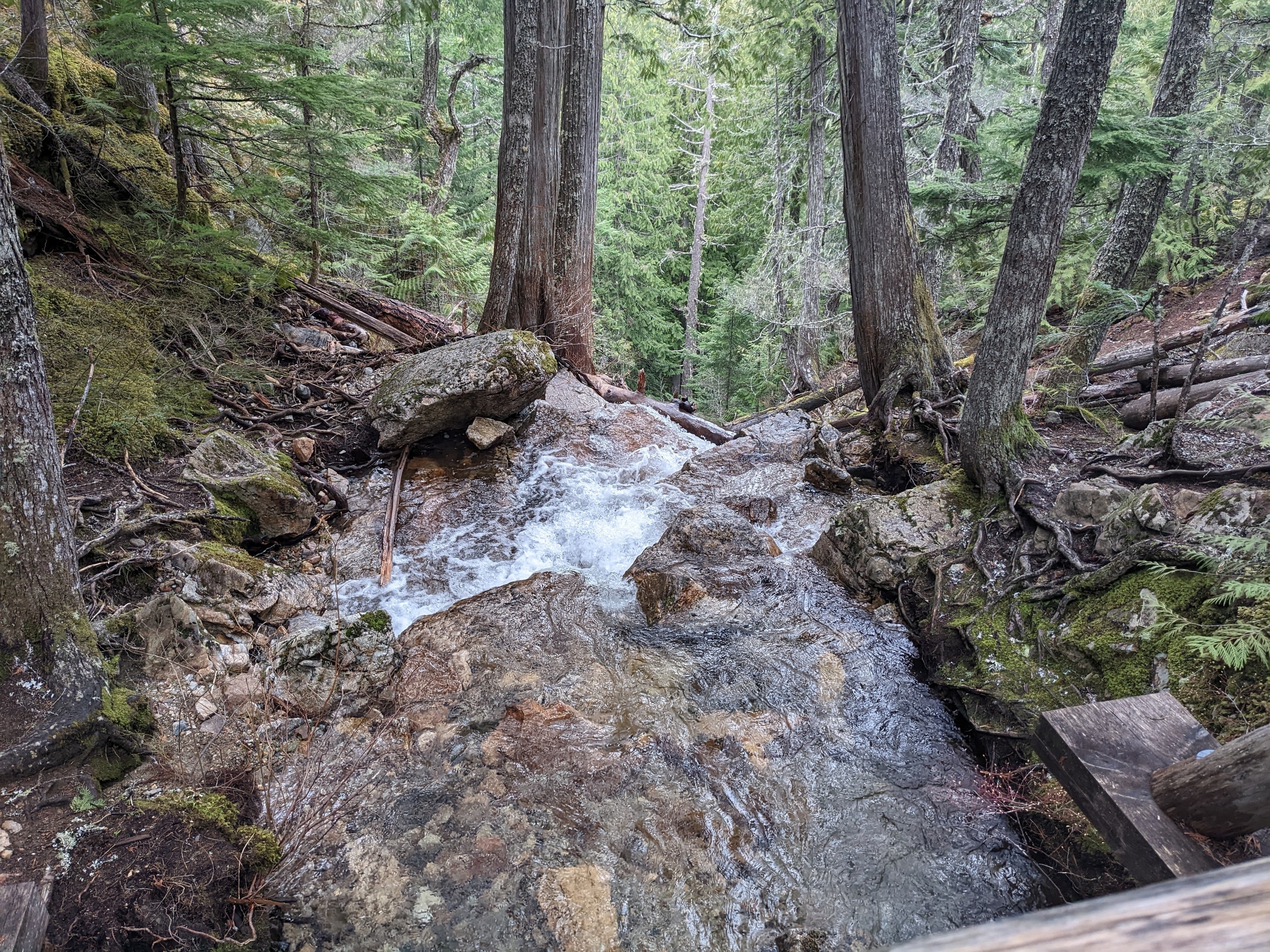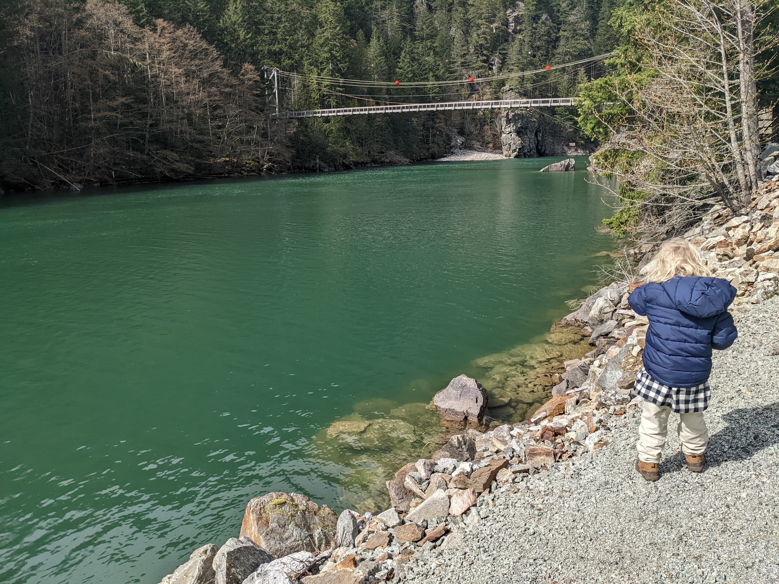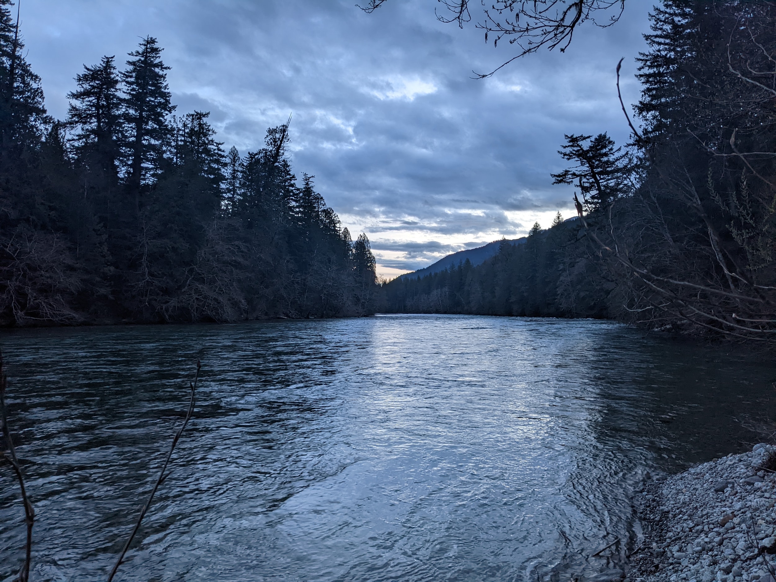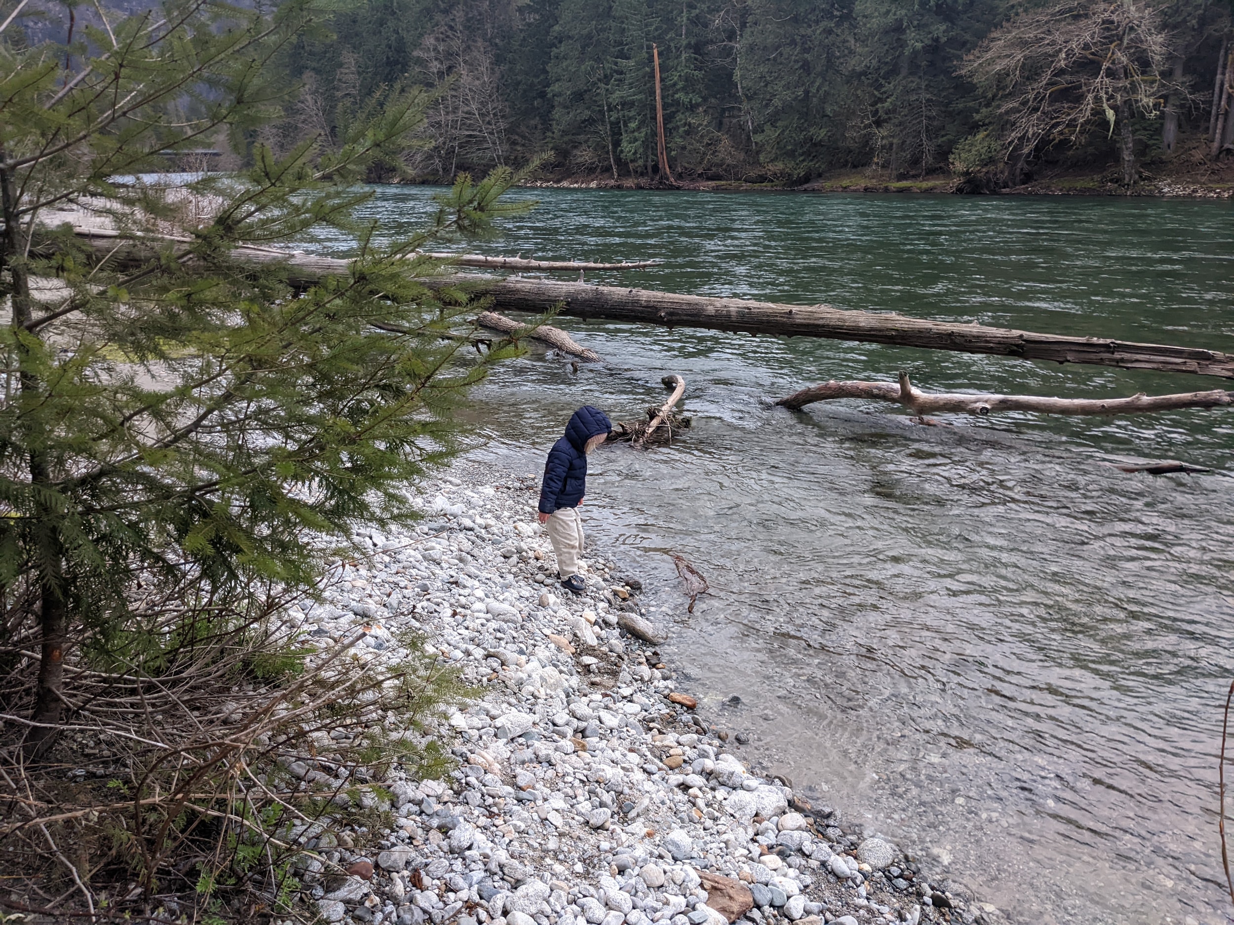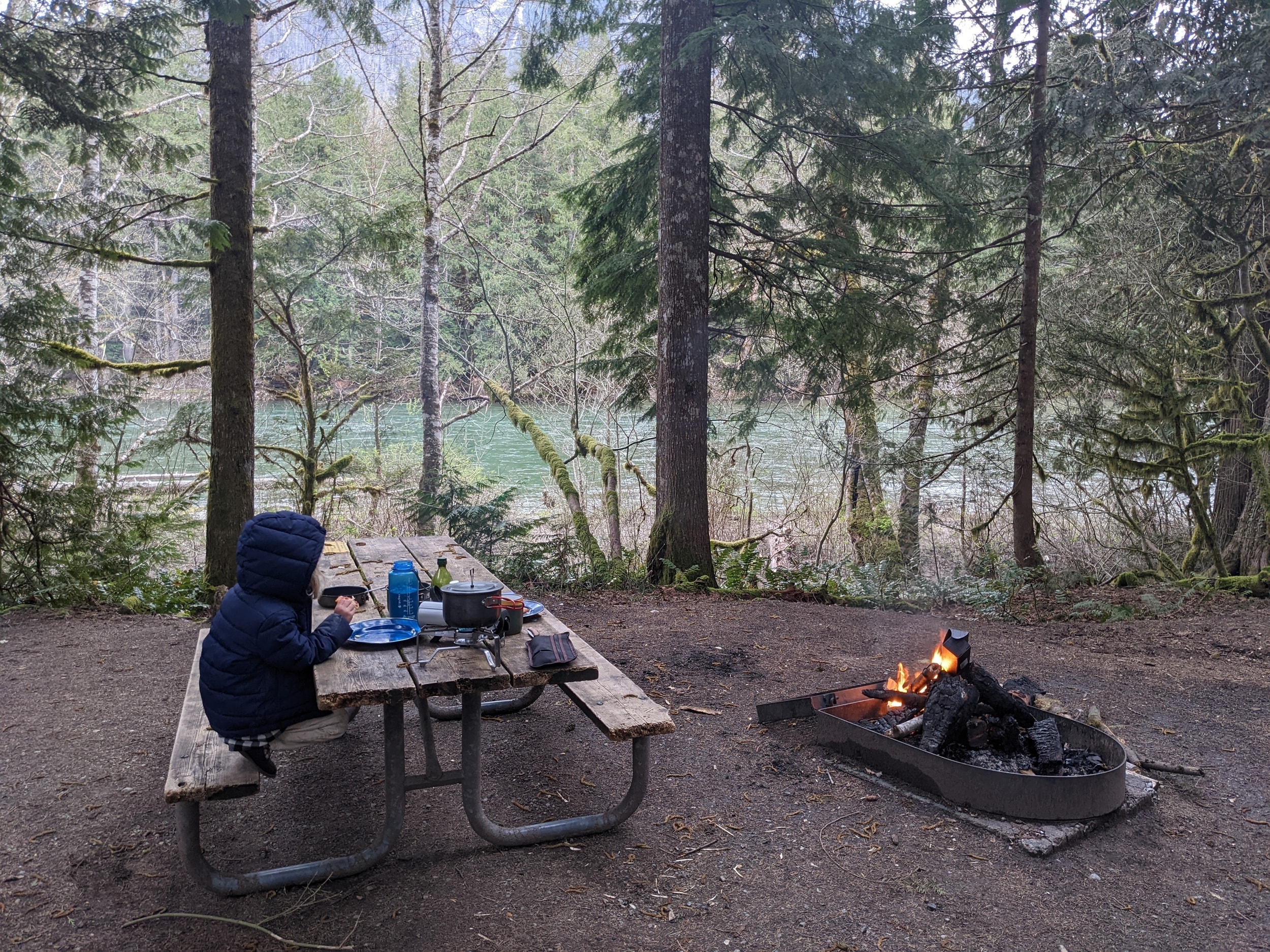 We stayed just outside Newhalem in the still free campsites there (free during the off seaon). Beautiful campsite right near the river.