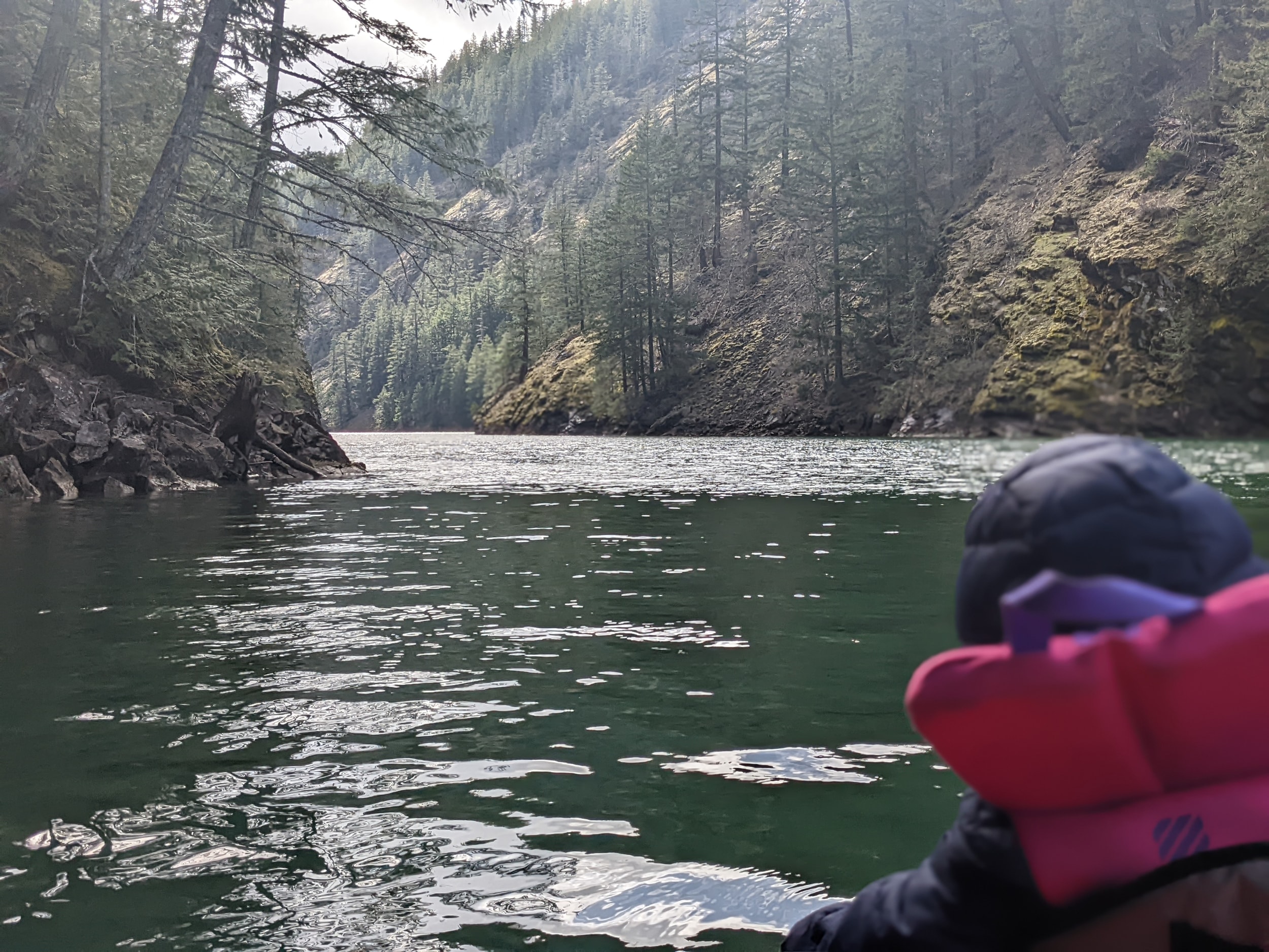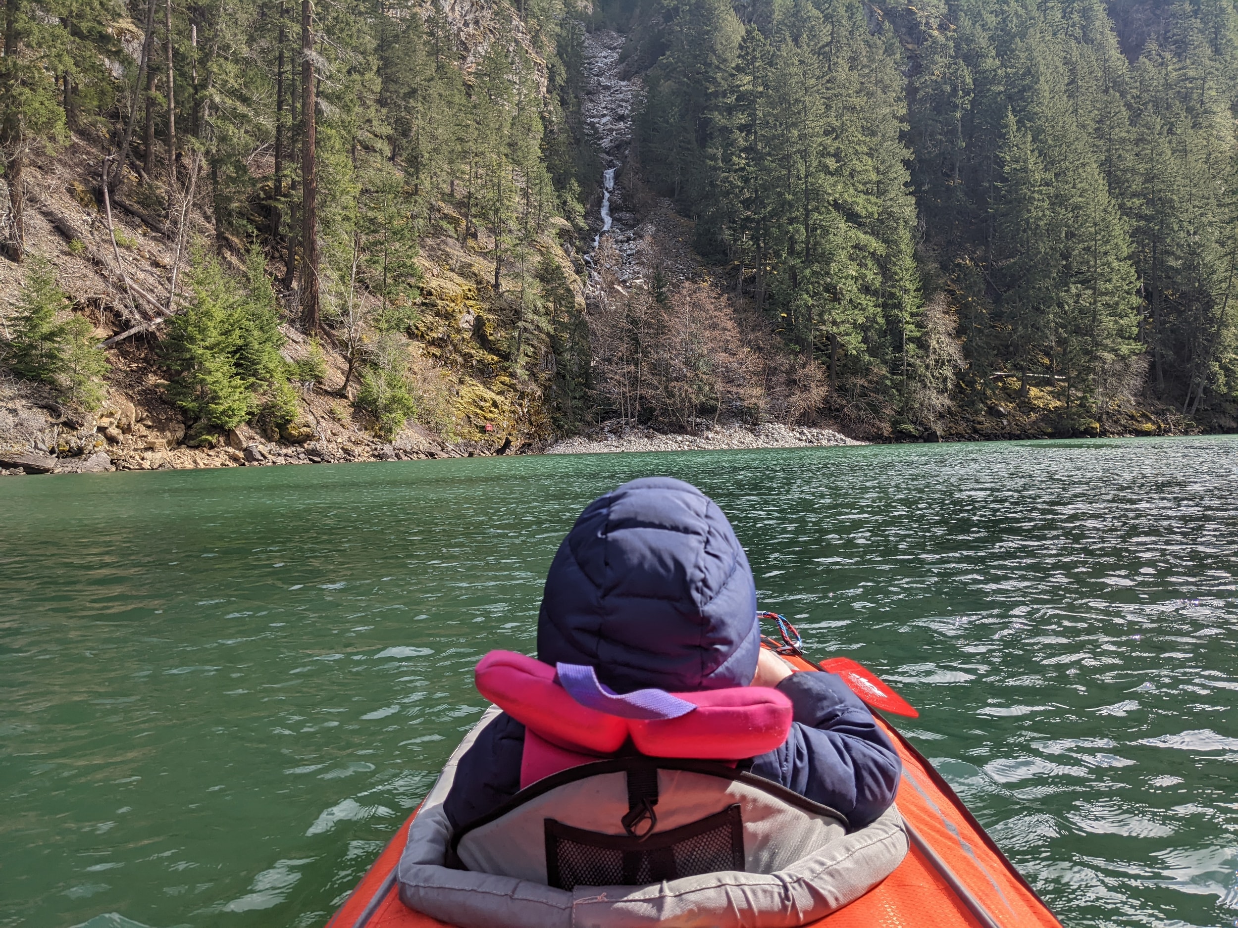 Sara drifted off for a quick nap after a bit - it’s very calming to get paddled slowly down a lake. Thankfully the life jacket combined with the stability of the inflatable kayak made for an easy/calm bed for the little lady. Thankfully, she got a chance to see some of the amazing beauty before she drifted off.