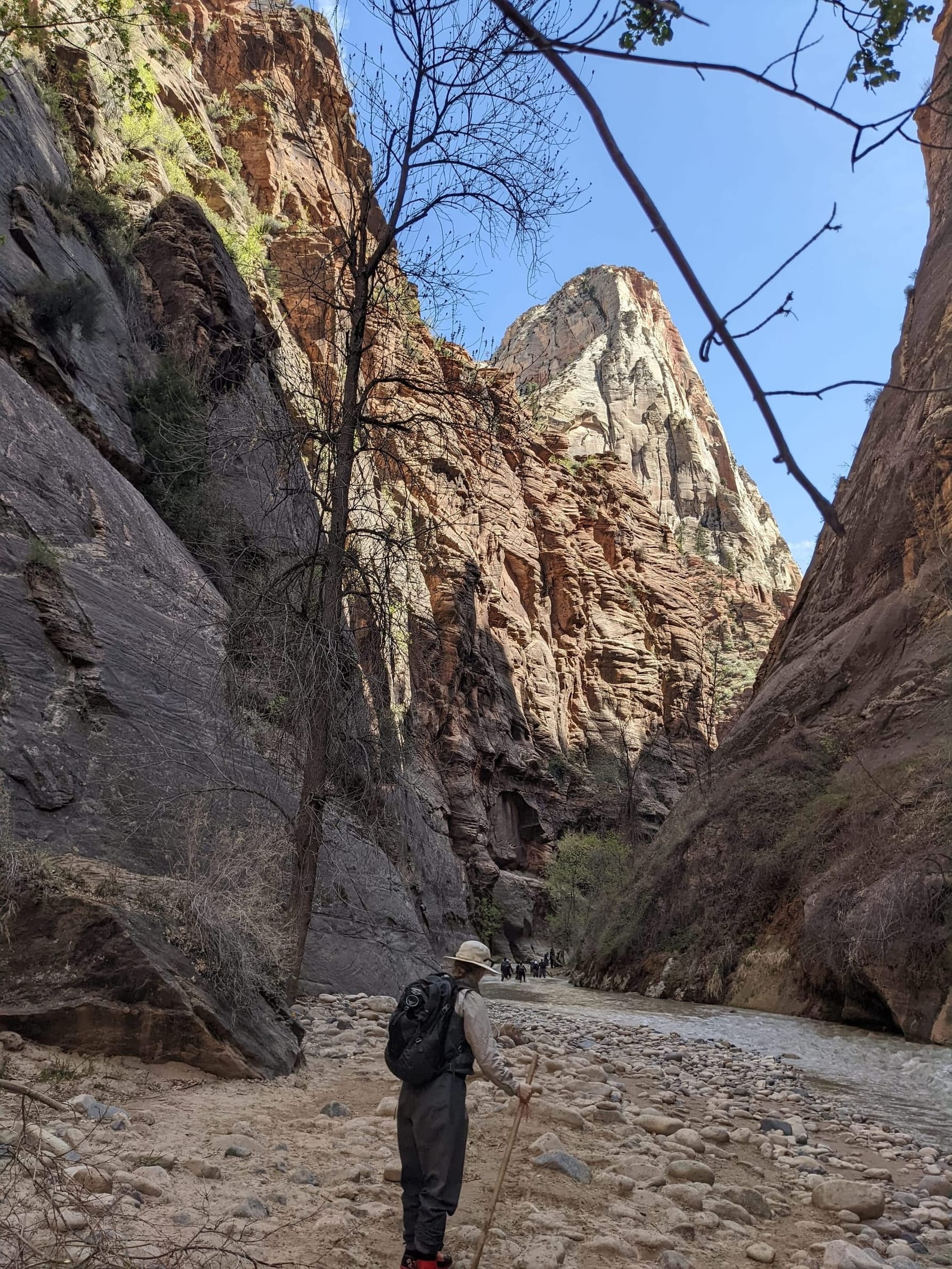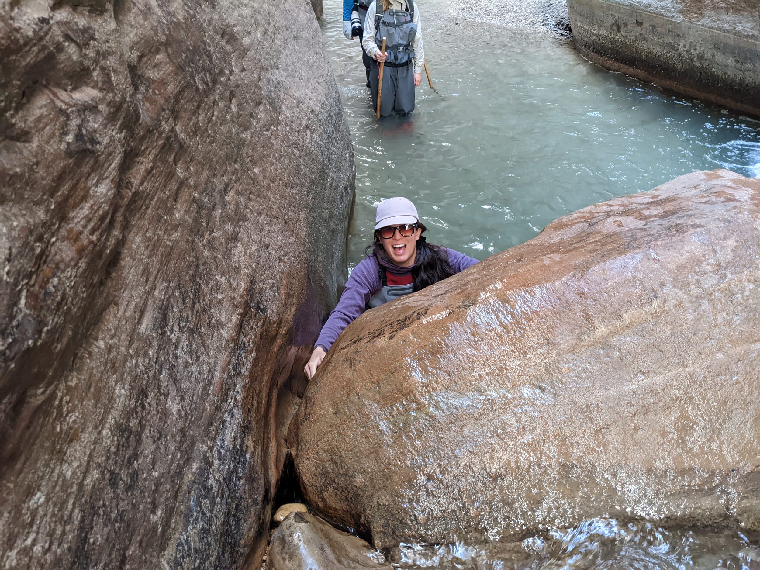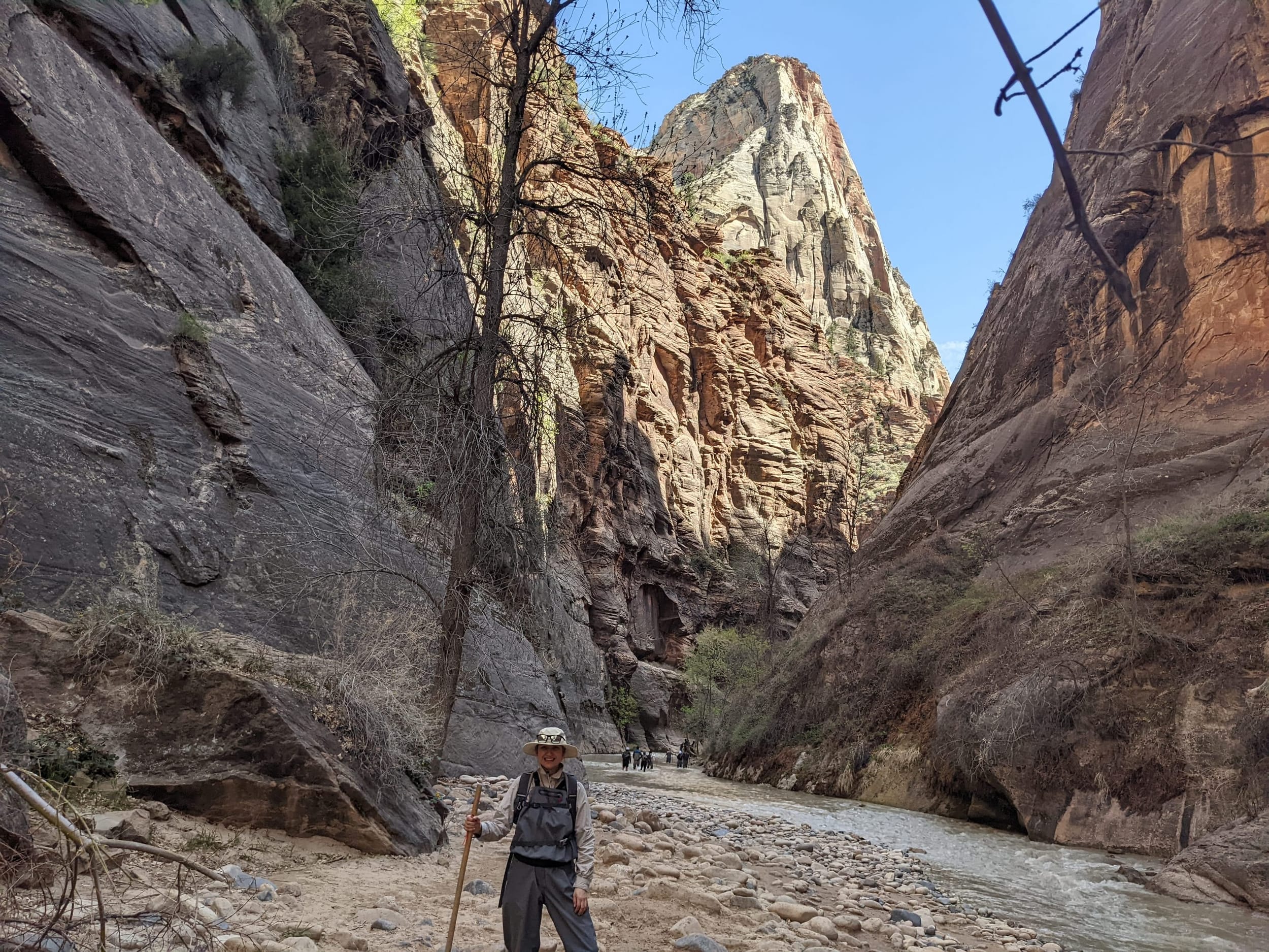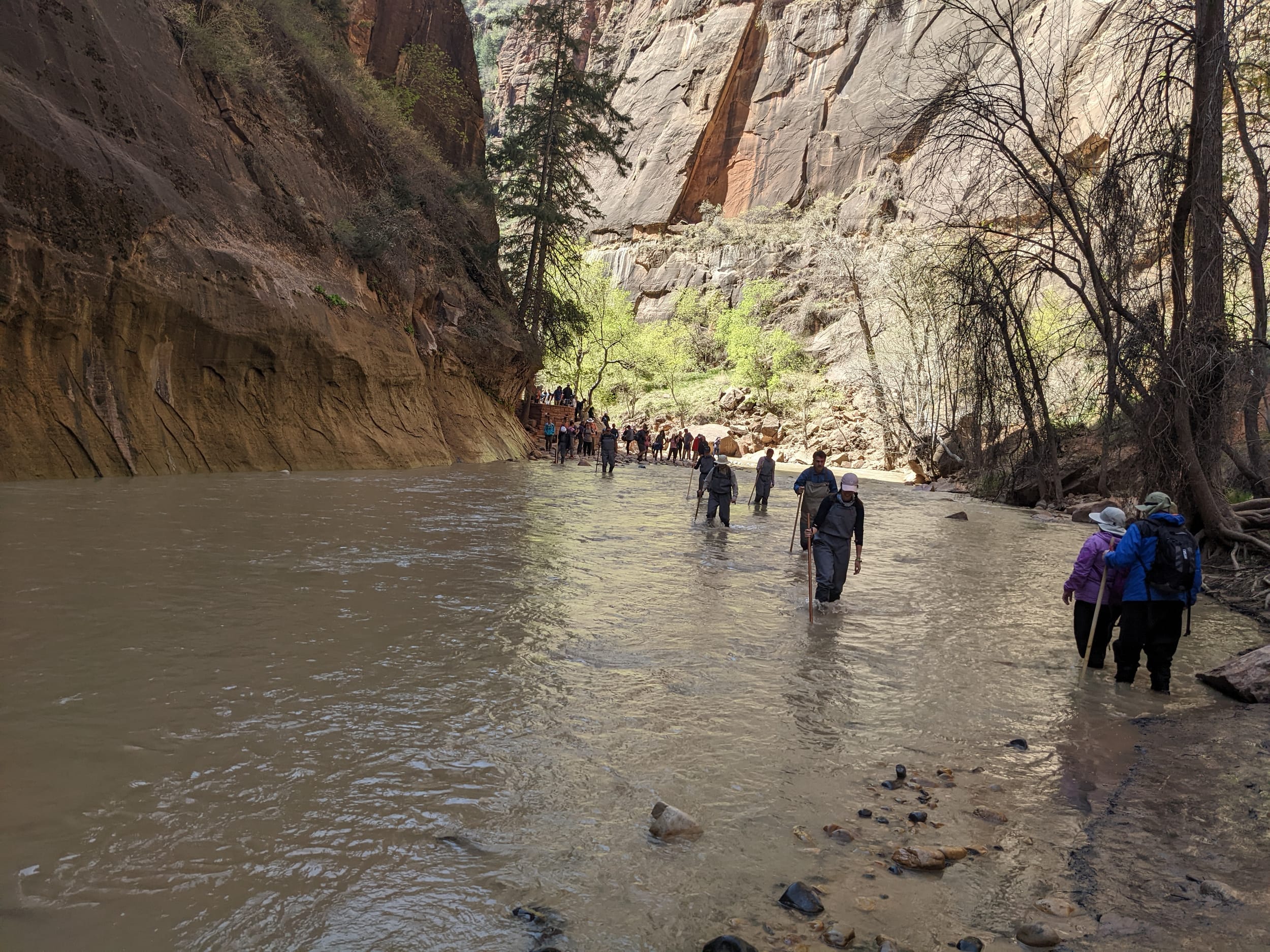 Welcome to Zion! When we had our Galapagos plans fall through, we decided to meet up with the family in Utah for a National park trip - starting with Zion National park. We only spent 3 days here, but we did get a good taste of the park through some canyoneering and biking. Zion is known for Canyoneering - which is where you climb up/down steep walled canyons often by walking through/in the water. We rented gear (big waders & felt soled boots) and took the bus up to the start of the narrows. There were a lot of people for the first 1-2 miles (note the first picture below) but it thinned out as we kept going.