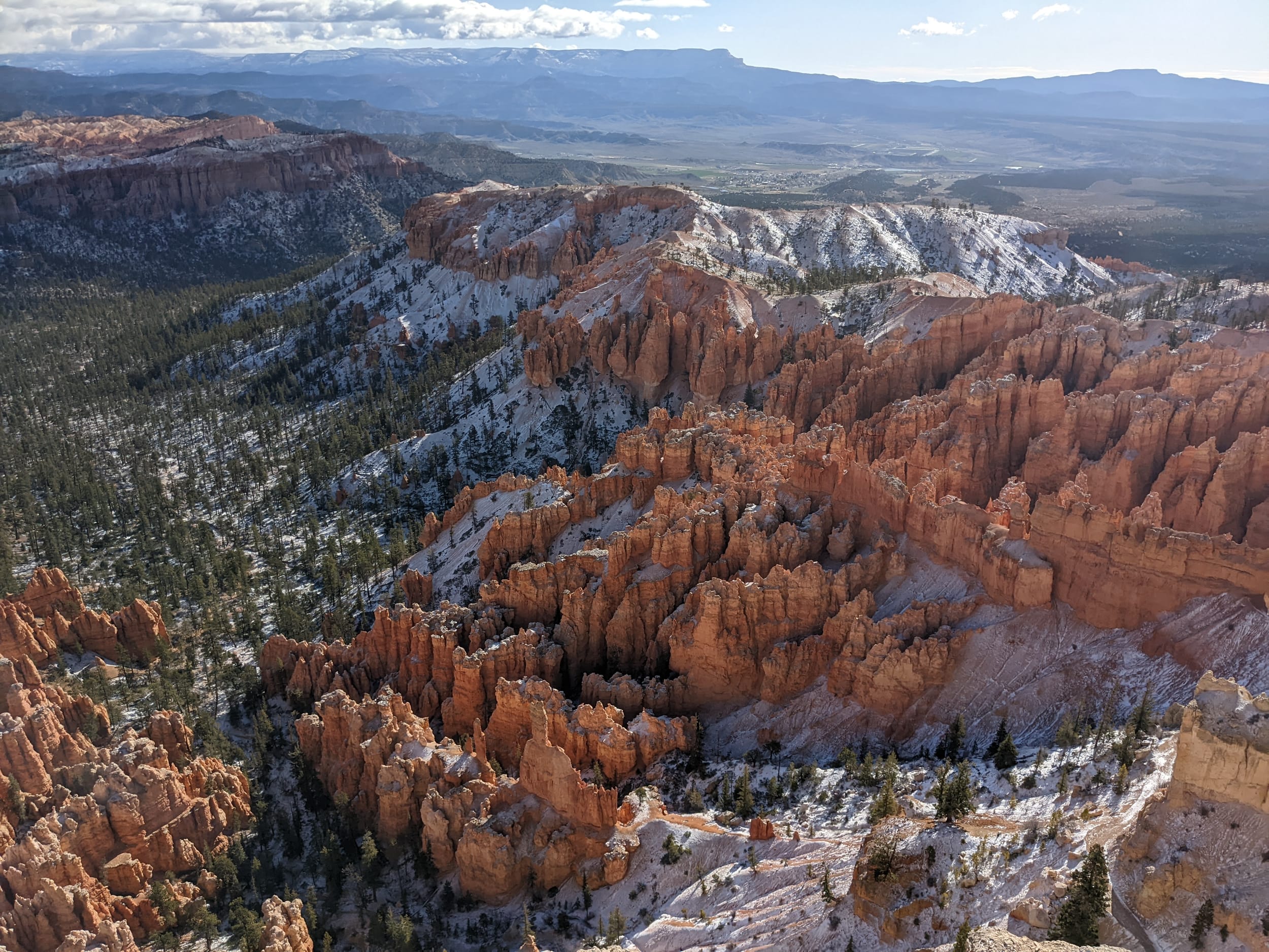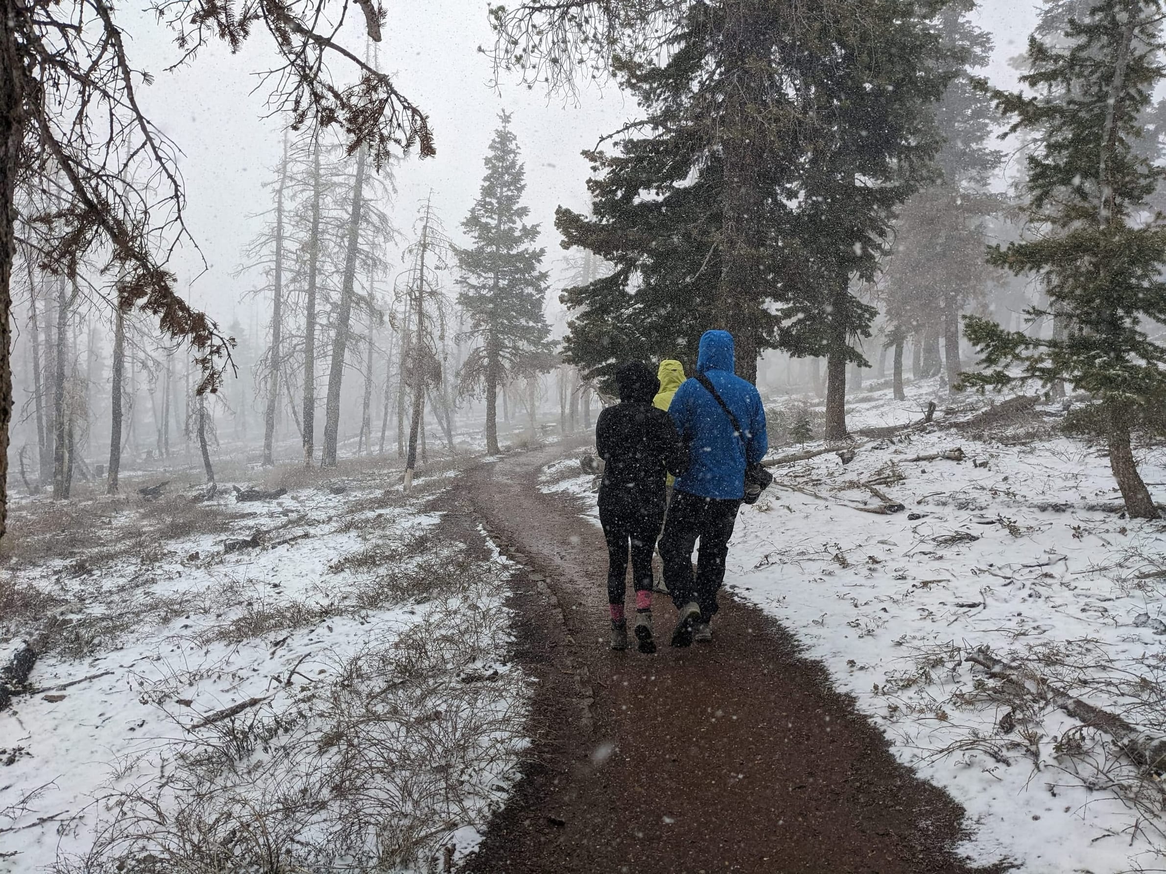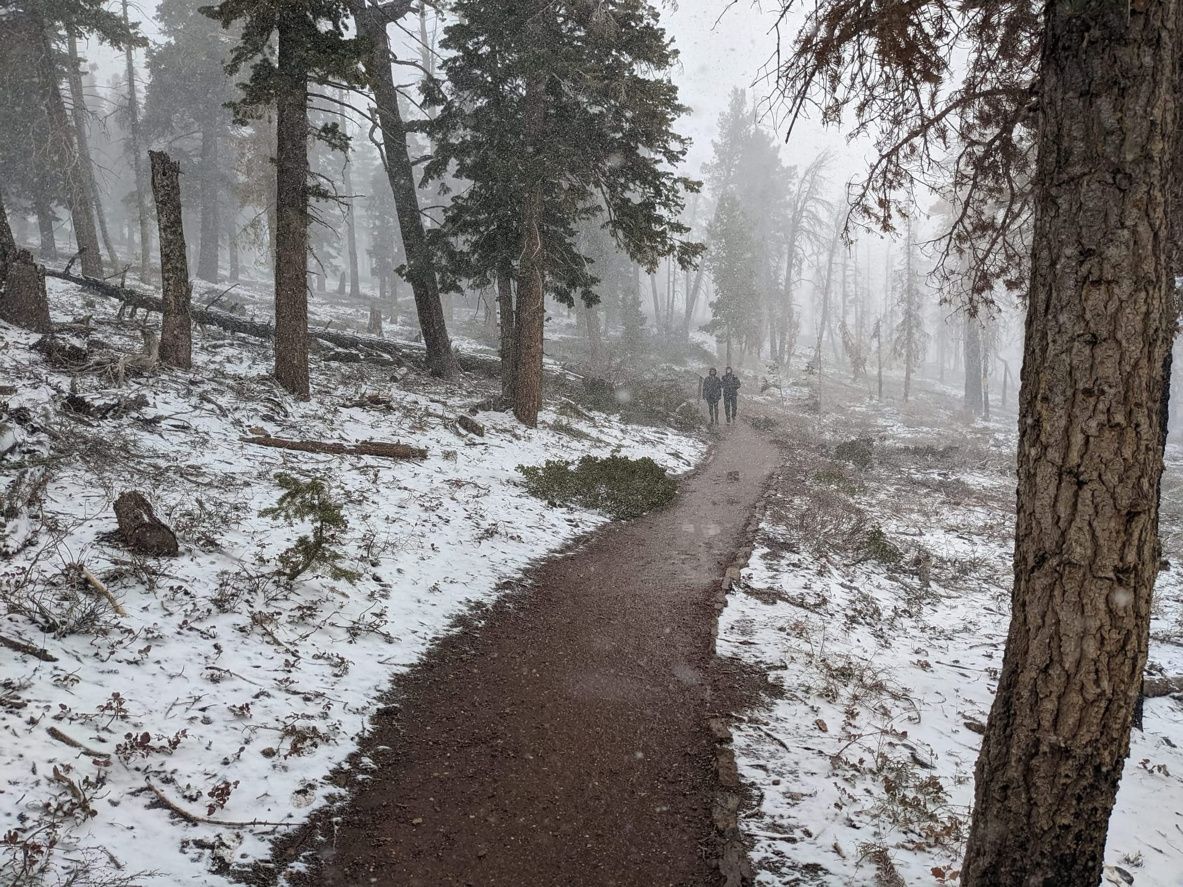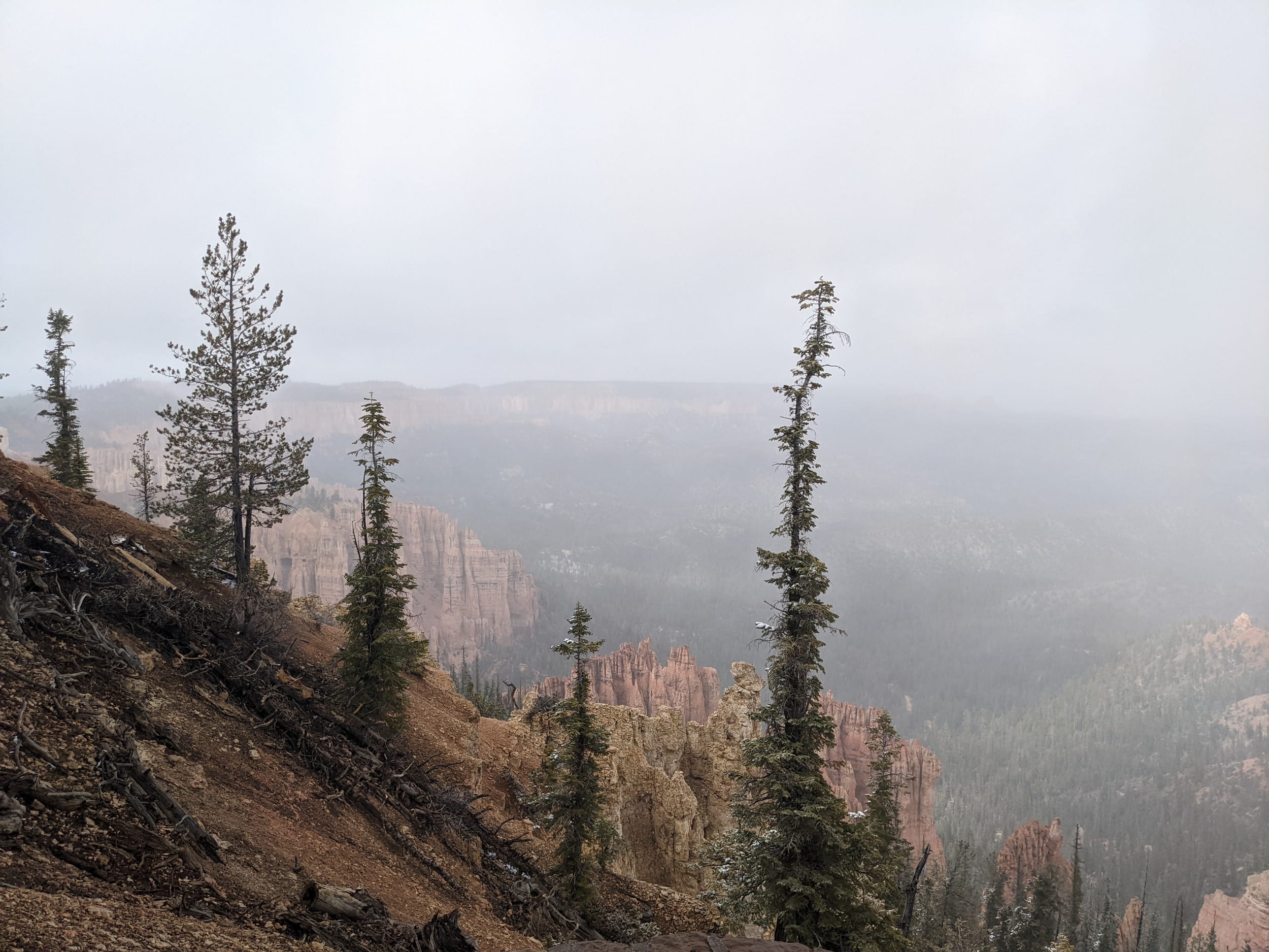 Our last day at Bryce was a stormy/snowy one (very cold and windy). We did a drive through the park and did a very quick hike along the Brislecone loop - which we did with quite a bit of urgency given the weather.