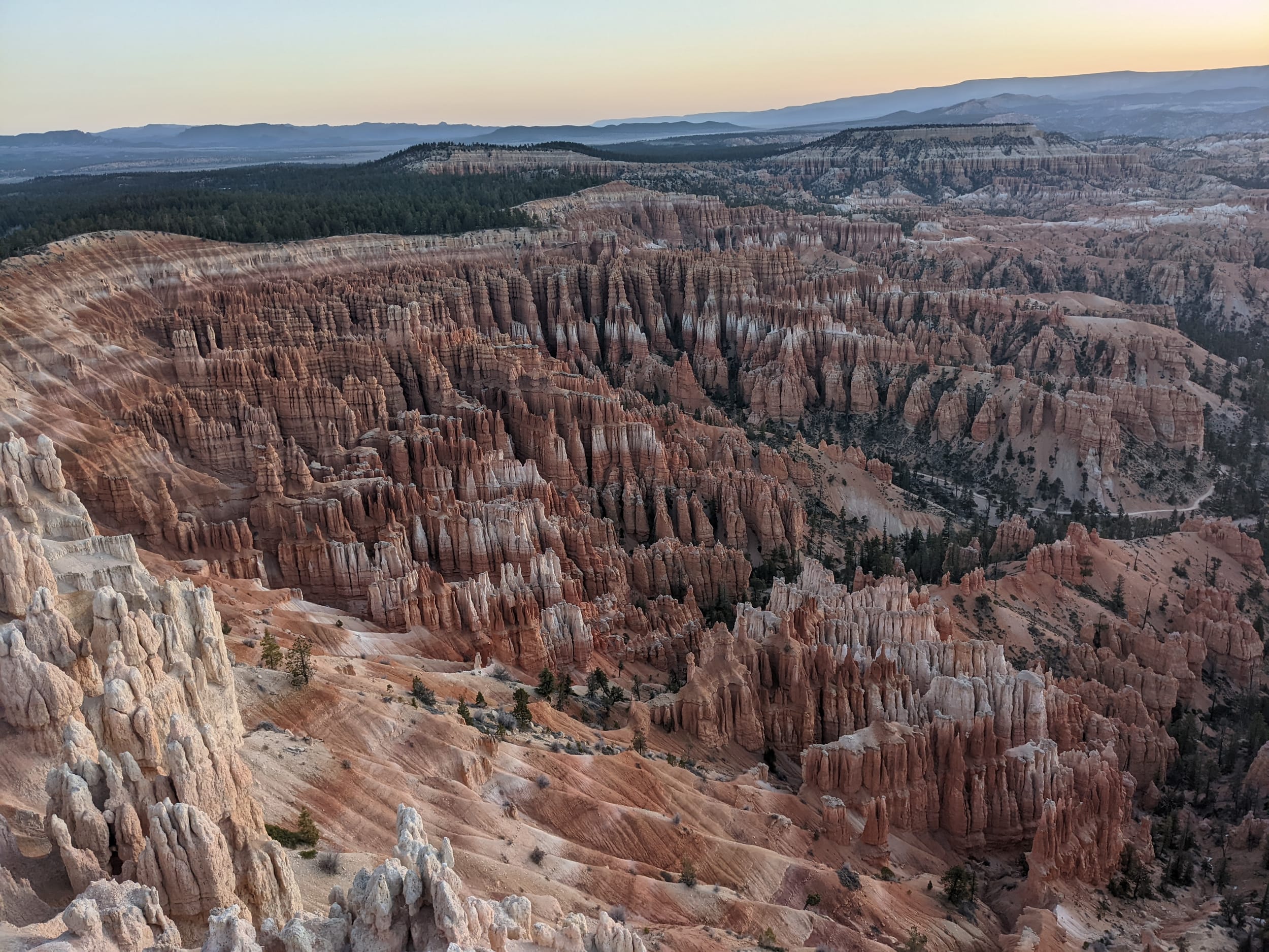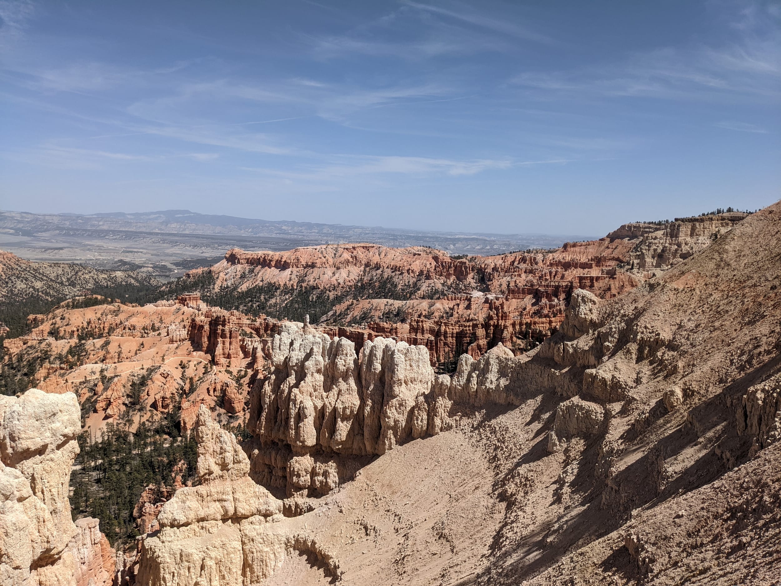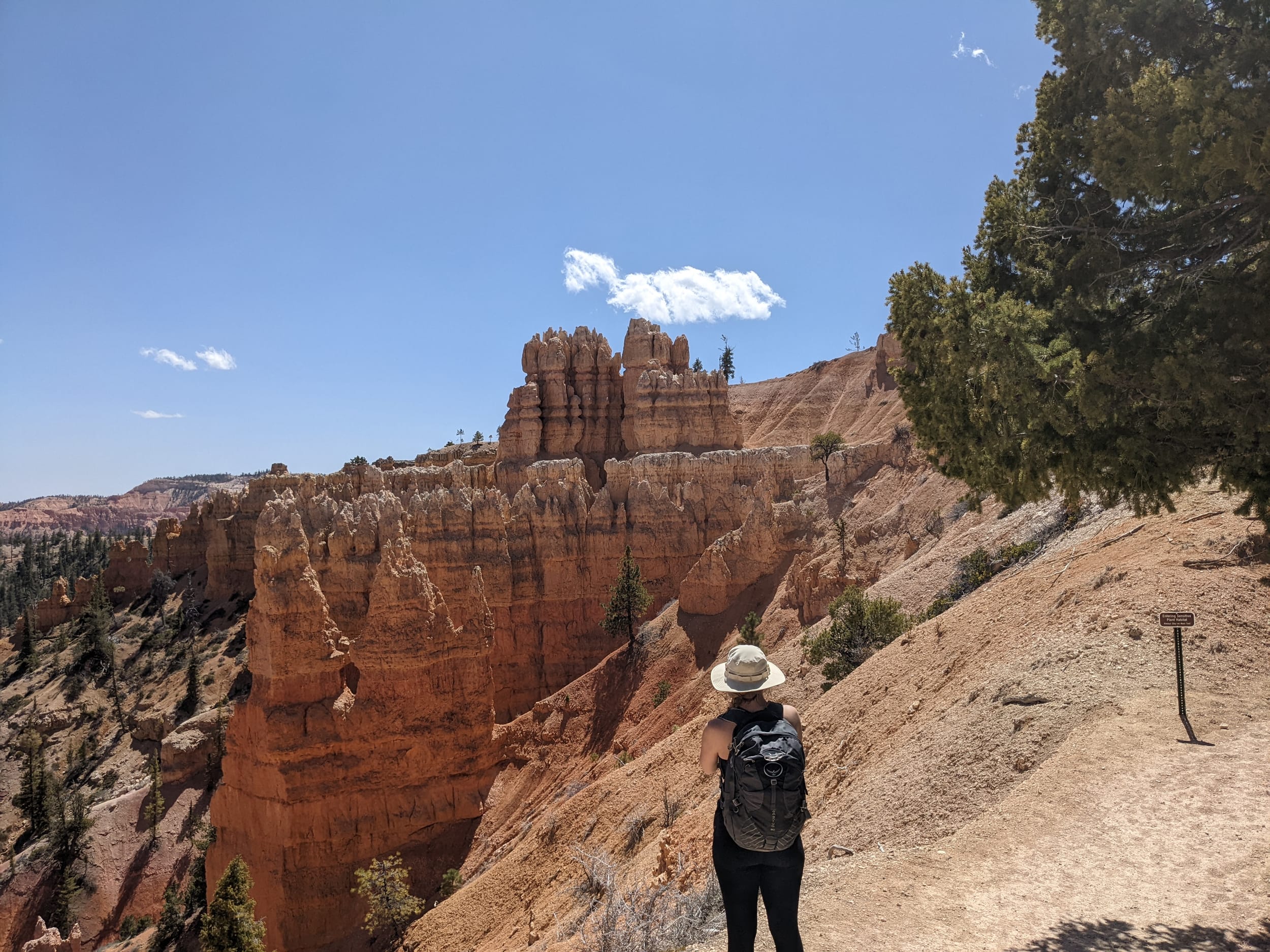 Our first hike of the tip was on the rim trail which, as per the name, follows the upper rim of Bryce Canyon. The views were spectacular - Bryce canyon is known for it’s Hodos, which are vertical spires of rock that form from the freezing and thawing of water that gets trapped between different layers of the rock. It’s a very interesting park from a geological perspective - in addition to spires there were numerous windows & deep canyons that are created from this same process.