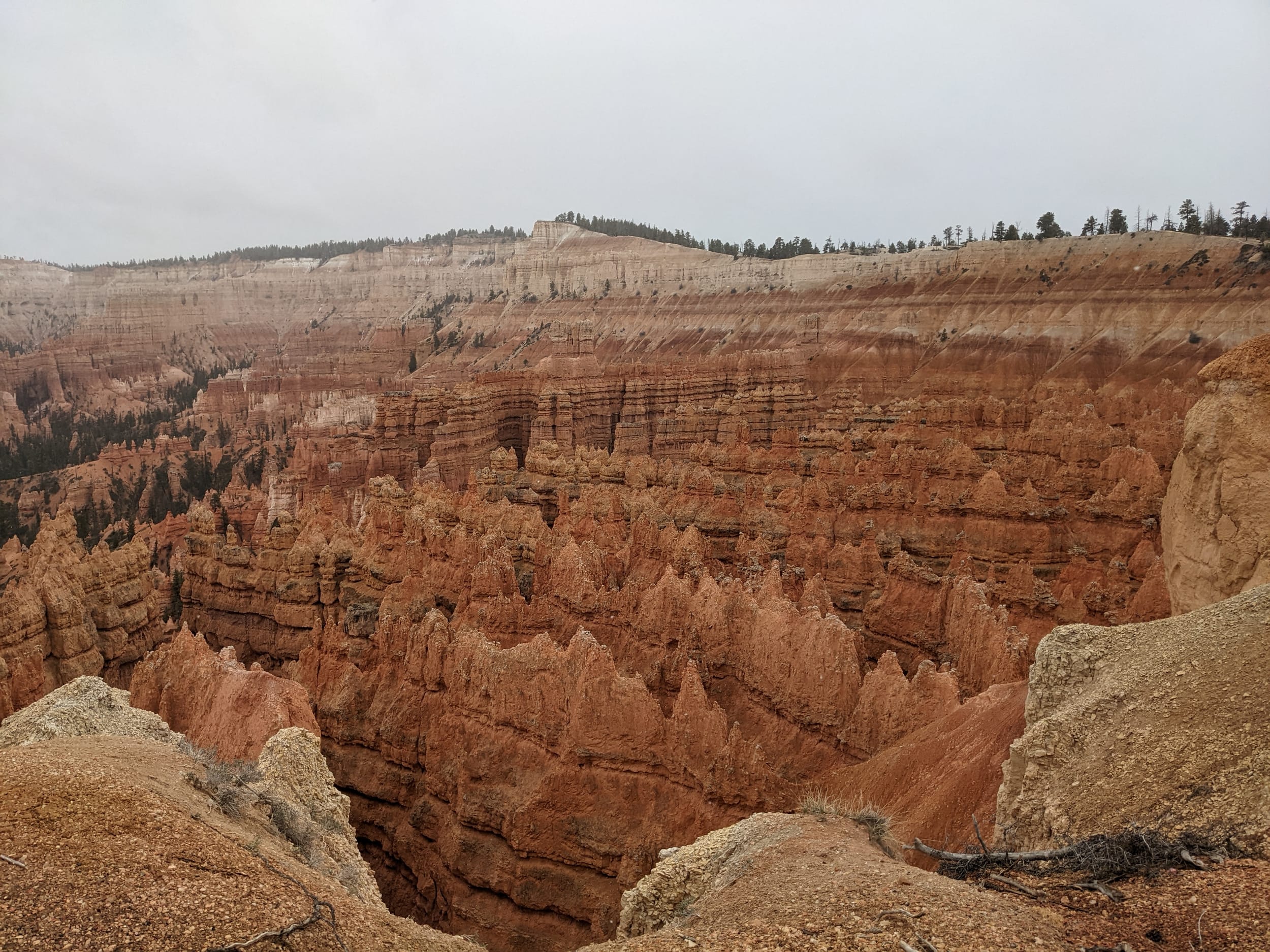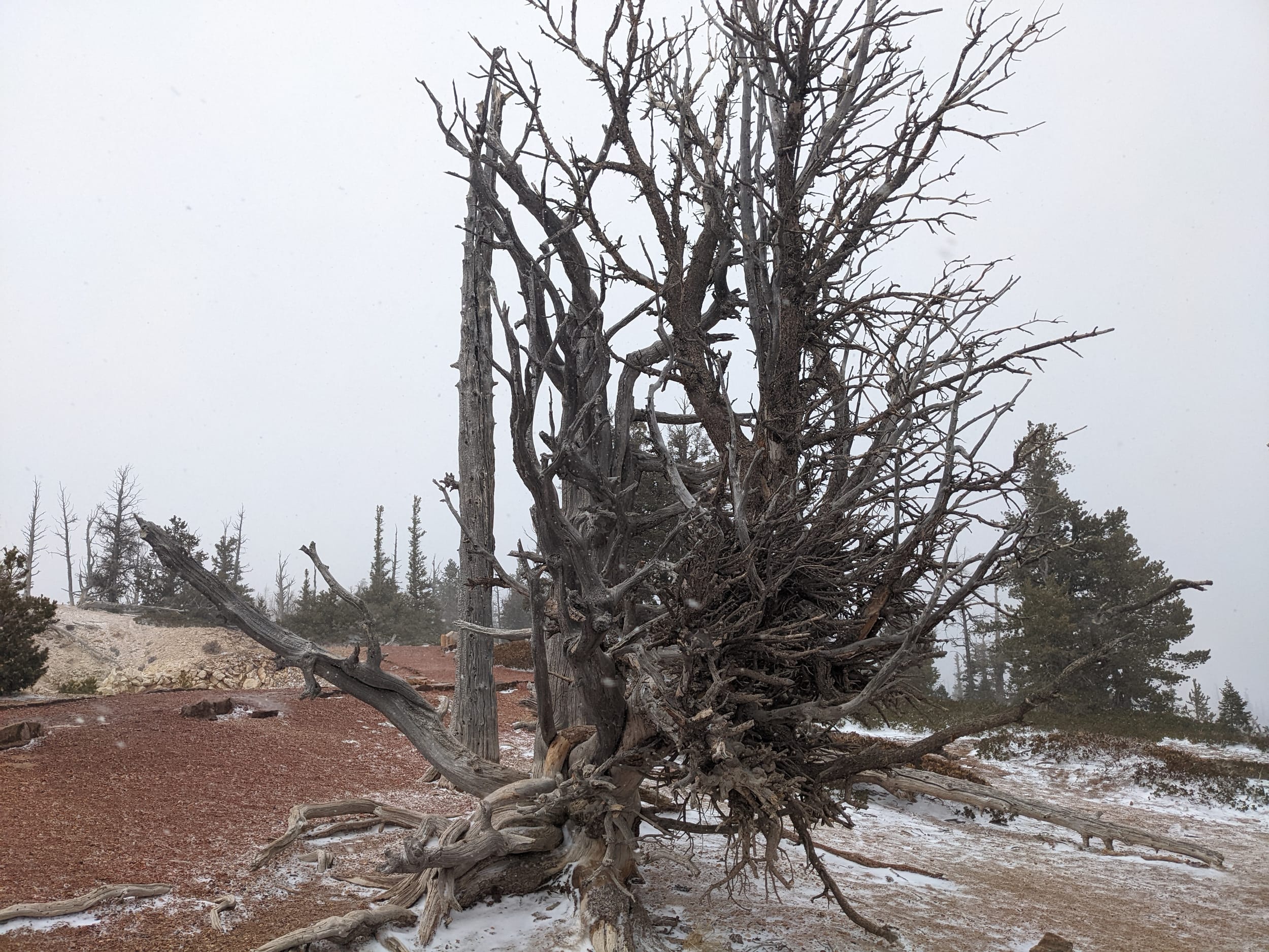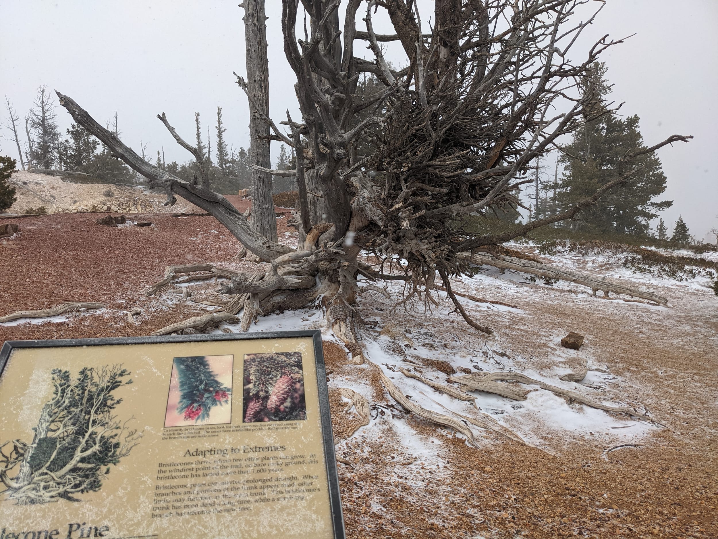 The oldest in Bryce was 1600 years old (more later) and the oldest found was just under 5000 years old - which is somewhere in California. It didn’t look alive when we found it, but I guess it’s still alive (at least as of last year). The tree is on Yovimpa Point and it’s very exposed, which is apparently where Brislecone pines thrive - where other’s done.