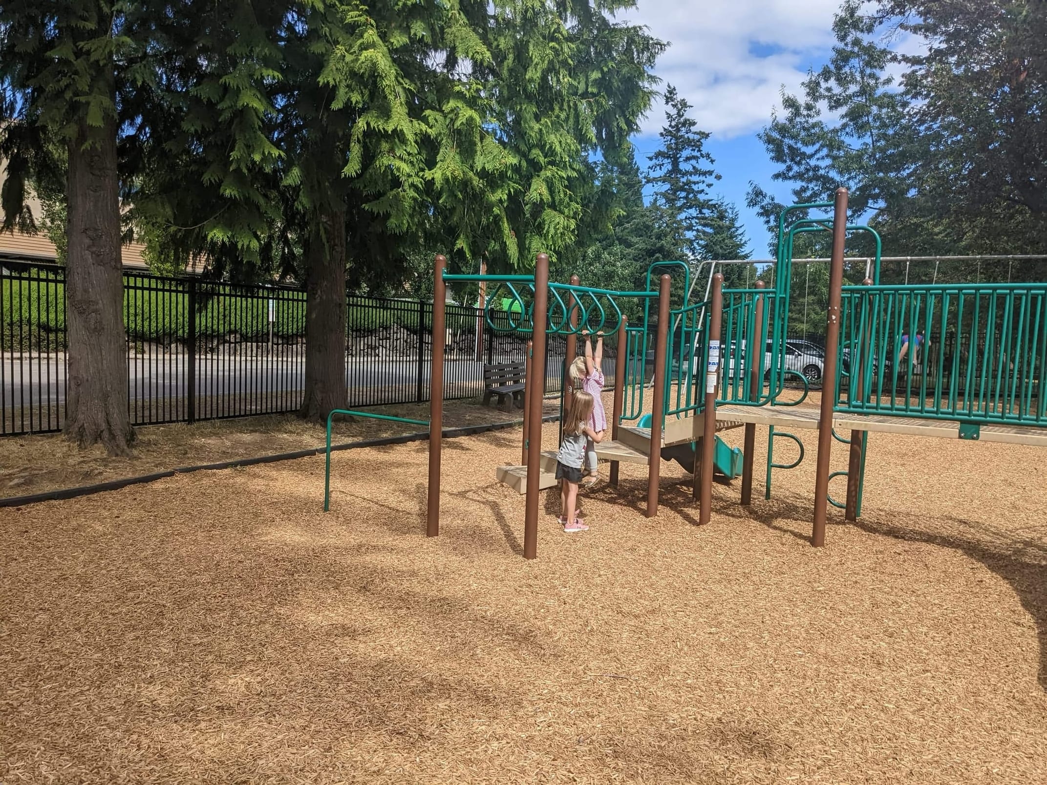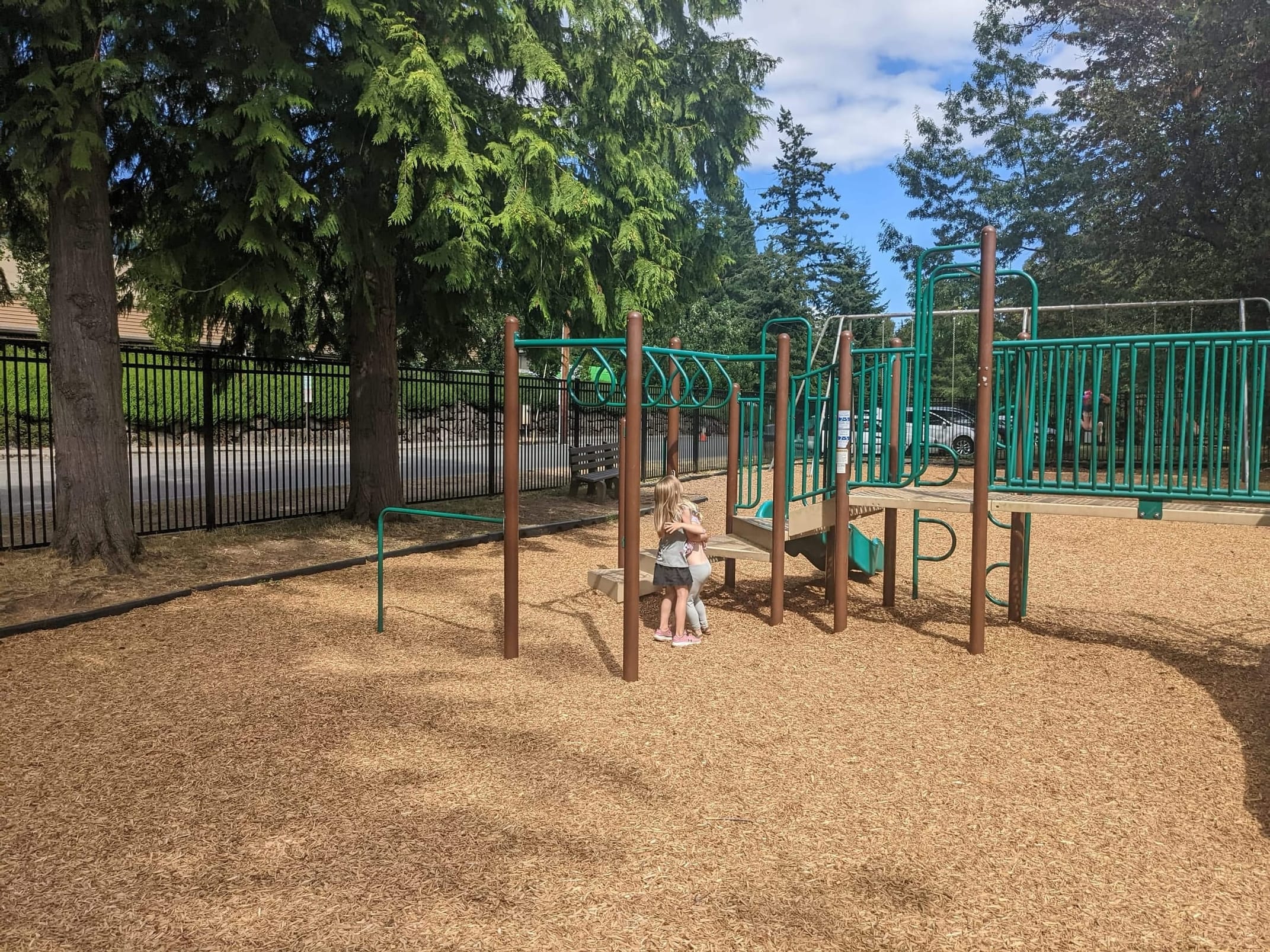 We took a quick walk through the park and we made it to ice cream! Afterwords we headed back to the city playground so Sara could have some play time. Sara had a great time and made a new friend. She helped her on the jungle gym - it was very cute!
