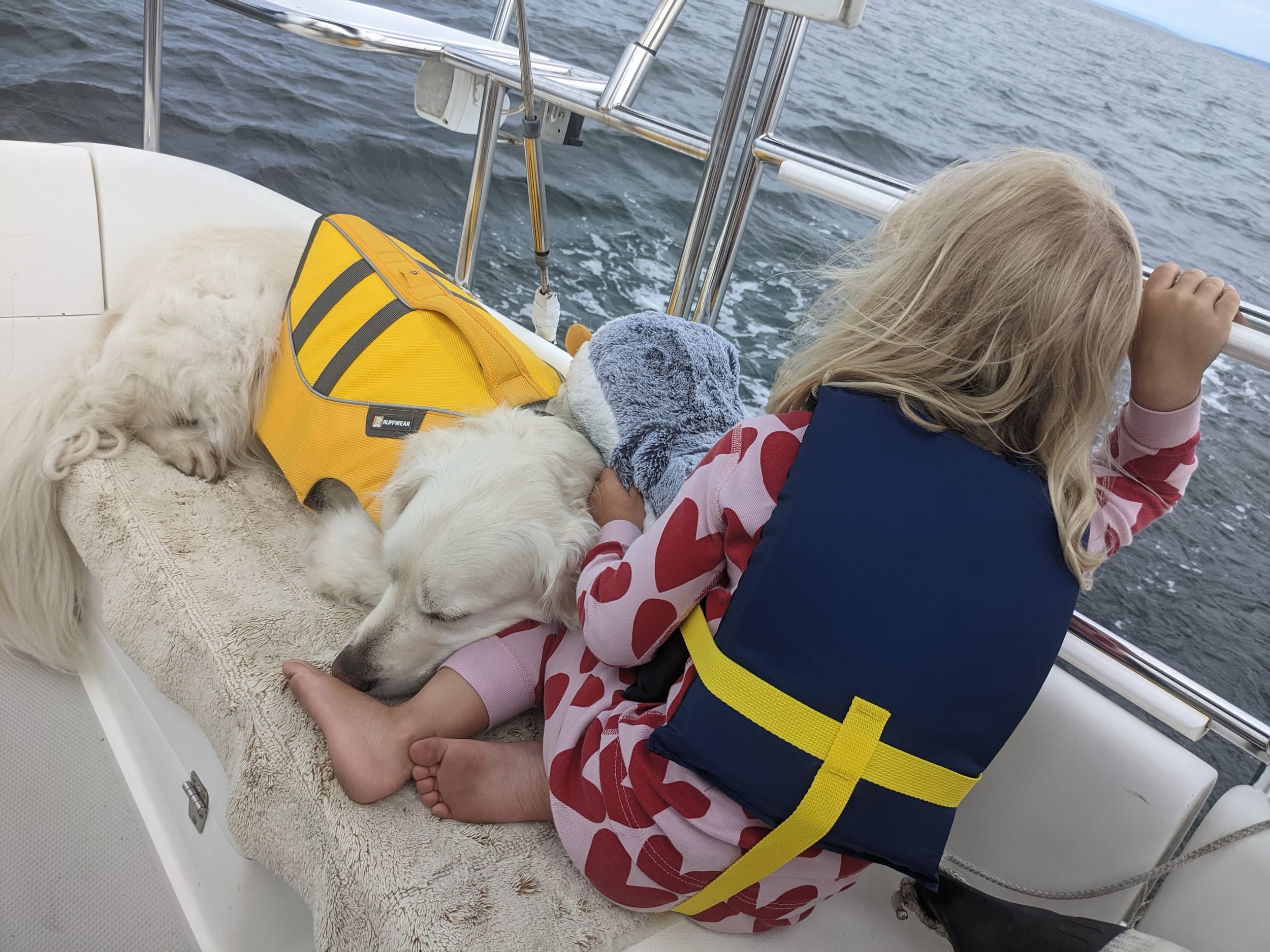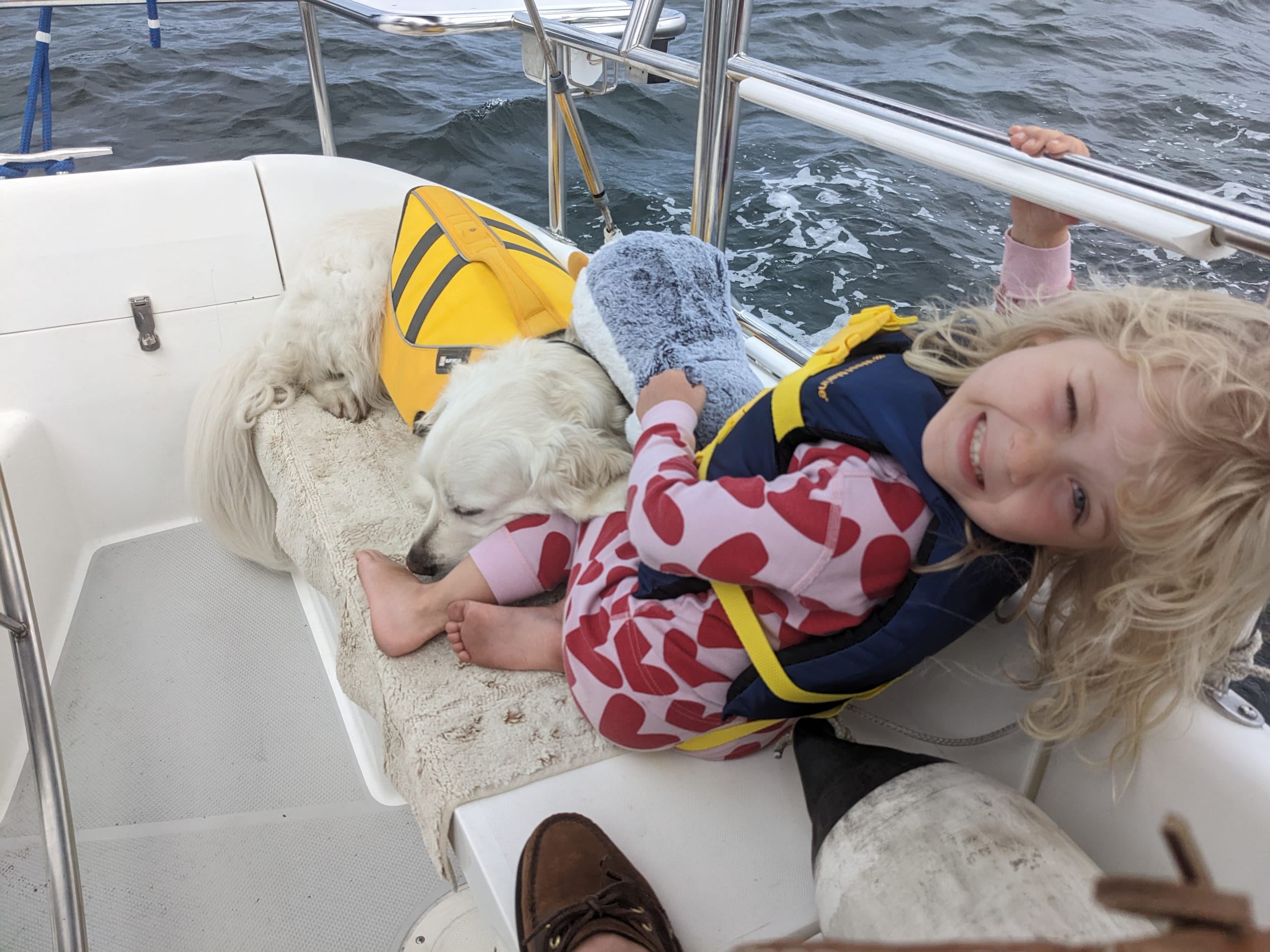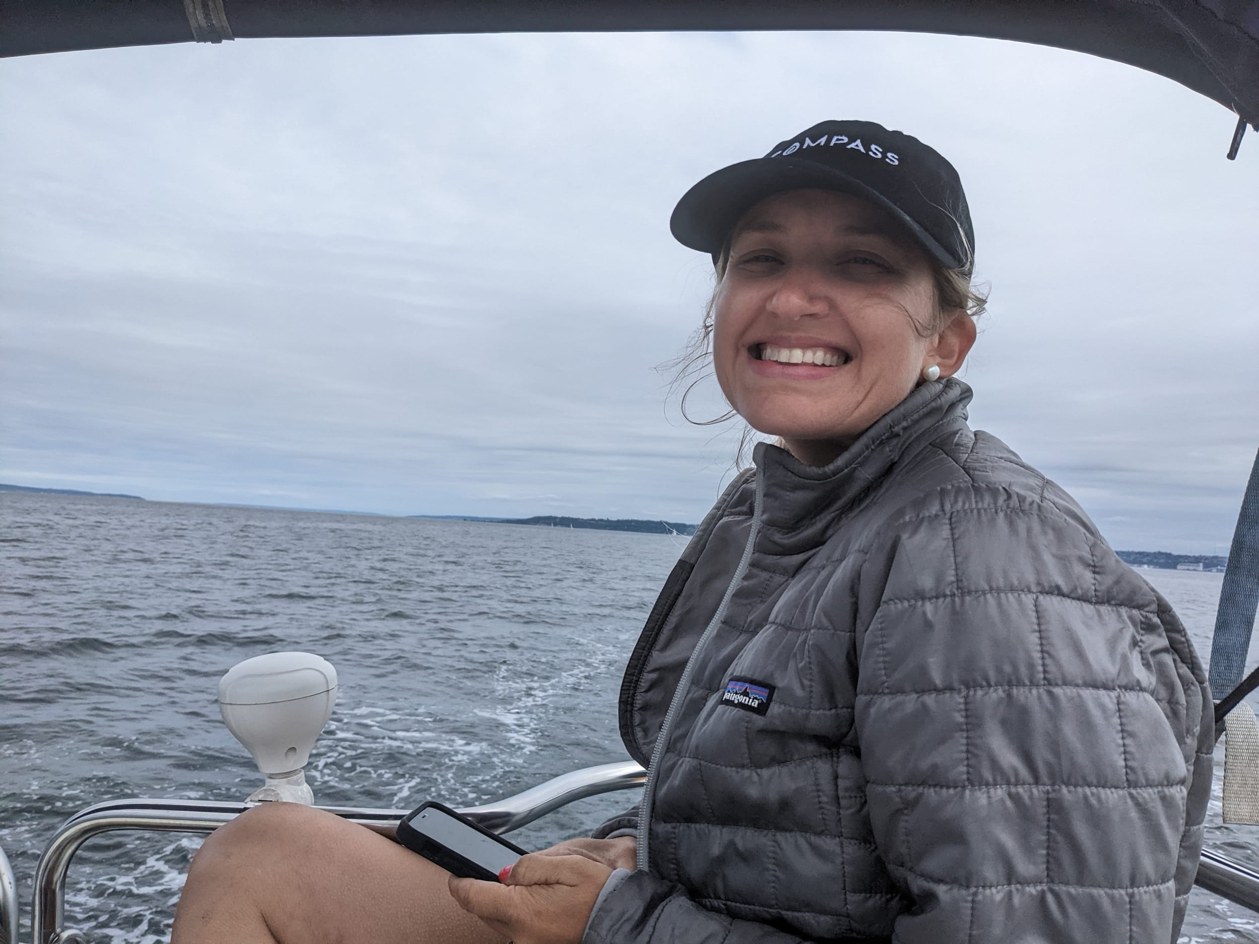 We planned on leaving around 8a (ended up actually leaving 9:30a). We got some great wind and just the right angle on the first day - spending the first couple of hours on a close reach with 10-15 knot winds, hitting 4-6 knots the whole way and far enough from the wind to maintain only a slight lean. It really was the best of both worlds - fast but comfortable. Sara slept in a bit and opted to start the day in pajamas (which she ended up spending most of the day in - comfy!).
