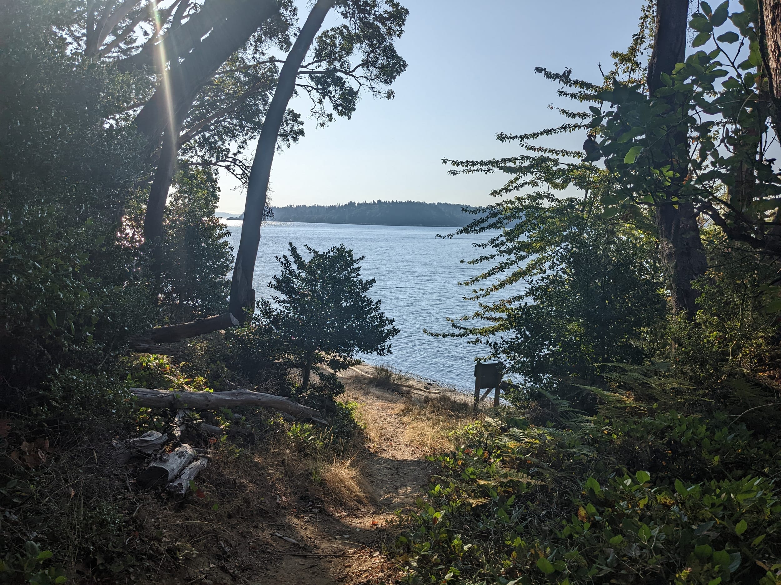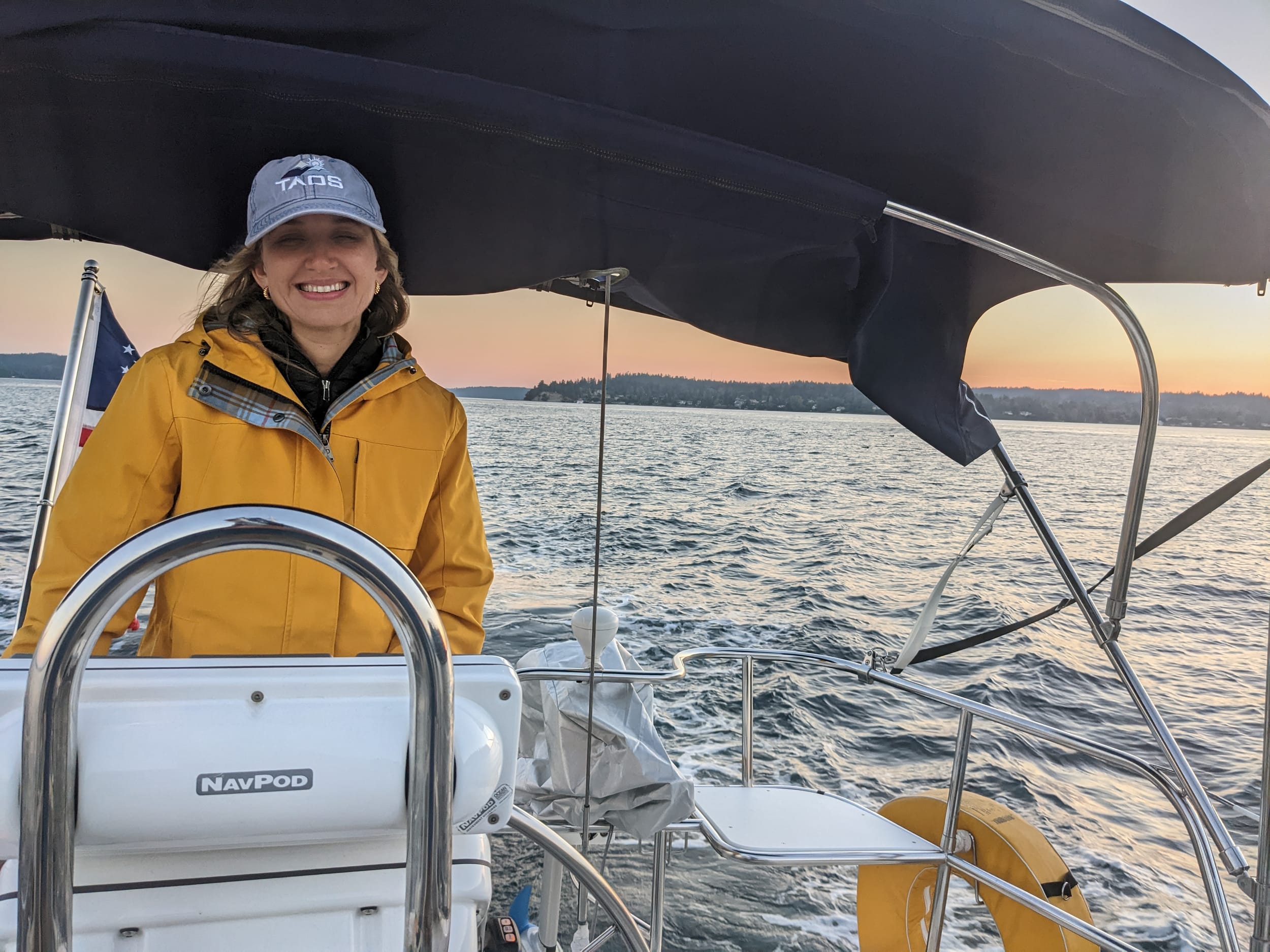 We left Seattle around 5:50-6p and it took us around an hour to sail to Blake island in some 7-10 kt winds out of the North - putting us at a nice broad reach all the way to the island. All of the moorings on the north-east side of the island were empty so we were somewhat reassures that we had a place to stay tonight. We also had high hopes that the west side moorings were also open (which is a the beautiful/protected side) - but as we came around the island we were sorely dissapointed. We did a full loop of the island and ended up grabbing a mooring on the soulth-east side (just south of harbor). We picked up the mooring ball on the first try but the mooring chain was a bit heavy for Angela so I had to run up to the front to help out. All in all, it was a great end to the first day. It was a little choppier here, but we had great views of the city as the sun set. I pulled down the dingy from the deck (a fairly complicated affair) while Angela made dinner. Taking the dingy to the beach was challenging for Oakley’s business and I ended up getting quite wet - note to add the extra-tuffs to the boat loadout. After taking Oakley ashore, we closed ourselves in for a cozy evening. The Diesel heater is still acting up, so another item to add to the list (pretty sure it’s the glow plug).
