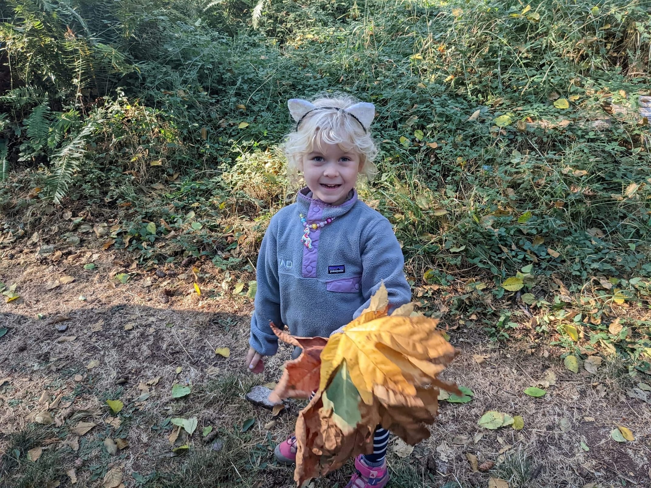 Sara and Angela made a few leaf bouques and the promply forgot them or lost them - forcing them to make another. They were quite lovely and Sara was eager to bring all of them home - which we did not do…