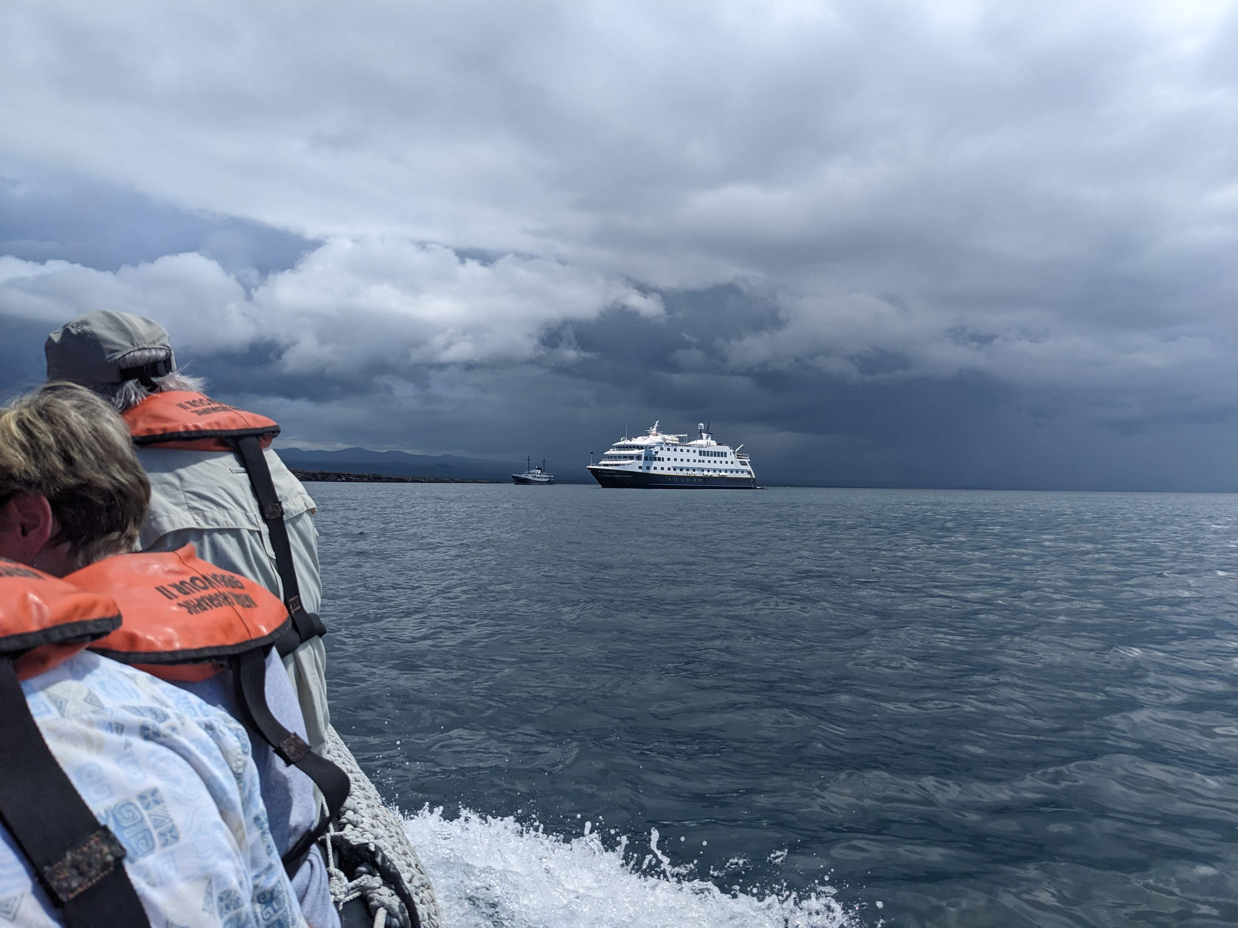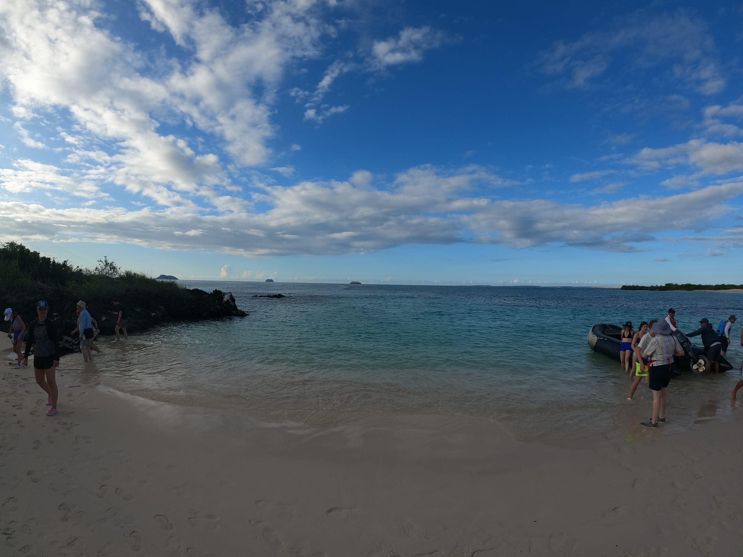 Our day started at the hotel ~6a with breakfast and packing. We were to meet up with Nat Geo for a bus ride to the airport, flight to Galapagos, bus ride to the docks, and Zodiac rides to our ship. This was my first real taste of the level of organization that this company has - it was truely impressive. The morning went off without a hitch and when we landed in Galapagos it was early afternoon. My first impression was how dry it really was - this place is truely a desert (complete with huge cactus) surrounded by water.