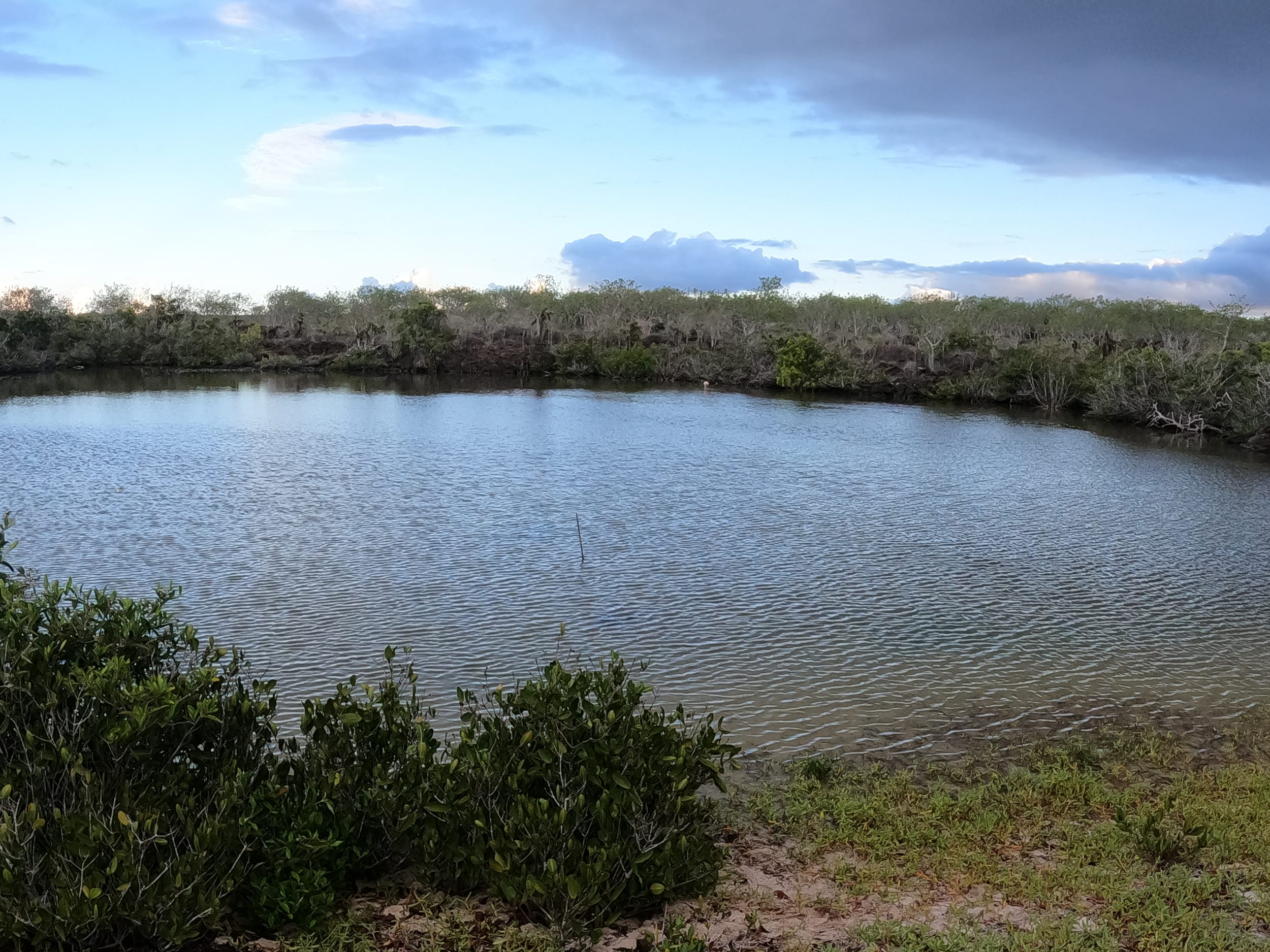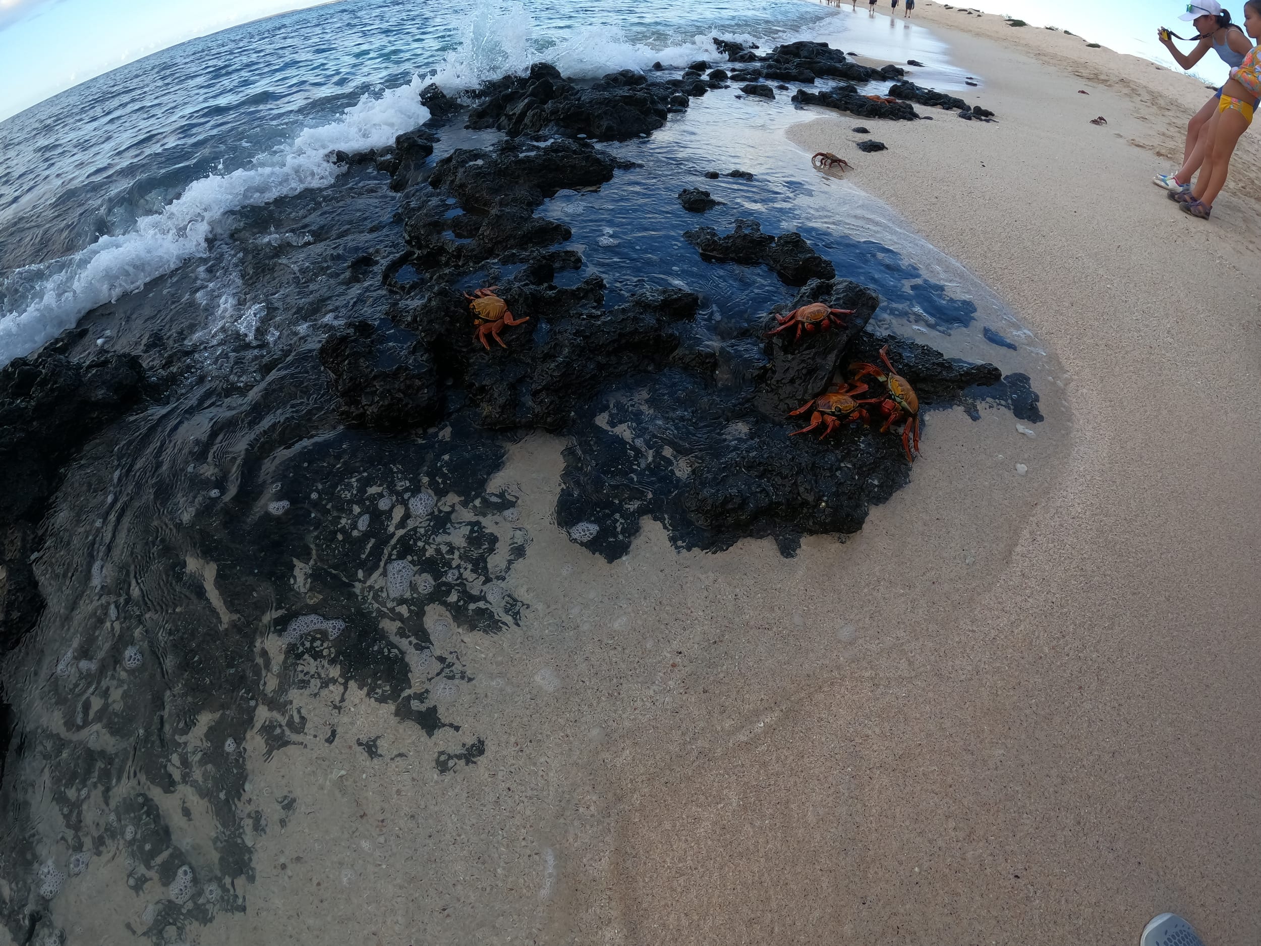In the afternoon, we had our first excursion of the trip to Santa Cruz island. The excursion involved a short (1/2 mile maybe) loop around the beach to visit a large tidal pool with… Flamingoes! It was a very successful first trip with the bright red crabs (called Sally Lightfoot crabs - named after an exotic dancer who wore a red dress back when there was a military base here), Iguanas, lots of birds of various kinds - including the flamingoe, and eagle rays in the water.