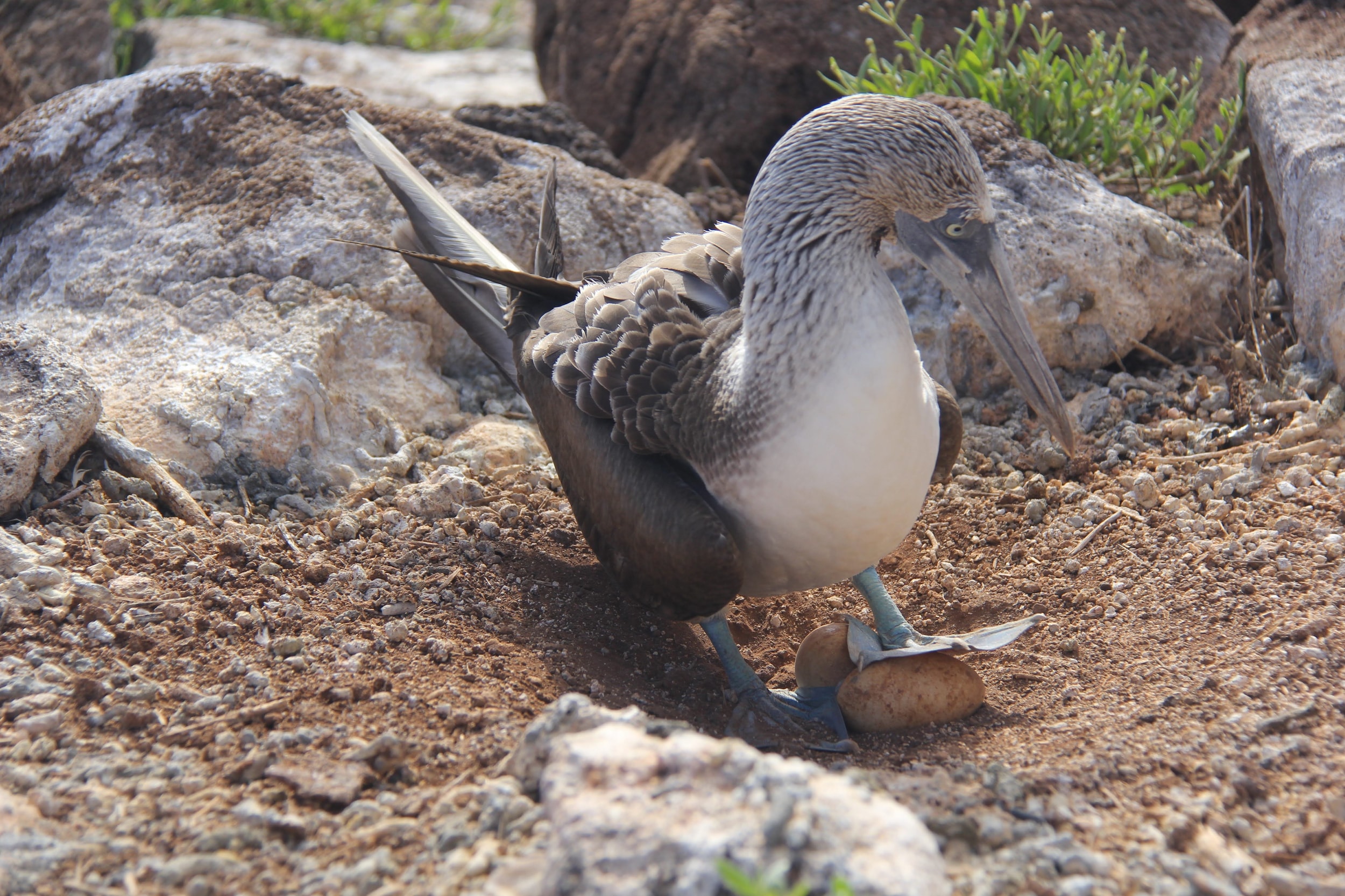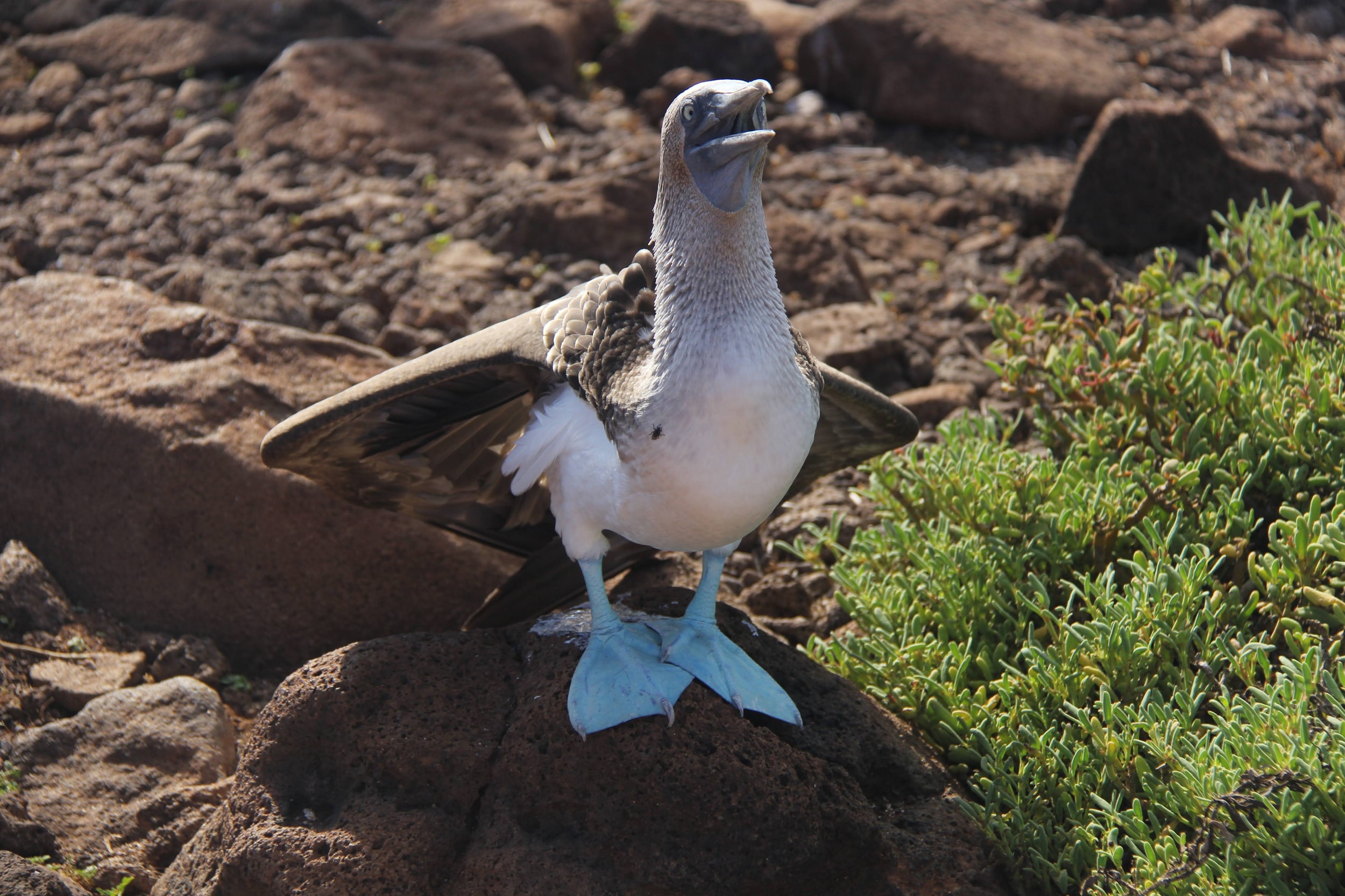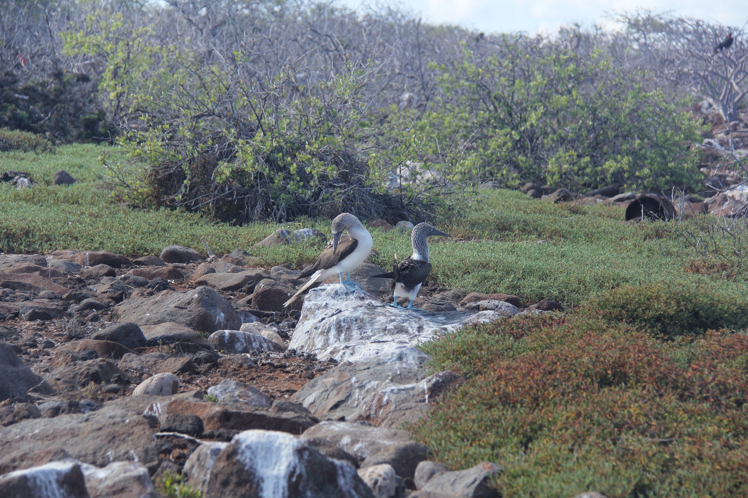 Our morning was spent on North Seymour island - which was home to an impressive number of birds of different shapes and sizes as well as iguanas & some sea lions. The first animal was saw in abundance was the Blue Footed Booby. This bird is obviously known for it’s blue feet but it also has some other surprising adaptations - there are airbags in it’s face/head for absorbing the impact of high speed dives into the water. We also saw them doing this thing where they hold out their wings in a diamond shape behind their body to shade their body from the heat (and their egg if they have one) and panting heavily to shed excess heat.