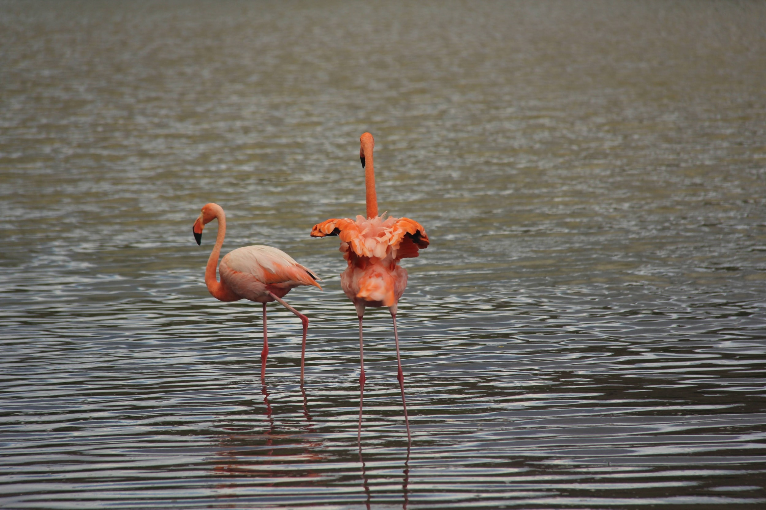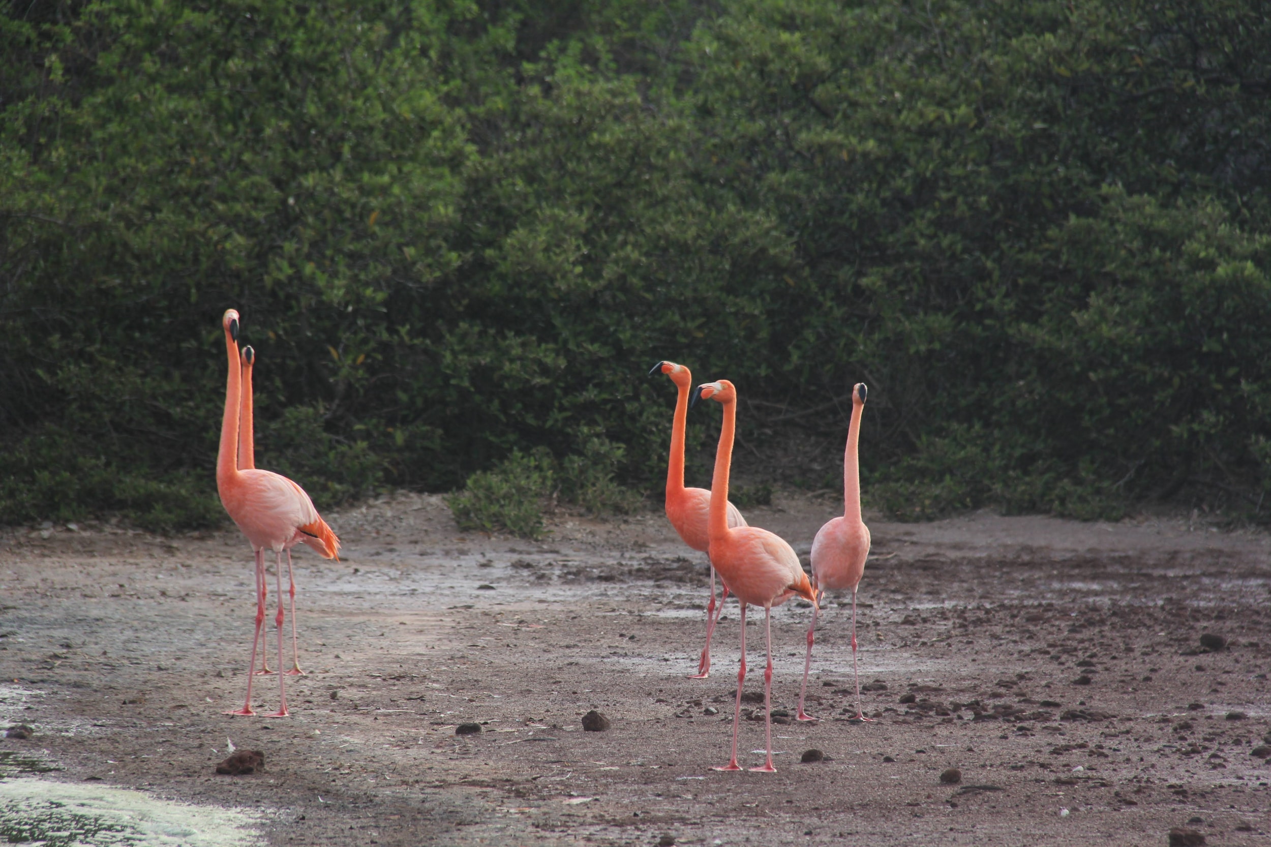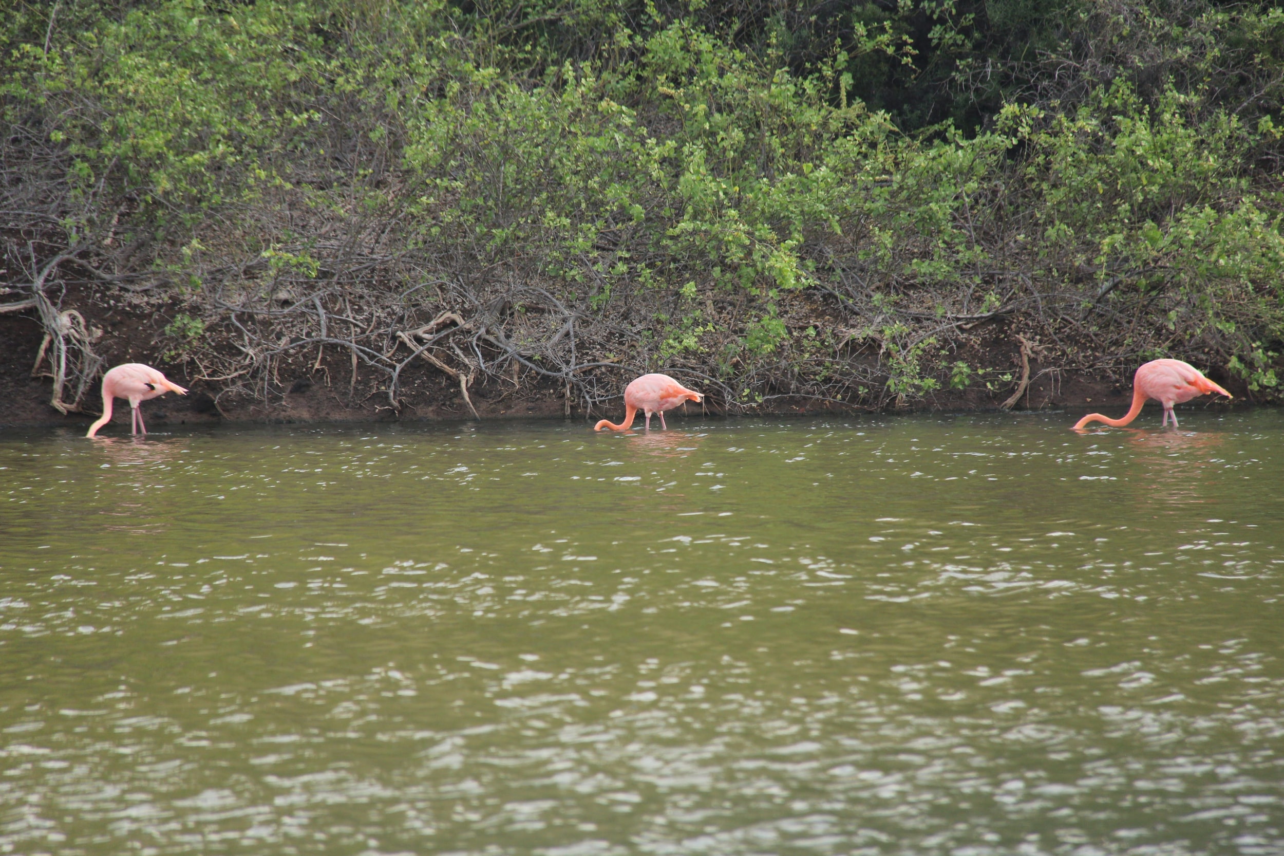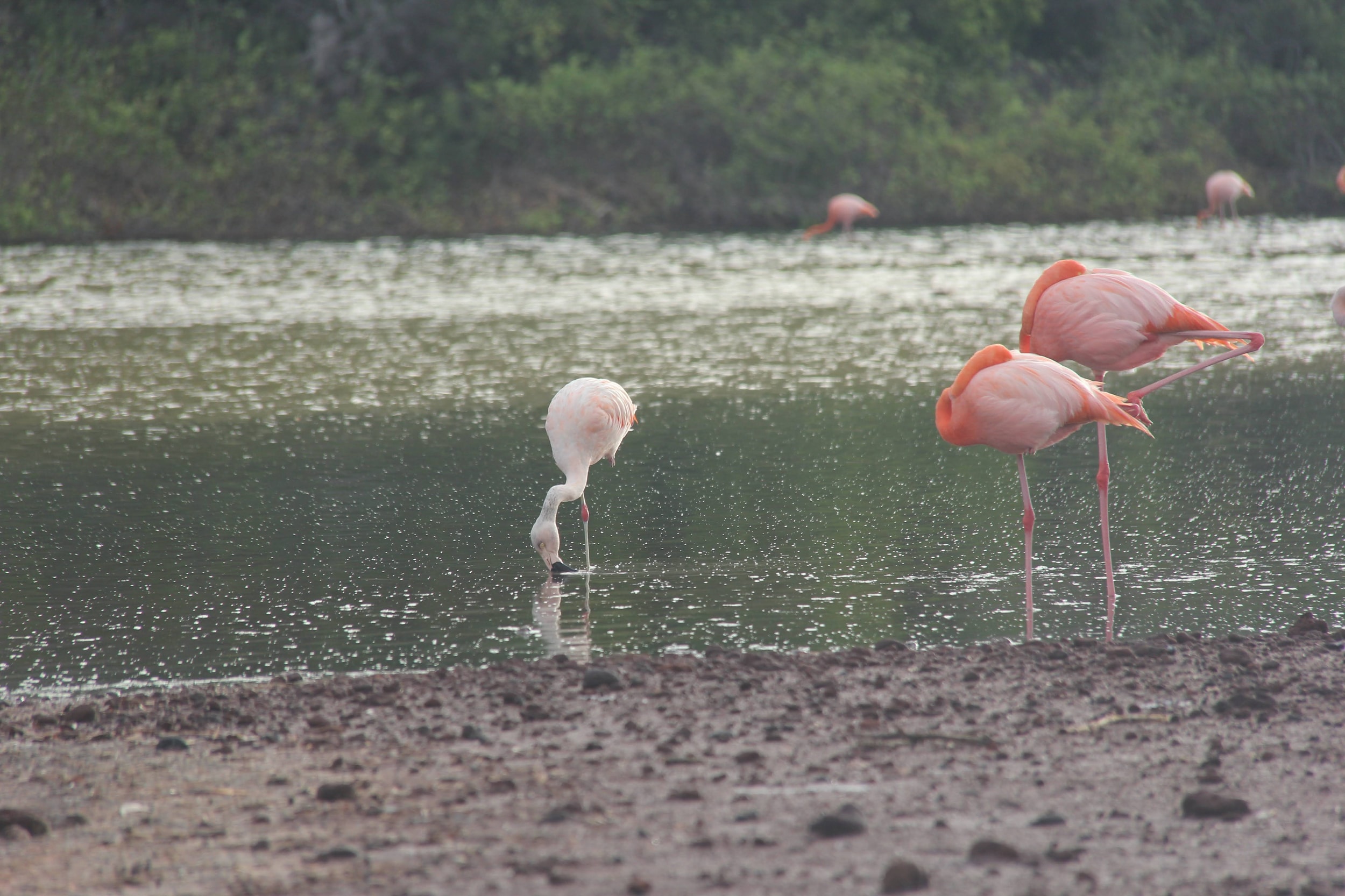 After snorkeling, we went back to the ship for a quick refresh before we were given the option to head back to the same beach for a photography excursion. There was a small tidal pond just behind the beach that becomes highly salinated from the heat/evaporation and flamingoes like to come here to feed. There were probably 2 dozen flamingoes in the pond, including one that was mostly white (apparently a different subspecies - a Chilean Flamingo). They were mostly feeding, but there were some period of activity either from mating rituals or just snipping at each other. Some of my best picures just how off how amazing their necks are - super flexible and controlled despite the large head/beak.