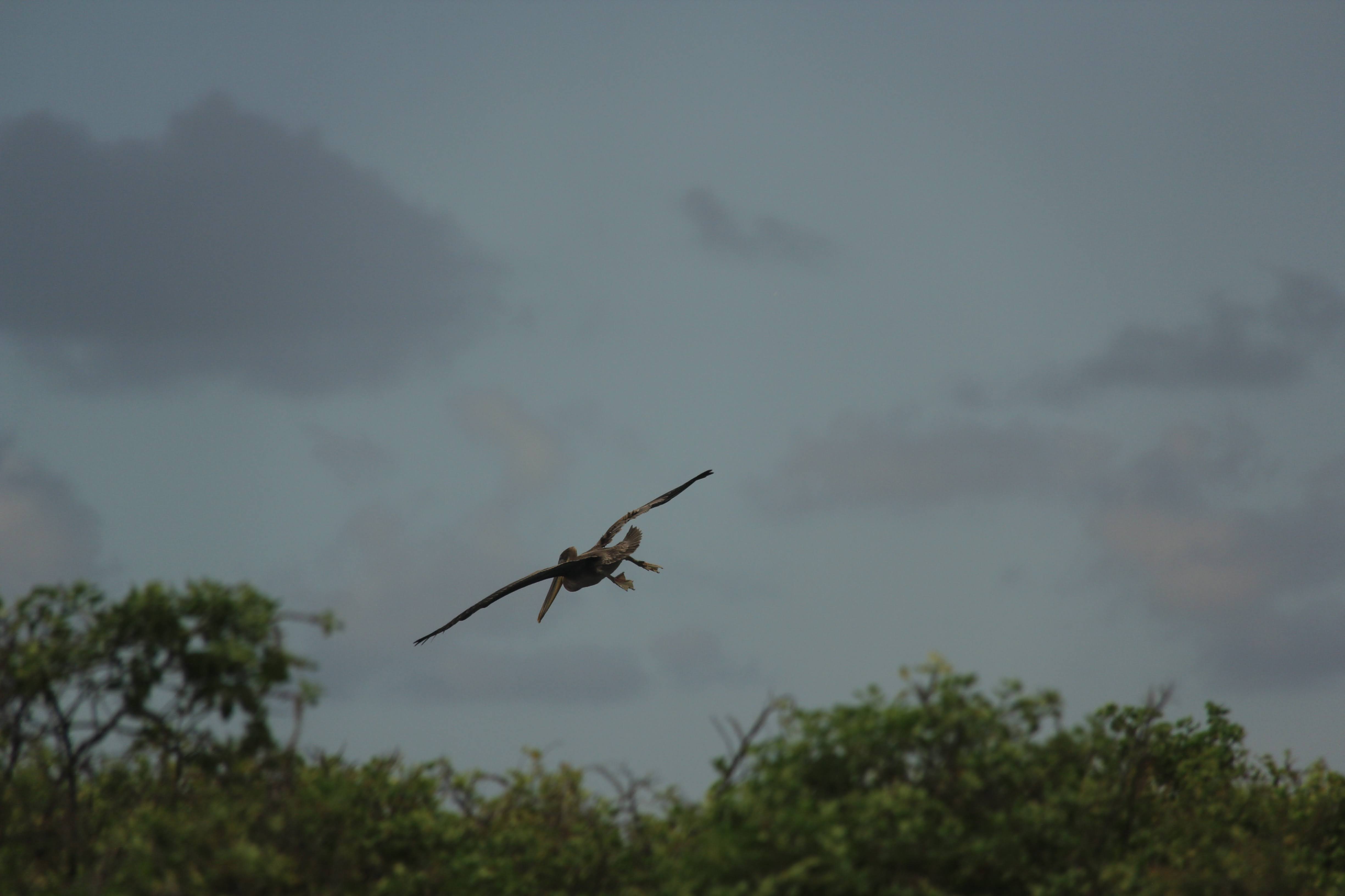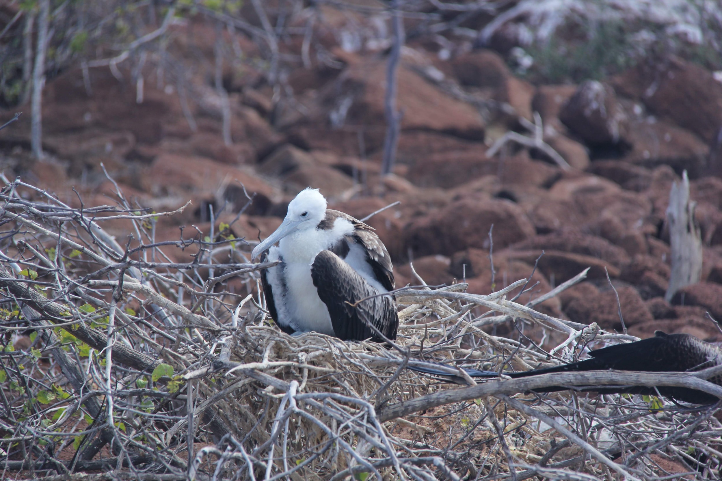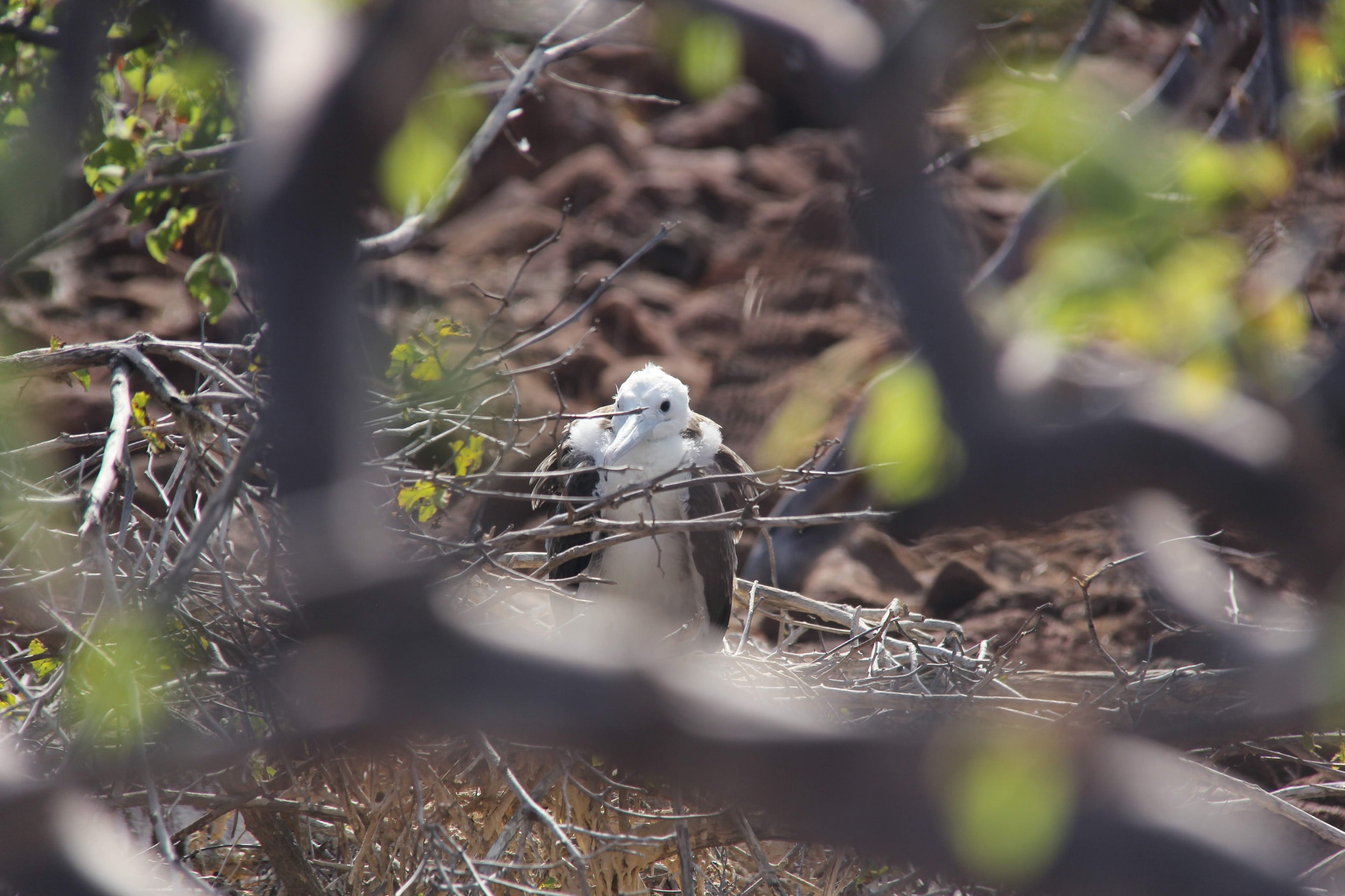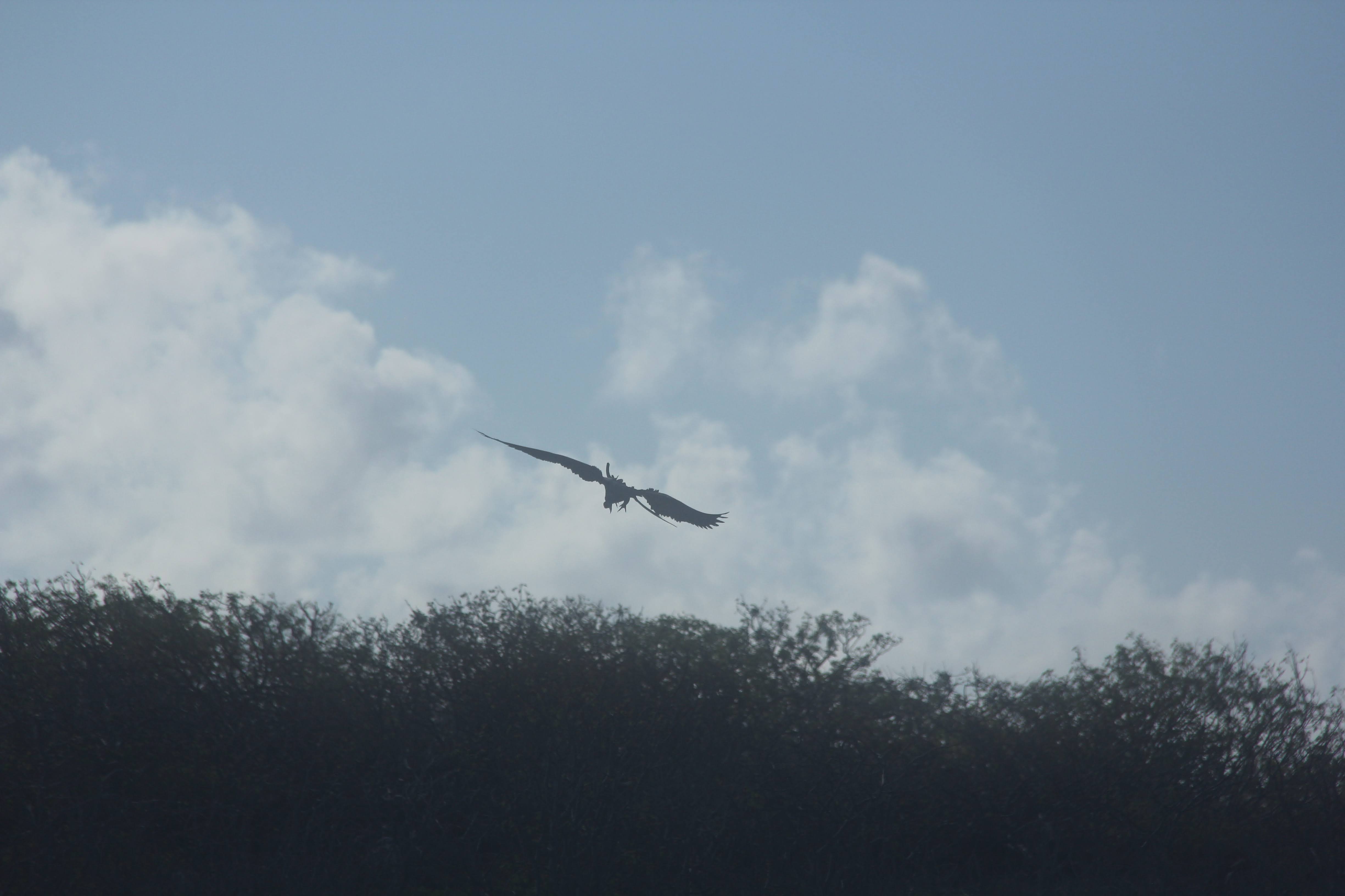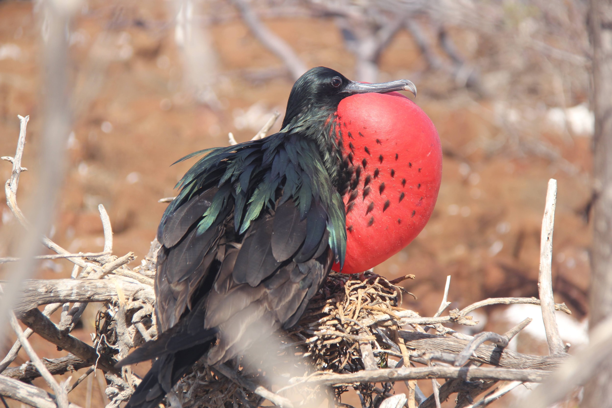This particular island had an enormous number of frigate birds - of which their are two types, the magnificent and the great (the difference is very subtle). It was frigate bird mating season so all the males had their red pouches inflated - which looked very impractical in my opinion. Frigate birds can’t get wet, they don’t have the oily coat on their feathers like other birds do. Instead they fly low over the ocean and snatch fish right near the surface and, quite often it turns out, they steal from other birds. Other birds have to be very careful around the frigate birds!