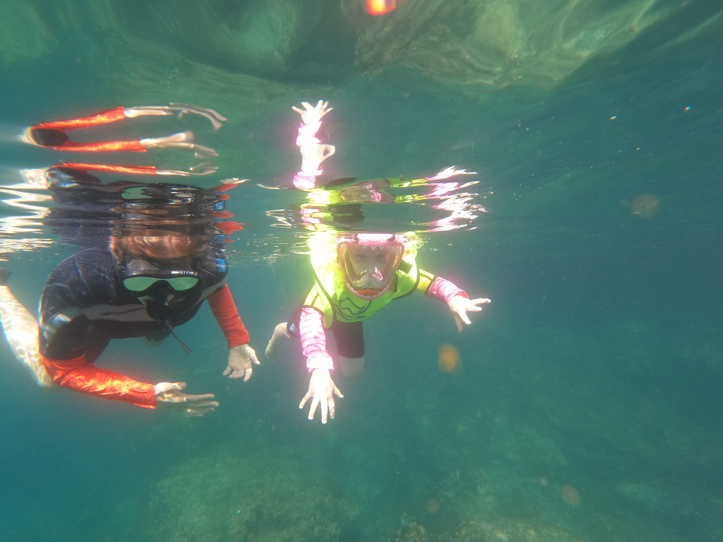 For Sara’s first real snorkeling, she did great and was super excited the whole time. The mask is pretty good about purging any water that leaks in, but it doesn’t get all of it so at some point Sara started to get water in/around her eyes which caused her great consternation. This resulted in something like 30 min to an hour of snorkeling before she was ready to quit. She was able to see some amazing fish during that time though - and we played a game where she would point at a fish and I had to dive down to get a picture (or video) of it. I was great fun for her and I ended up with a lot of pictures of sardines/Wrasse and other common fish… :)