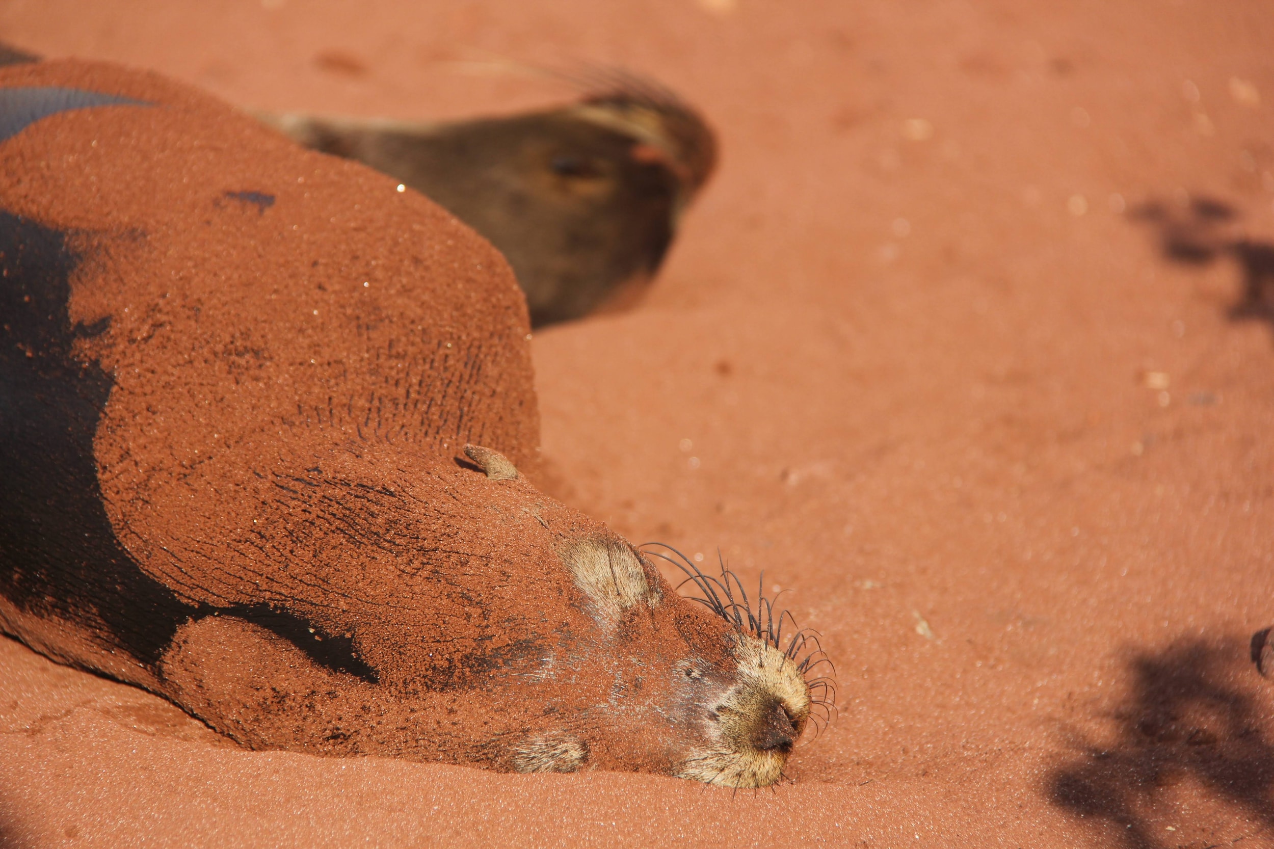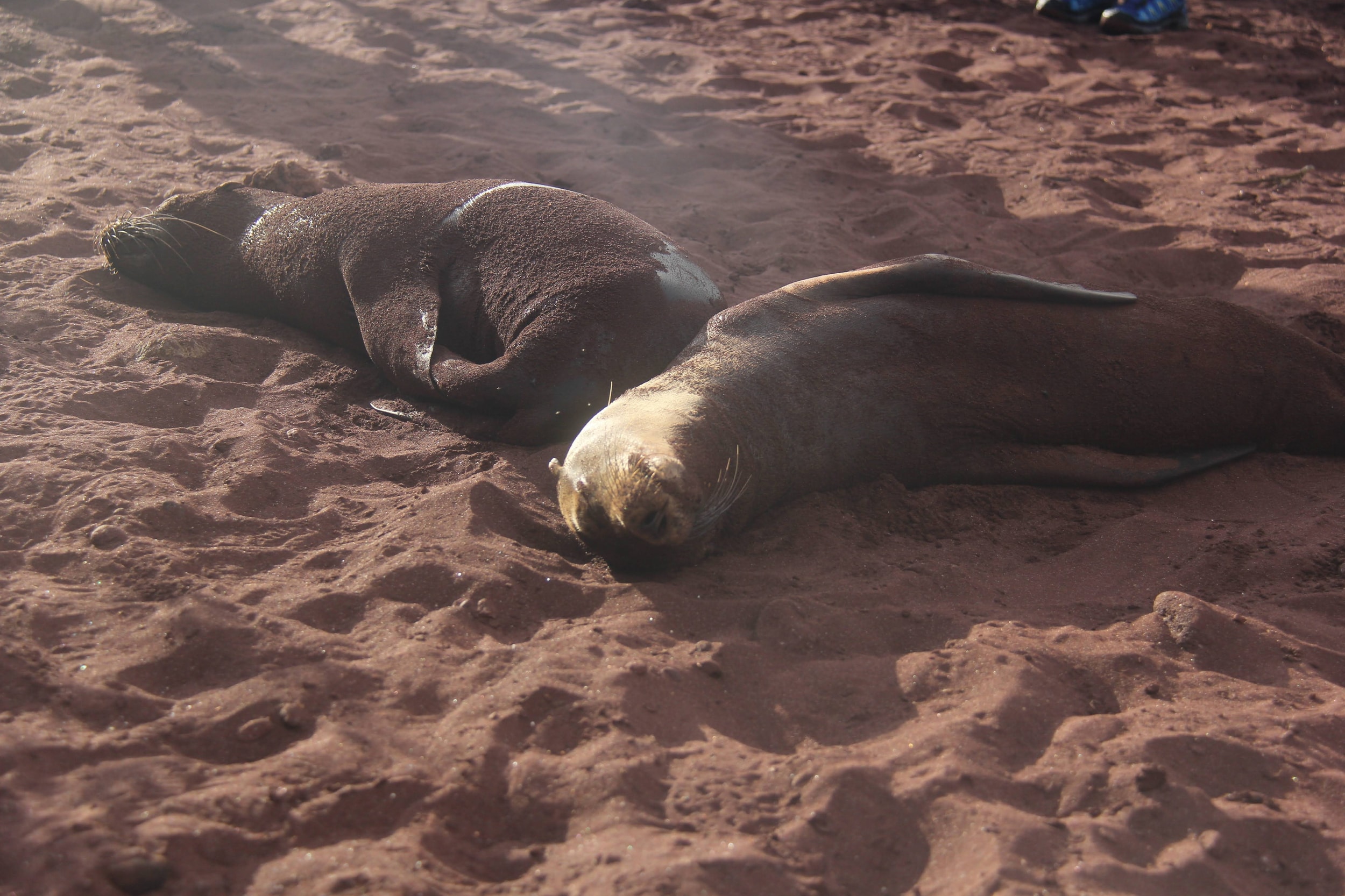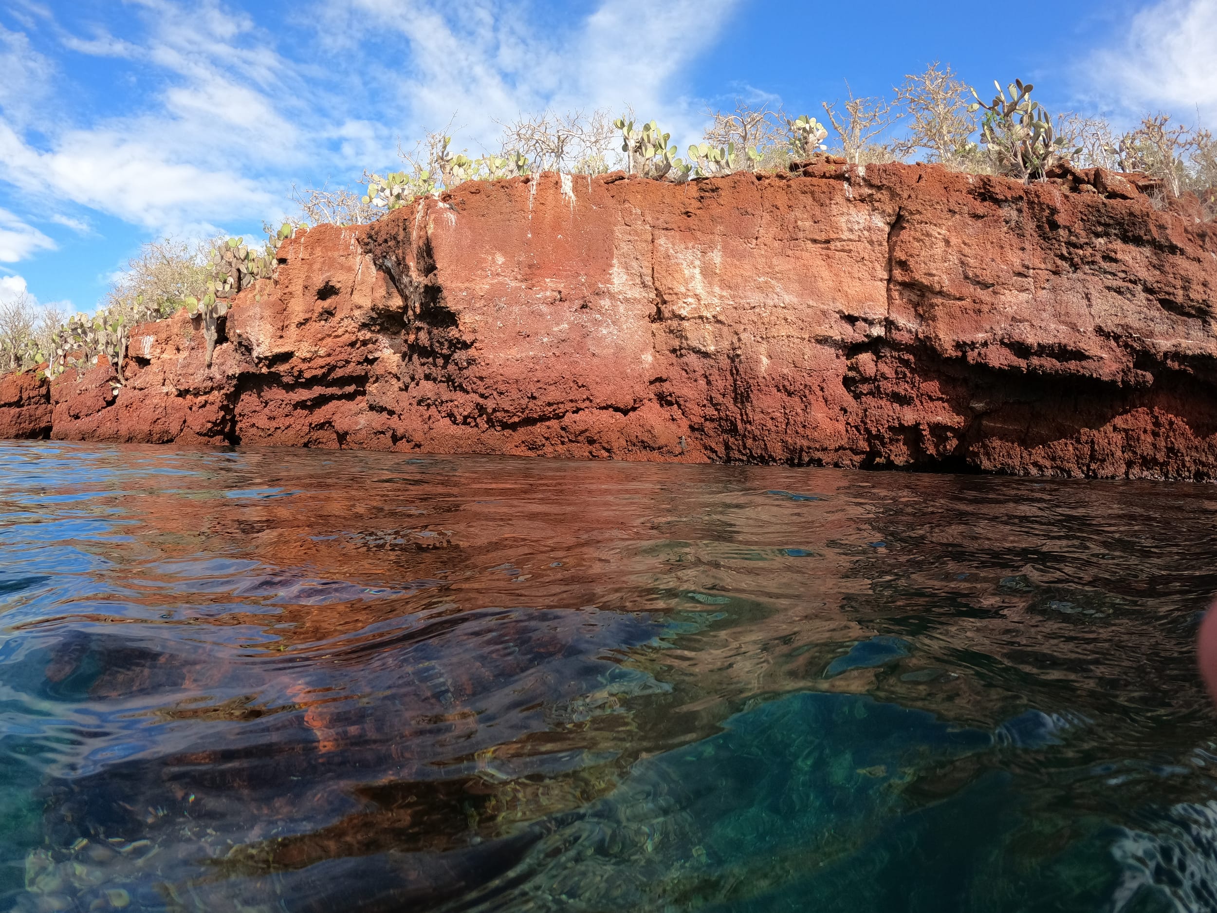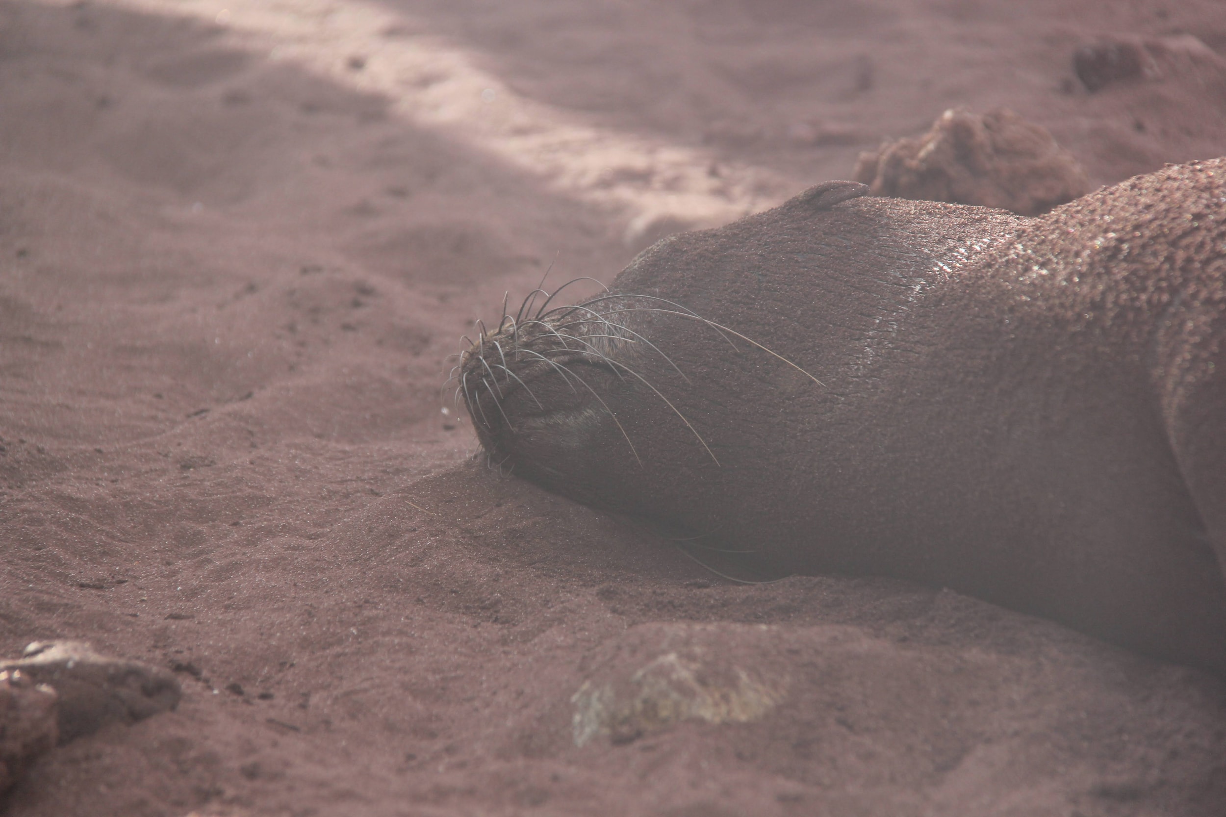 Snorkeling was a perfect afternoon activity as it continued to get hotter after the morning trip. We had the option of snorkeling from the Zodiac, but we opted to leave from the beach to give Sara an easier first time. The beach we were to snorkel from was full of red sand - apparently from the high iron content in the sediment that rusts on contact with water. The beach was beautiful and when we arrived there were a couple of Sea lions sleeping on the beach. Later in the trip I would realize that this is a perfectly common occurrence, but on our 2nd day this was quite cool - primarily that our presence didn’t disturb them in the least.