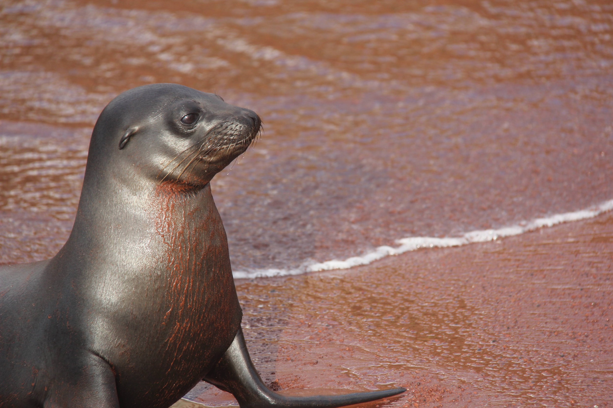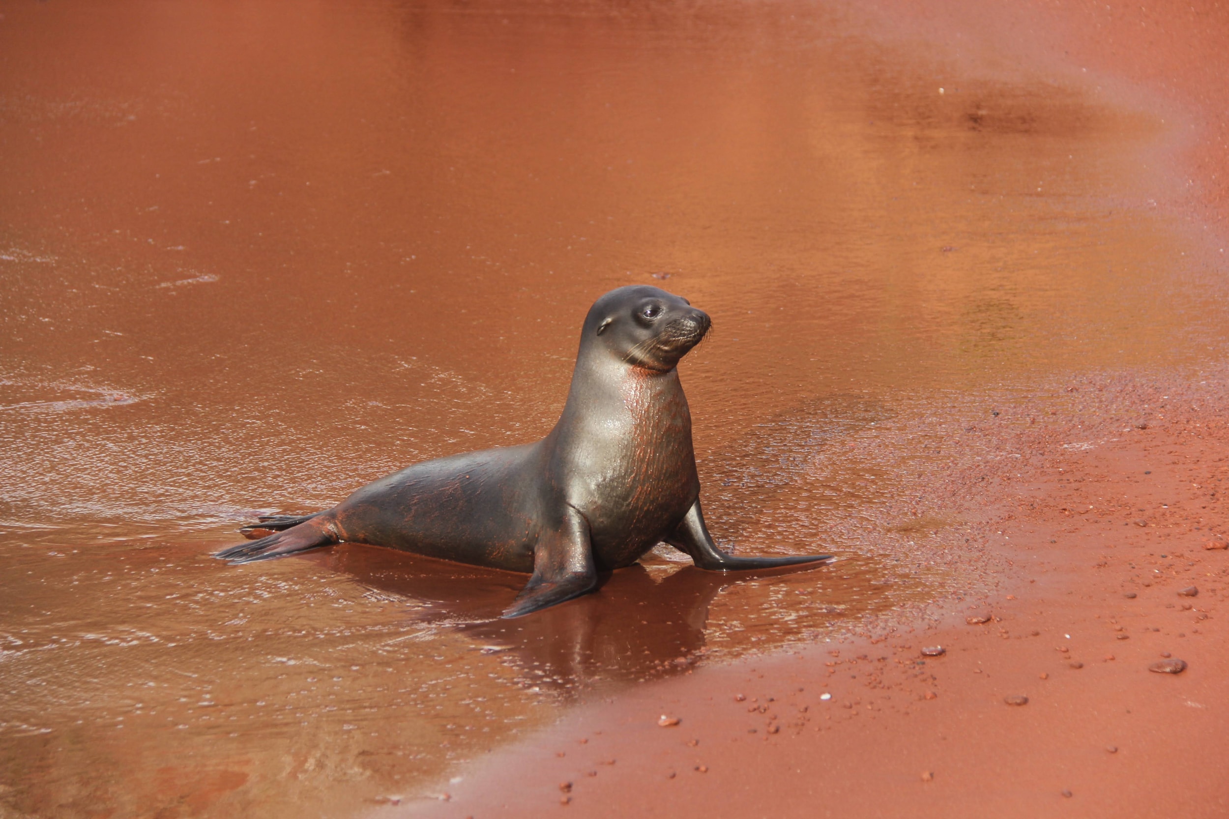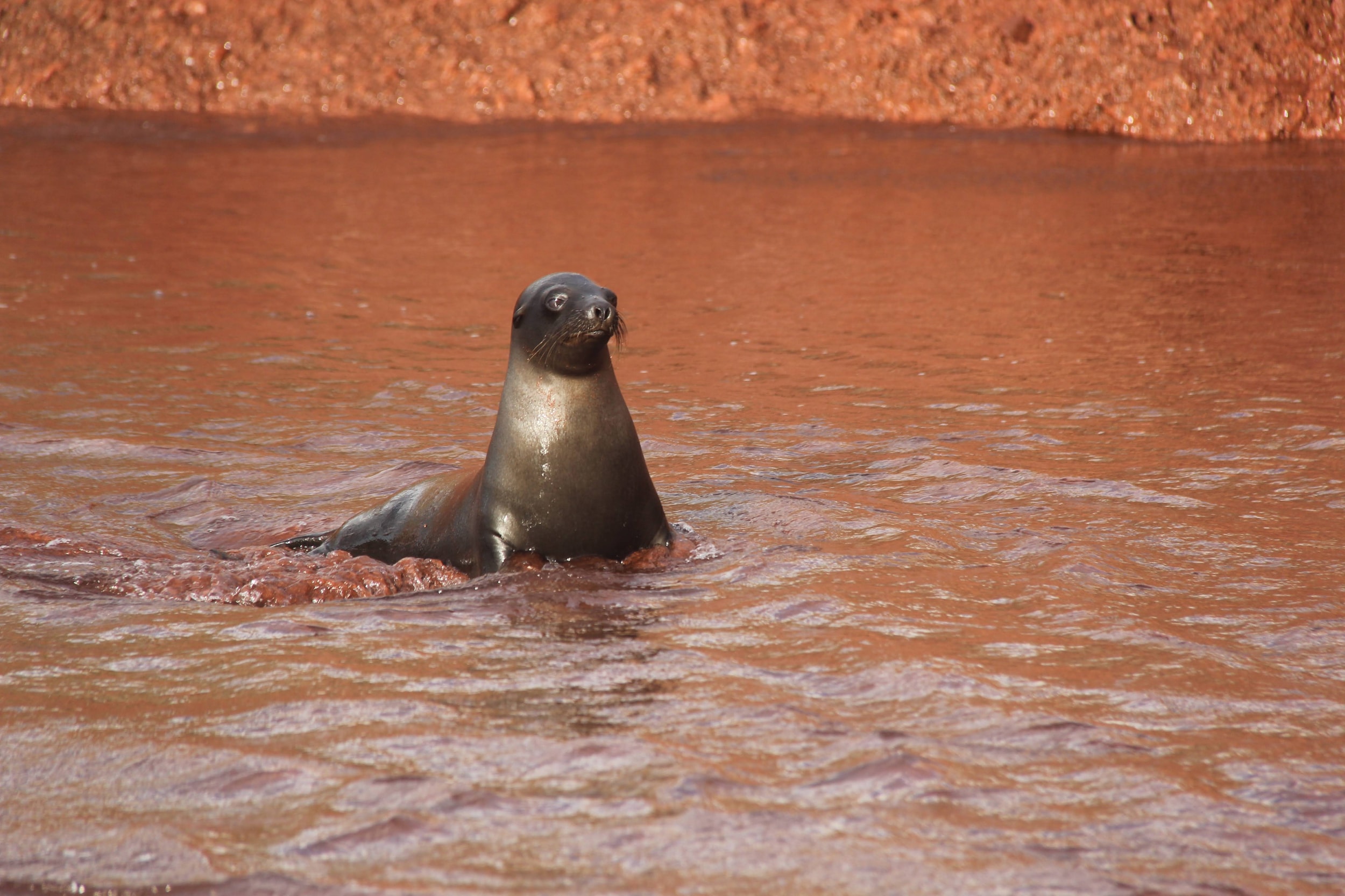 Snorkeling was a perfect afternoon activity as it continued to get hotter after the morning trip. We had the option of snorkeling from the Zodiac, but we opted to leave from the beach to give Sara an easier first time. The beach we were to snorkel from was full of red sand - apparently from the high iron content in the sediment that rusts on contact with water. The beach was beautiful and when we arrived there were a couple of Sea lions sleeping on the beach. Later in the trip I would realize that this is a perfectly common occurrence, but on our 2nd day this was quite cool - primarily that our presence didn’t disturb them in the least.