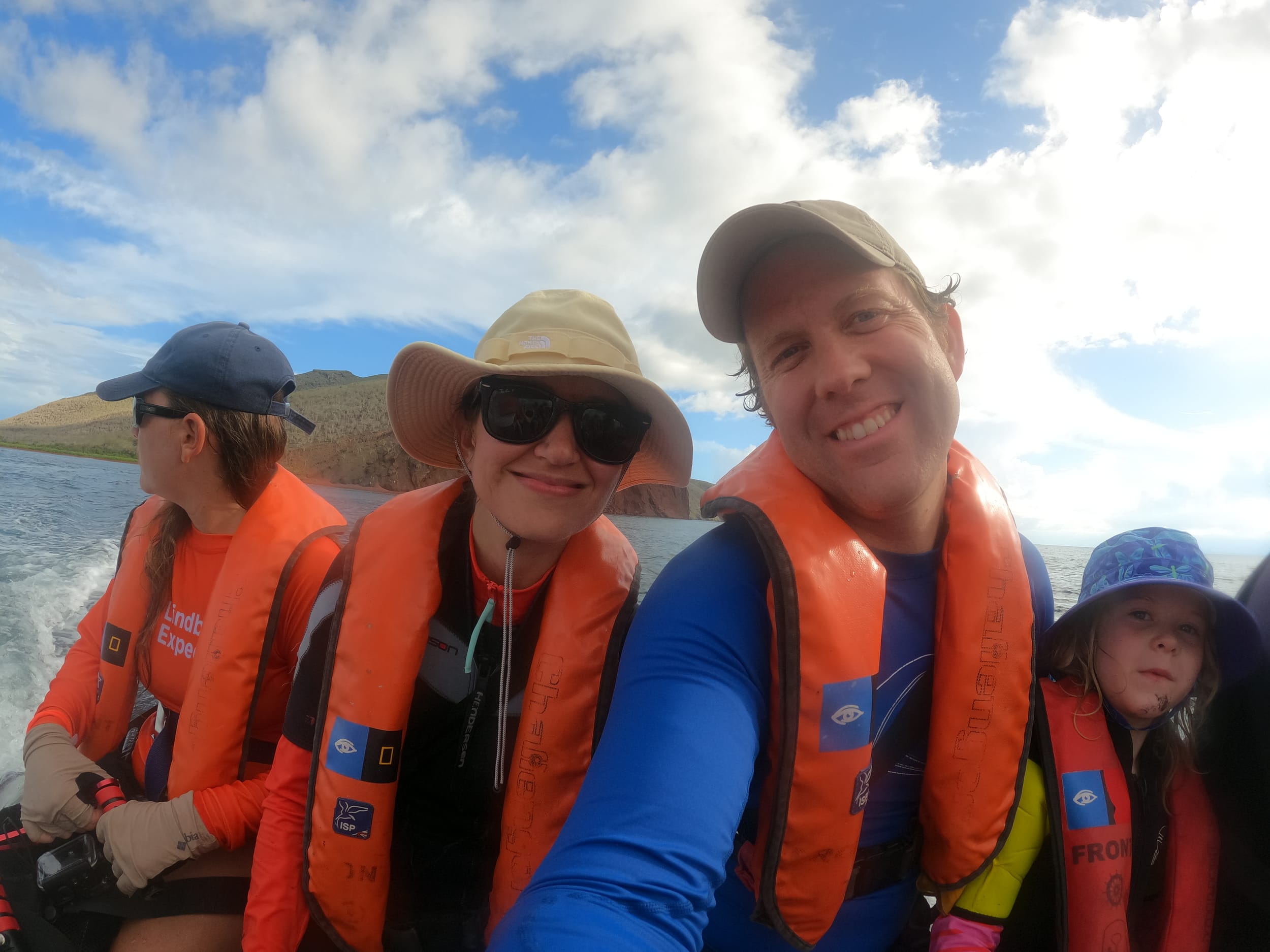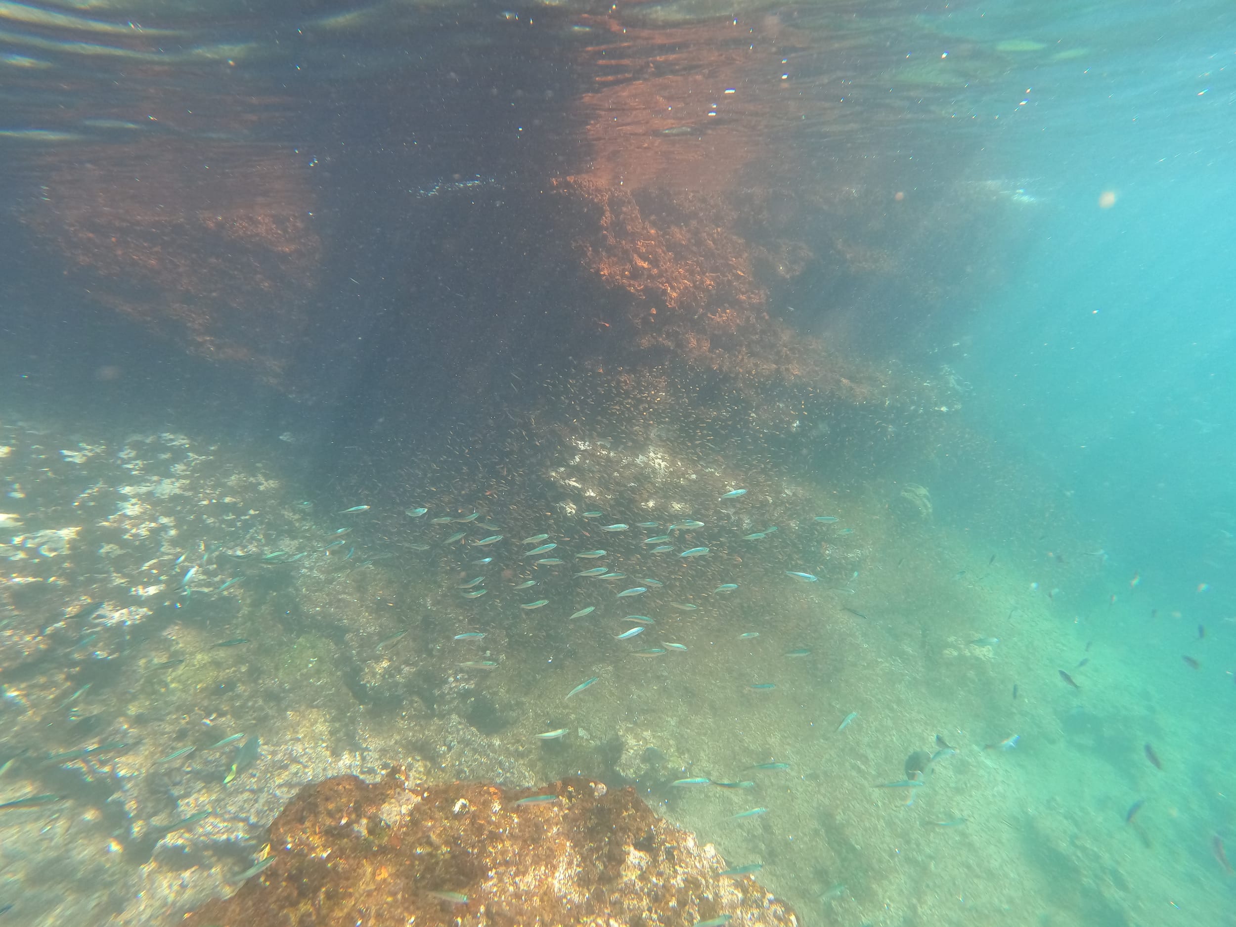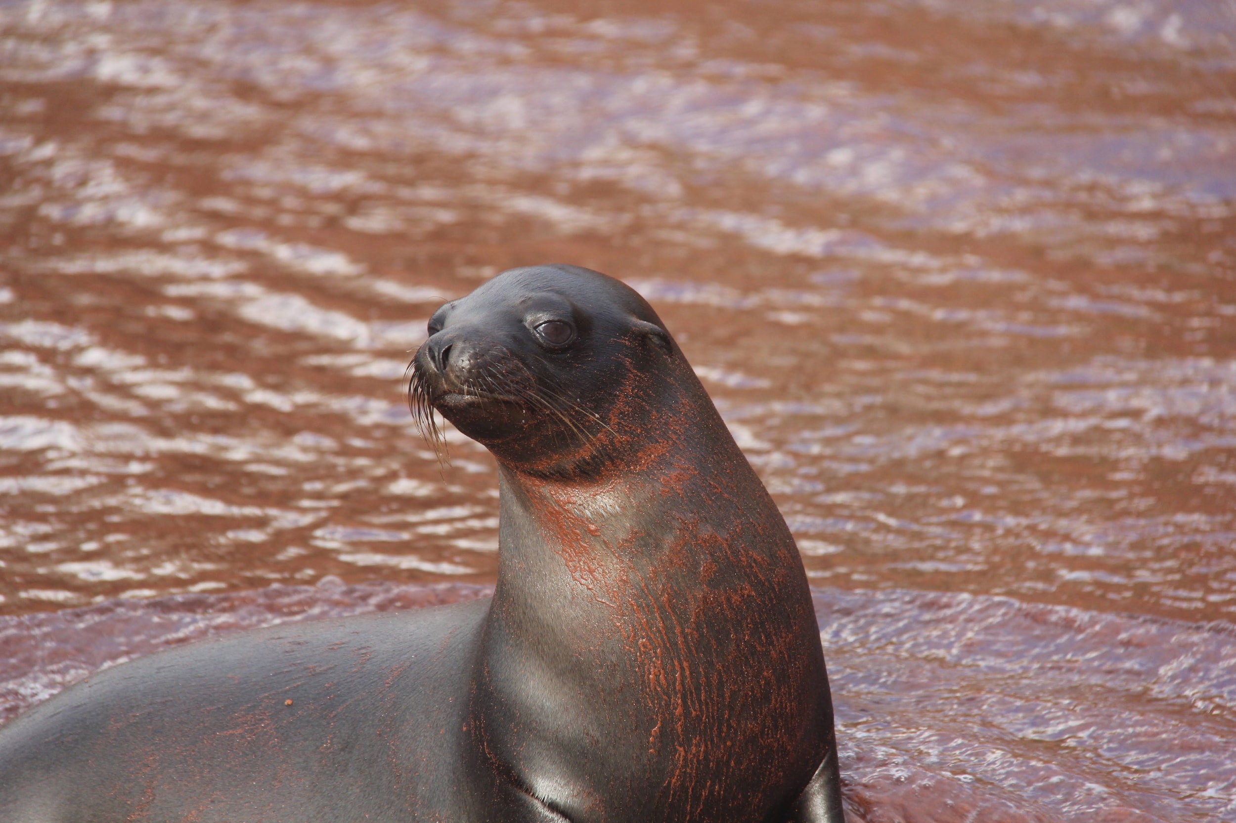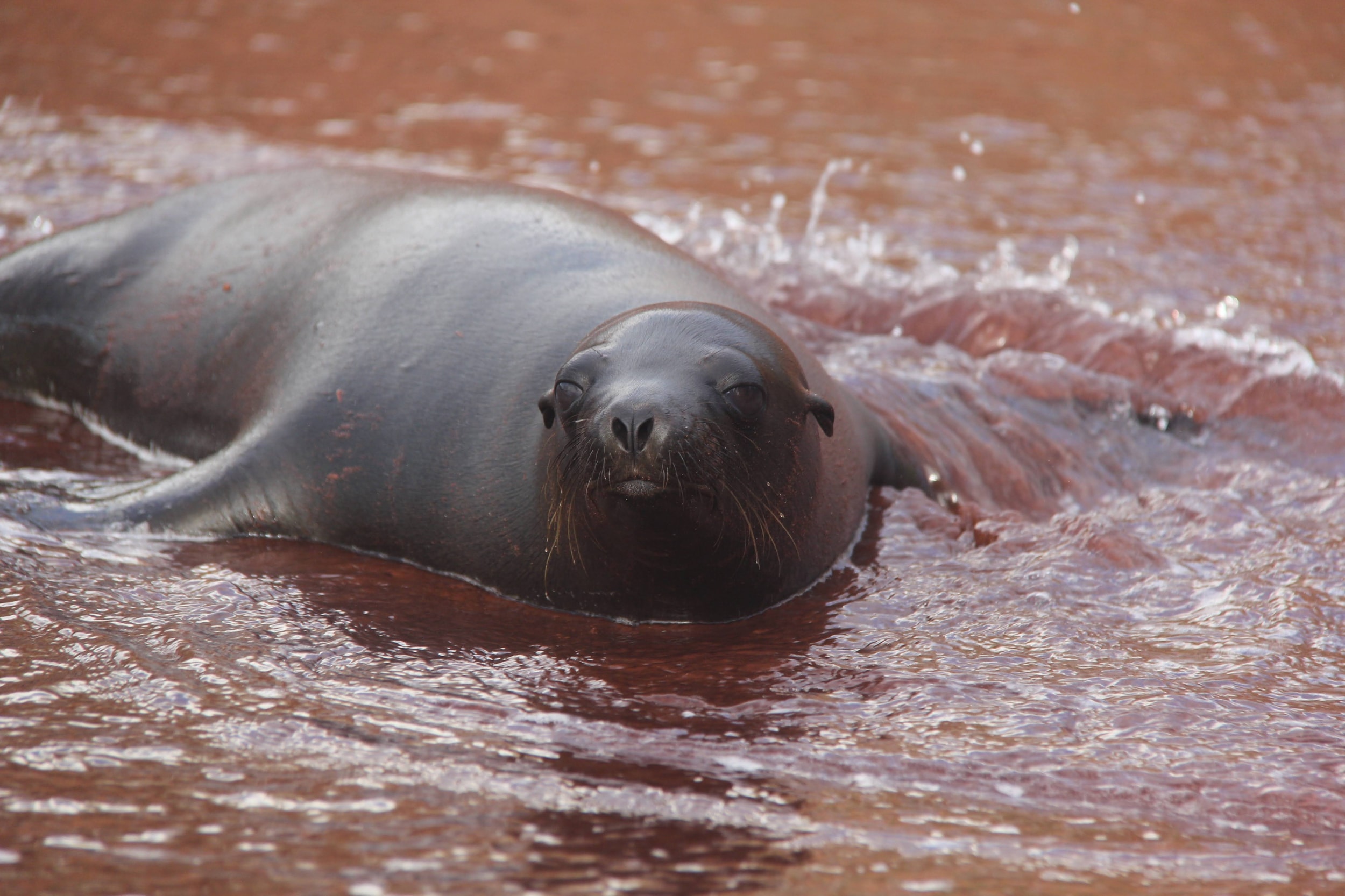 Snorkeling was a perfect afternoon activity as it continued to get hotter after the morning trip. We had the option of snorkeling from the Zodiac, but we opted to leave from the beach to give Sara an easier first time. The beach we were to snorkel from was full of red sand - apparently from the high iron content in the sediment that rusts on contact with water. The beach was beautiful and when we arrived there were a couple of Sea lions sleeping on the beach. Later in the trip I would realize that this is a perfectly common occurrence, but on our 2nd day this was quite cool - primarily that our presence didn’t disturb them in the least.
