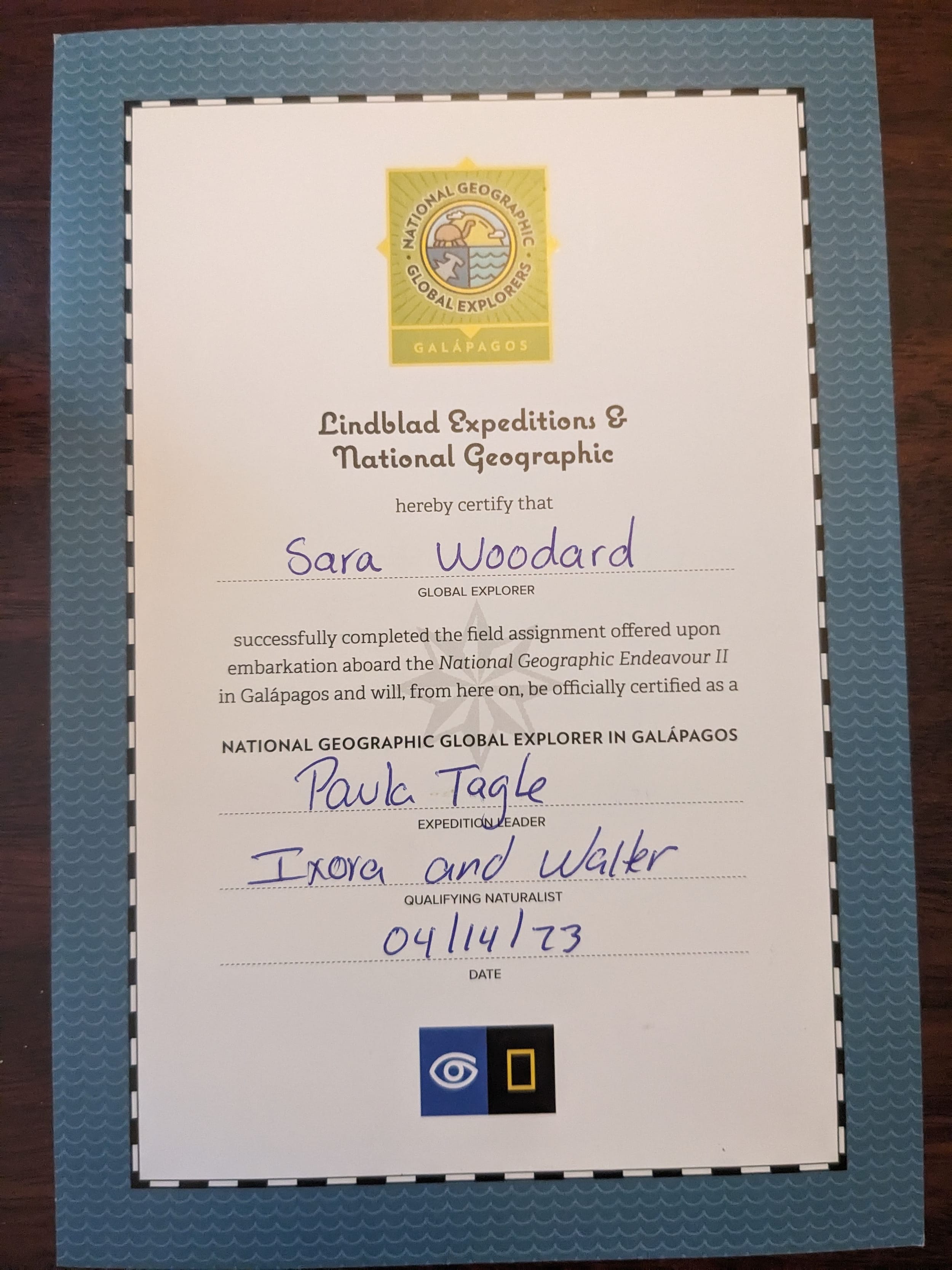 Sara had spent an hour every day this week doing activities as part of a program called global explorers. She got a certificate and became a global explorer at the end of the week! She also got her honorary zodiac license when she learned how to drive the zodiacs (which were basically a much larger version of our dingy at home).