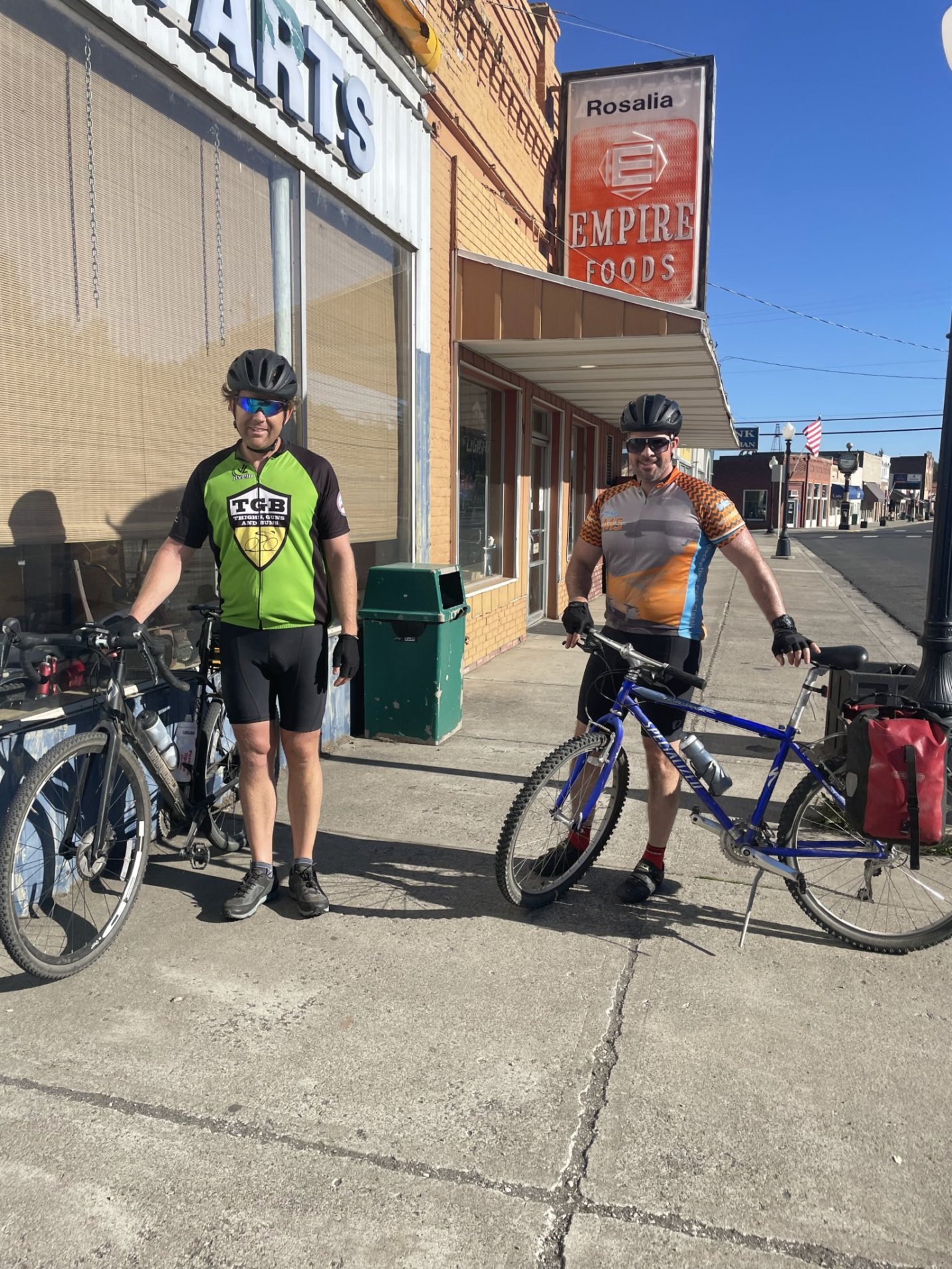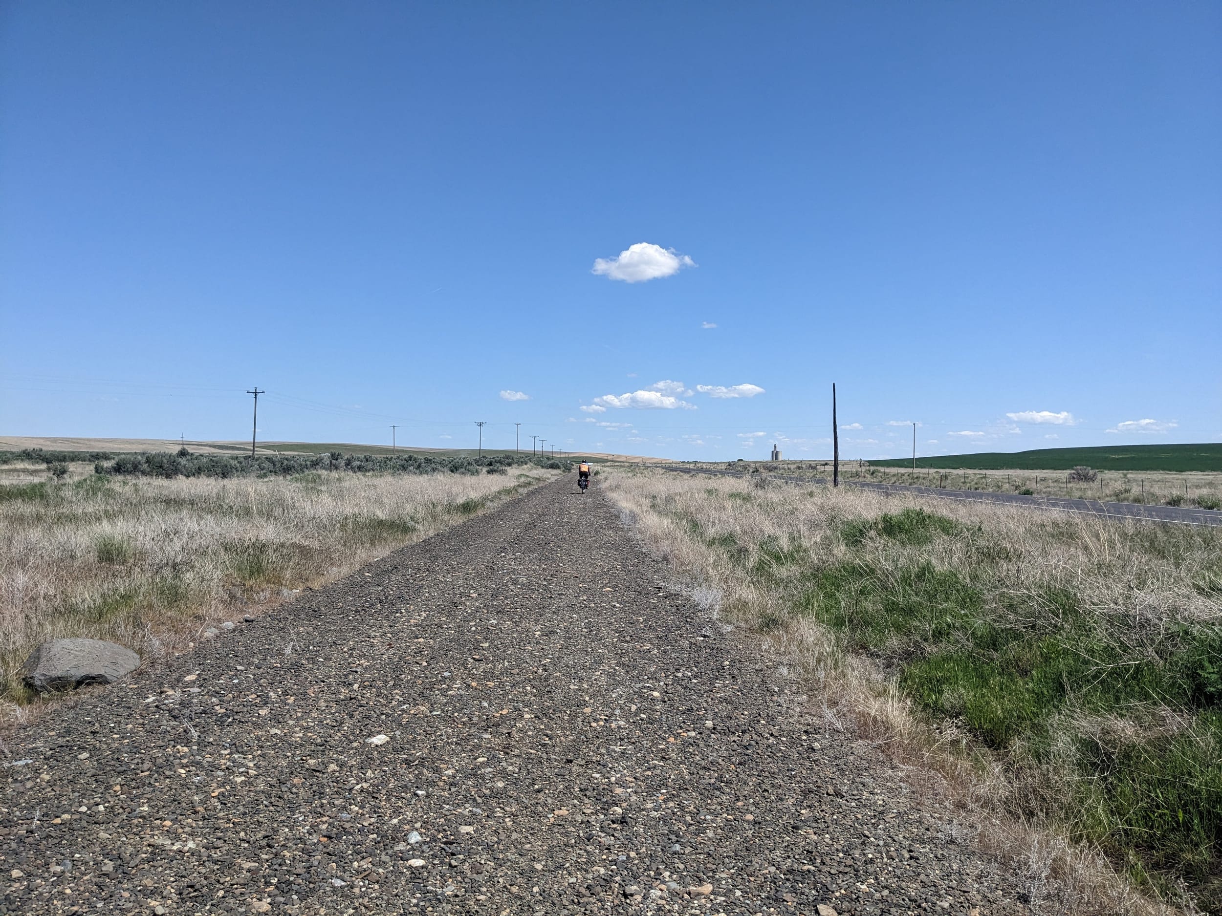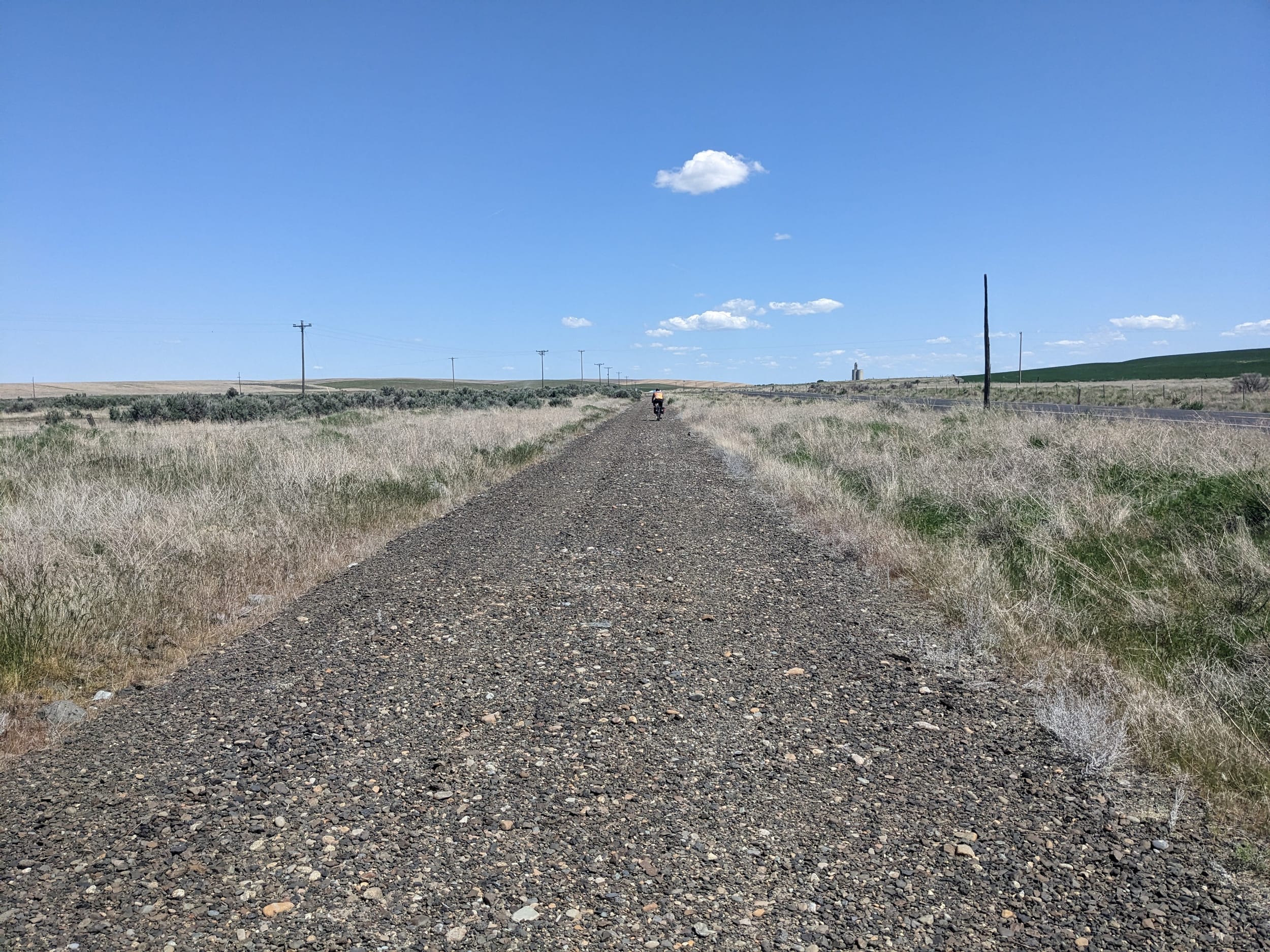 The first 15 miles or so were on busy roads (although we were able to do a frontage road for part of it). Progress was fast, but the ride was unenjoyable (for me anyway - Mark seems to be a lot more comfortable on busy roads and seemed unaffected). We picked the trail back up in Warden where the active railway diverged from the Milwaukee ROW and the state park resumed. The trail from Warden to Lind was amazing - we were making 12-15 mph the whole way over hard pack dirt and basically flat ground. There was a bypass through Lind where a tresle bridge had collapsed and we took a quick break at the grocery store to get a refresh on water/snacks. Lind was a great cycling down - everyone was so nice, asking us where we were coming from and heading too. We hadn’t seen very many riders since we crossed over the Columbia, but clearly this was a hub for folks doing long distance bike rides.
