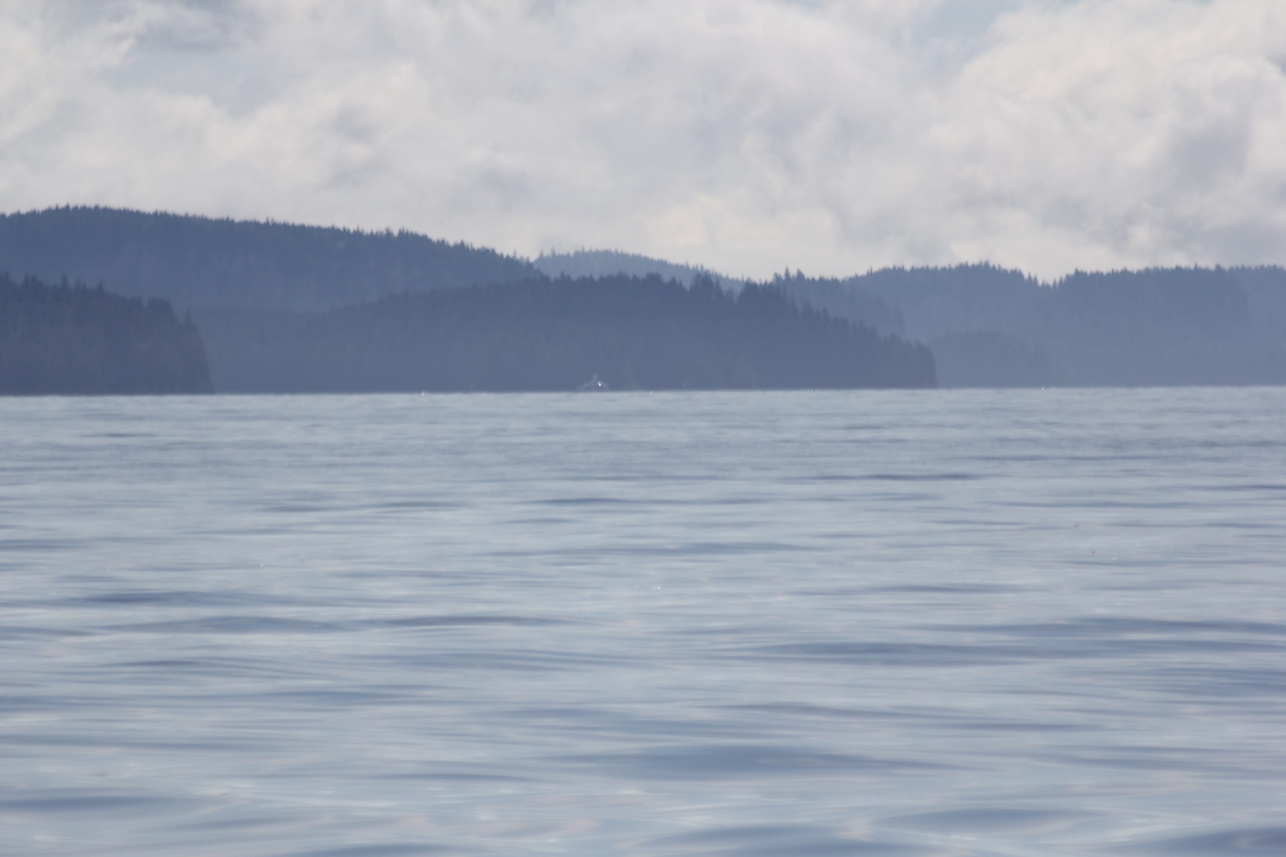 We departed Merrifield Bay relatively late - around 9:30a - so we could pass by Point Baker at max ebb (currents flowing the hardest) in the hopes that it would make for good whale watching. We were successful and there were quite a few whales and they were very active. We even saw them doing bubble net fishing - which is where one whale blows bubbles underwater to corral the fish for the other whales to eat. I have seen picures of this - but seeing it in person I didn’t realize quite how fast the whole thing happens. The ocean starts to bubble and foam and then it builds for maybe 15-20 seconds, and then the whales emerge mouths/fins/etc at the very end for a second. We saw probably 4 or 5 bubble nets as we watched. Unfortunatly, and quite maddeningly, the inside of my DSLR lens fogged up when I brough it up from the warm cabin into the cold cockpit and it refused to clear while we watched. After about 30 min, the wind started to build and an uncomfortable chop developed - which caused us to turn north for the pass.