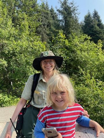 We have been introducing her to the concept for a while and, after several years of resisting, Sara finally got excited about being a Junior Ranger. She has been talking about her nature powers for quite some time and I think the realization that Junior Rangers must have nature powers finally did it. She did her pledge, got her patch, and asked about a million questions of the rangers about the salmon and how they spawn.