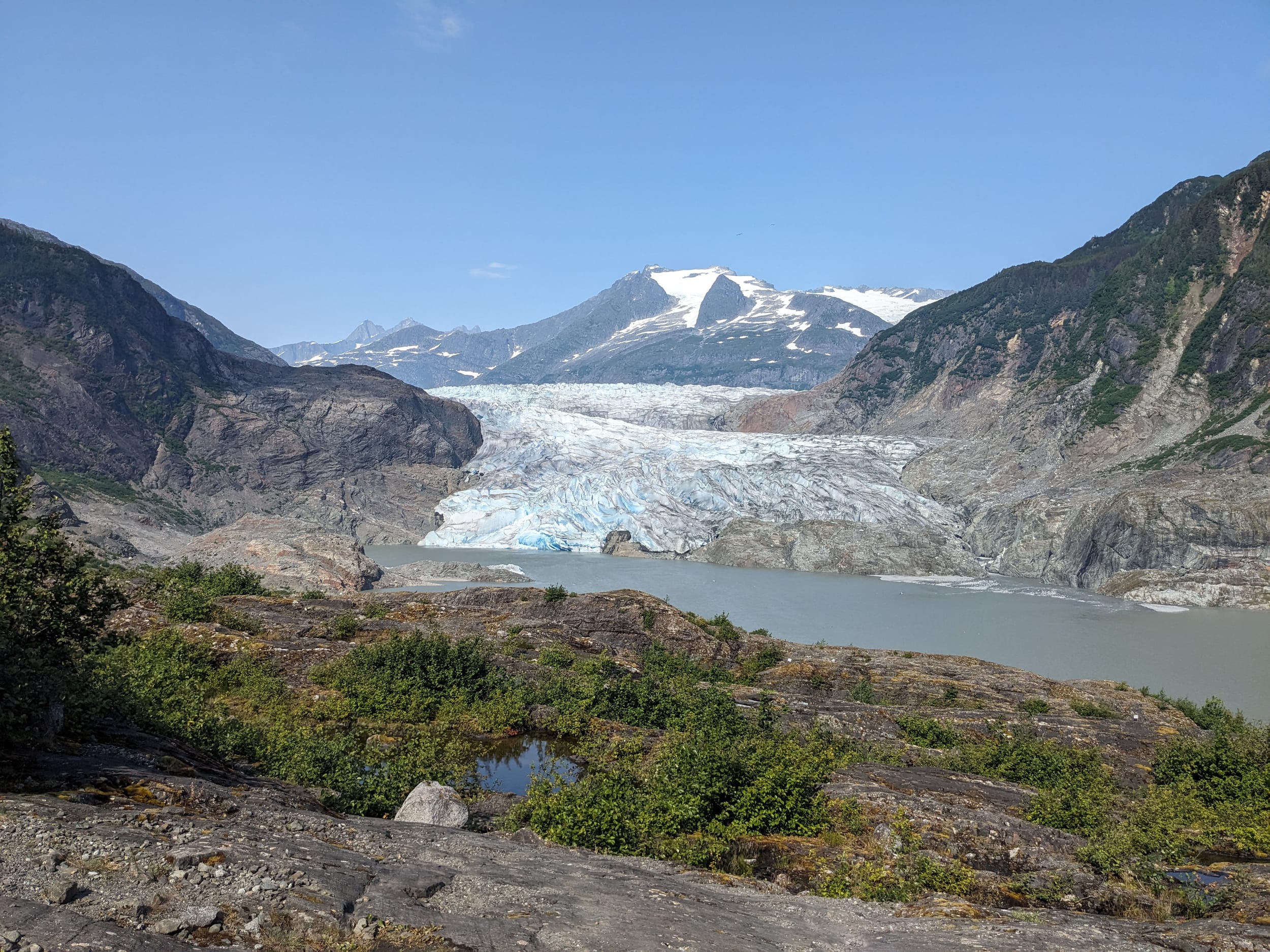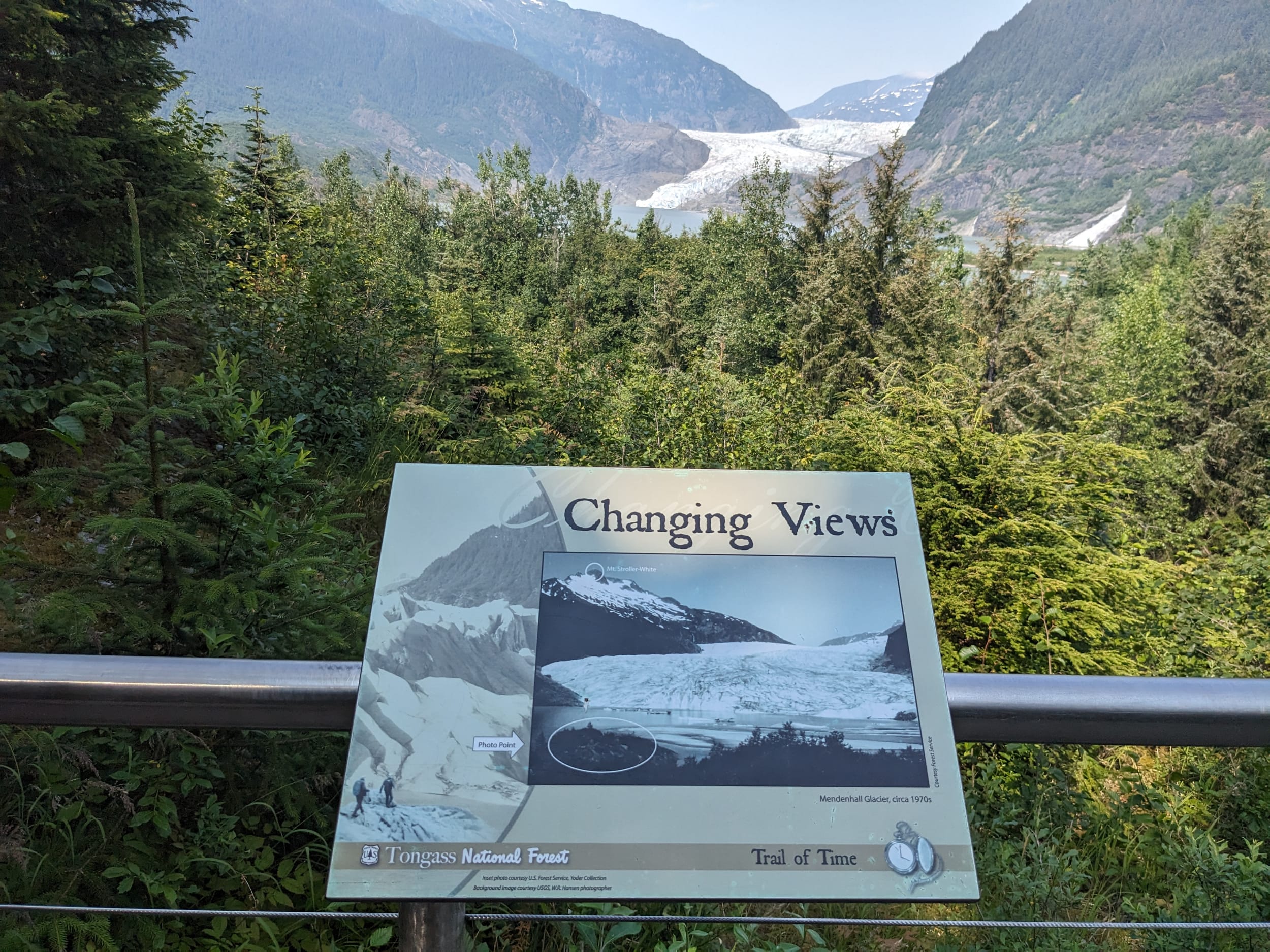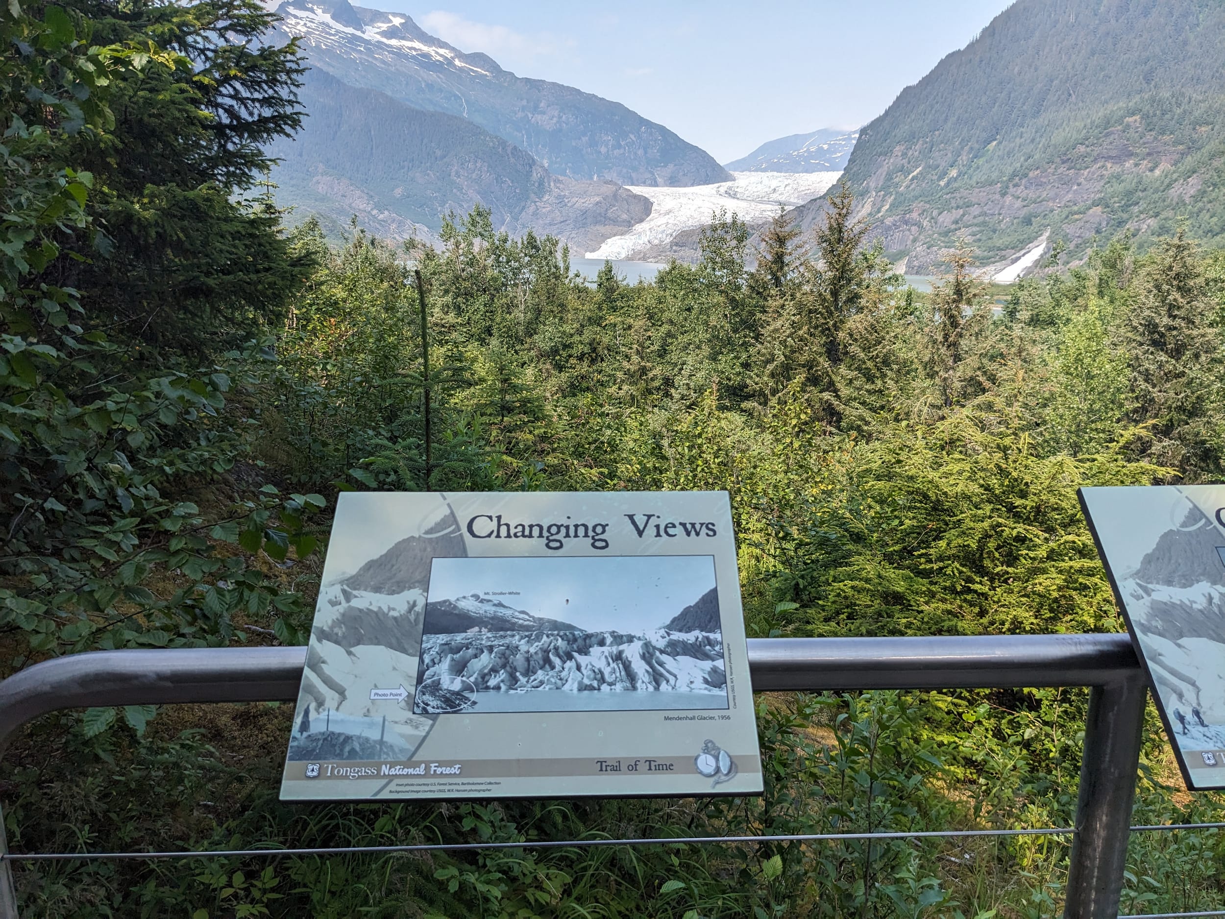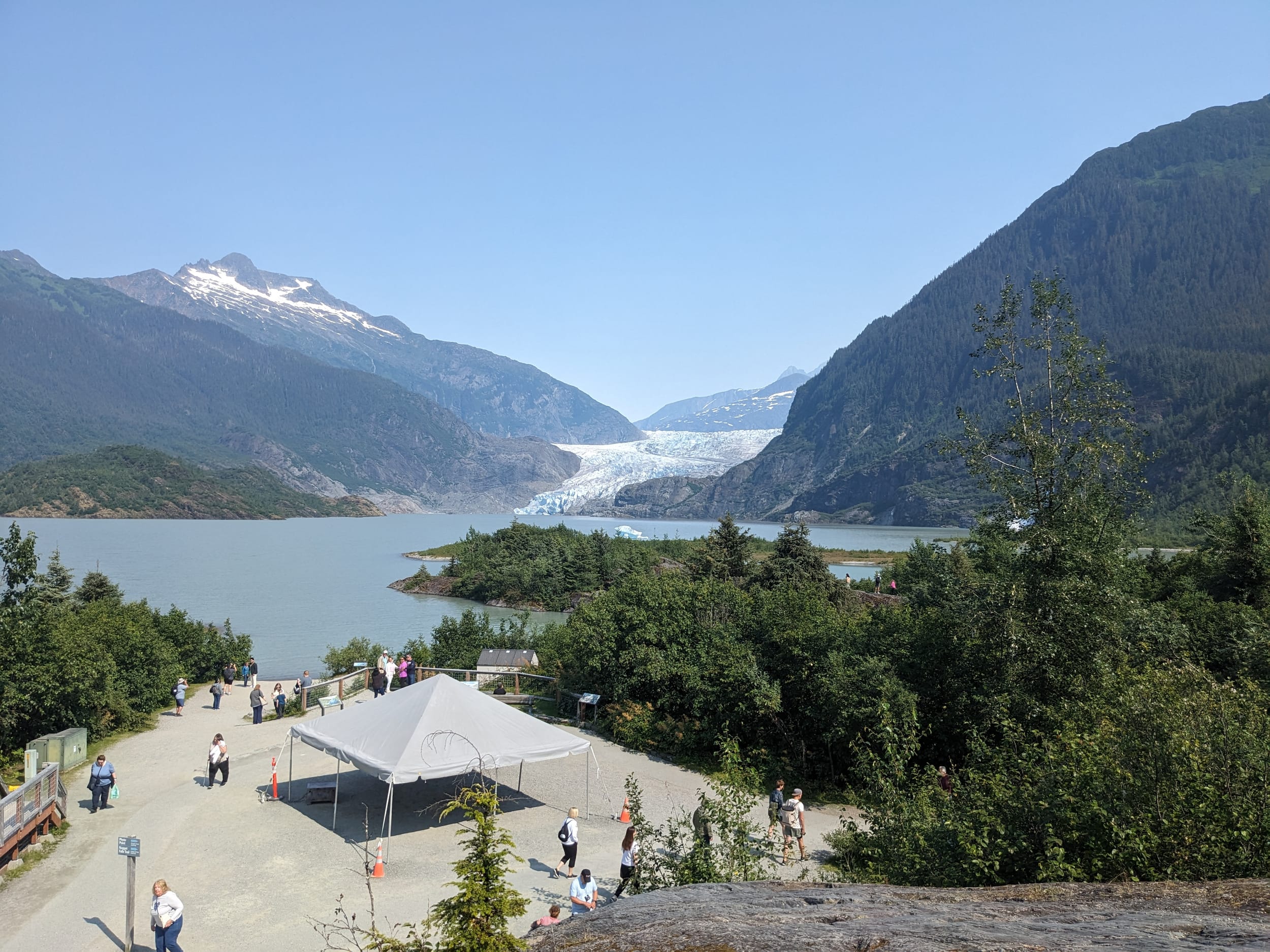 We explored most of downtown yesterday, so today was off to hiking/exploring again. We headed up to the Mendenhall Glacier - which is part of the Tongass National Forest. It seemed to be run like a national park - with park rangers and well-kept trails/visitor center. We did two hikes here - the first was up to the Nuggit Waterfall along the Mendenhall Glacier Lake and the second was a loop called the “Trail of Time” which showcased the transition of the lanscape over time as the glacier has retreated (the glacier has receeded over 2 miles in the last 100 years).