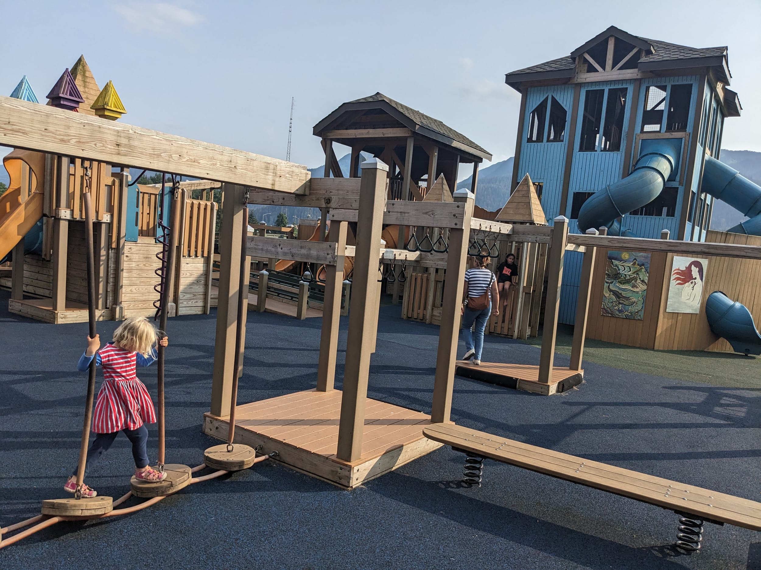 After the brewery, we went to this playground that Angela spotted from the highway. It was the largest playground I had ever seen - complete with small buildings and slides exiting from every angle.