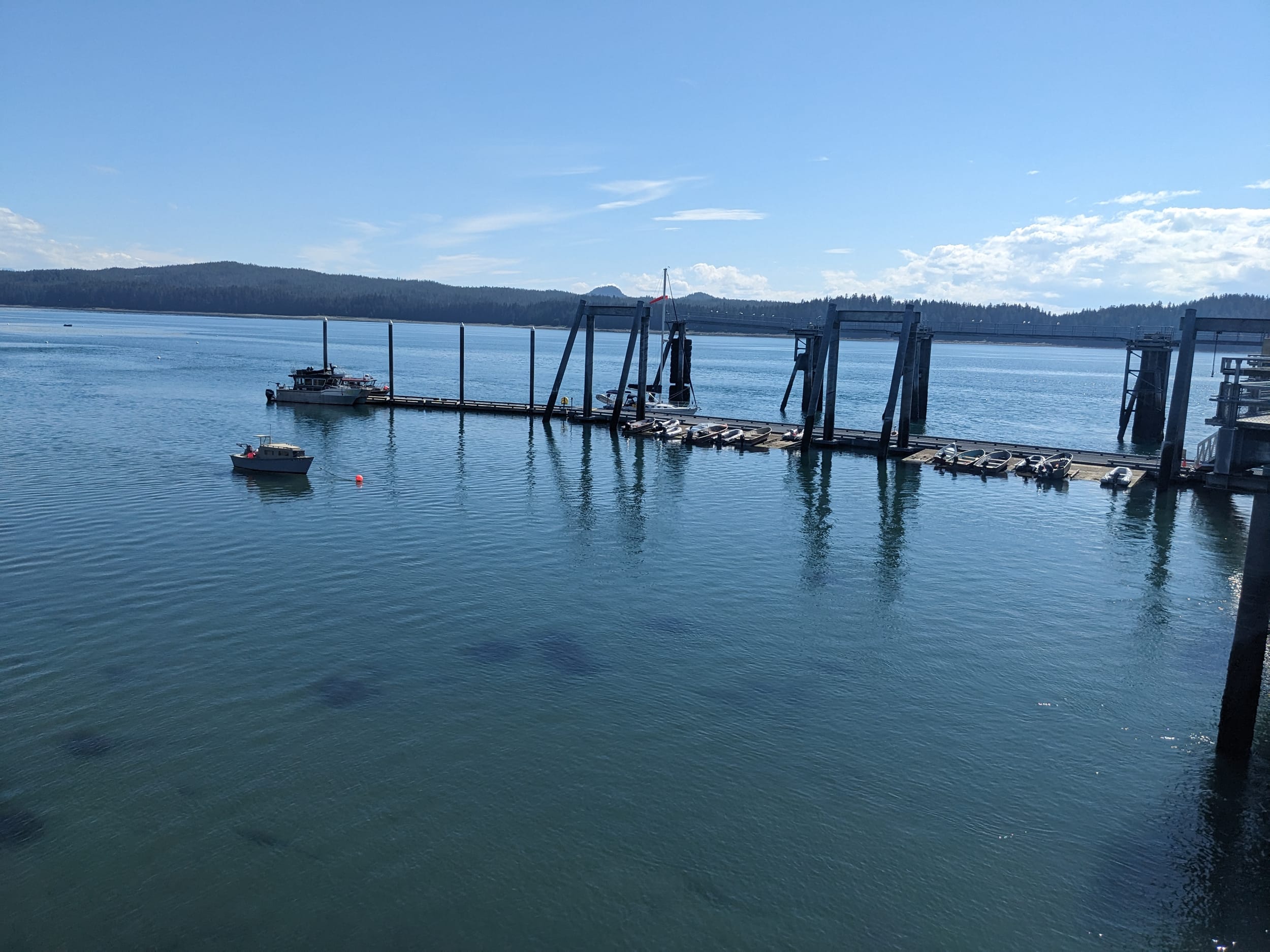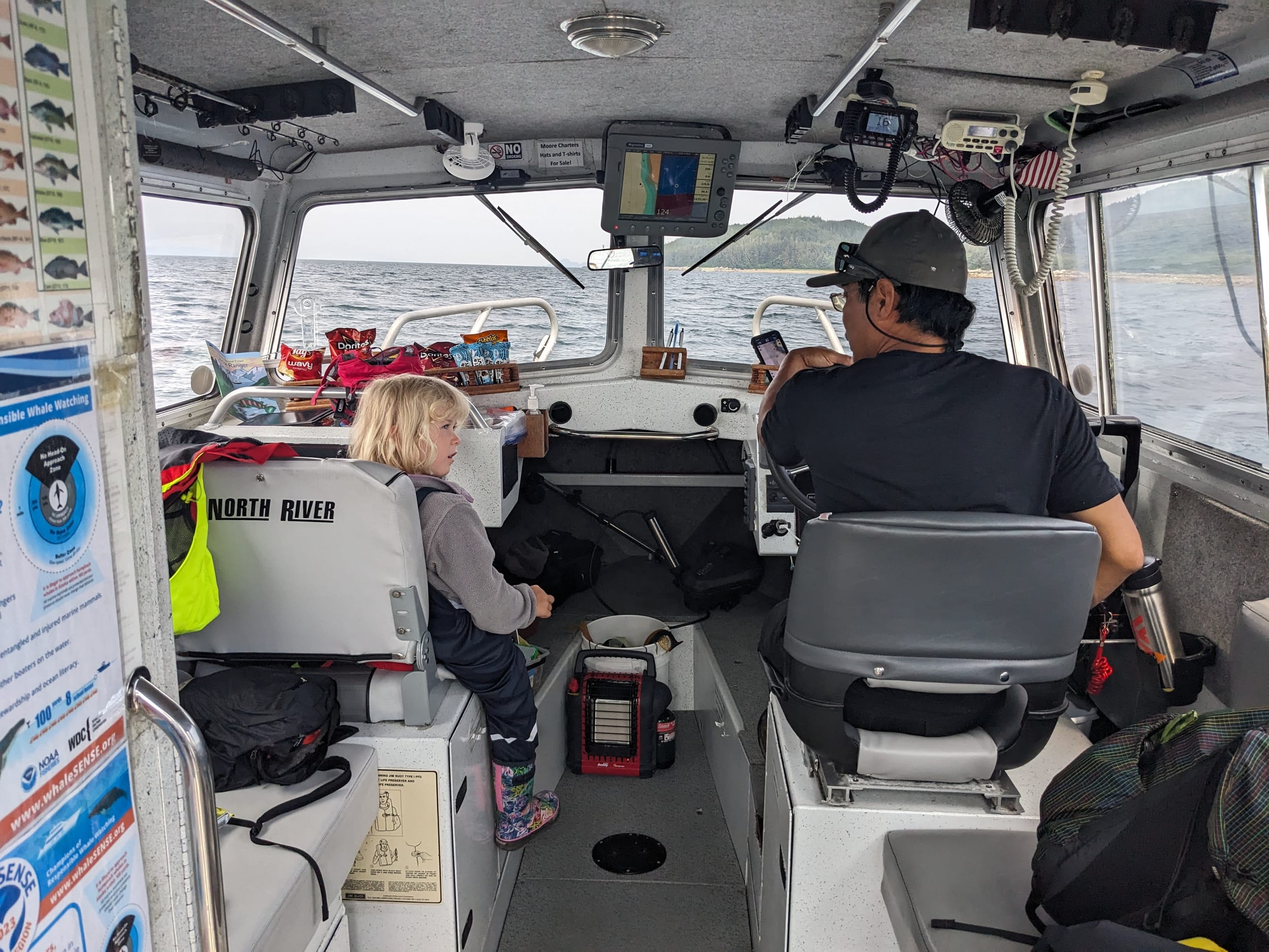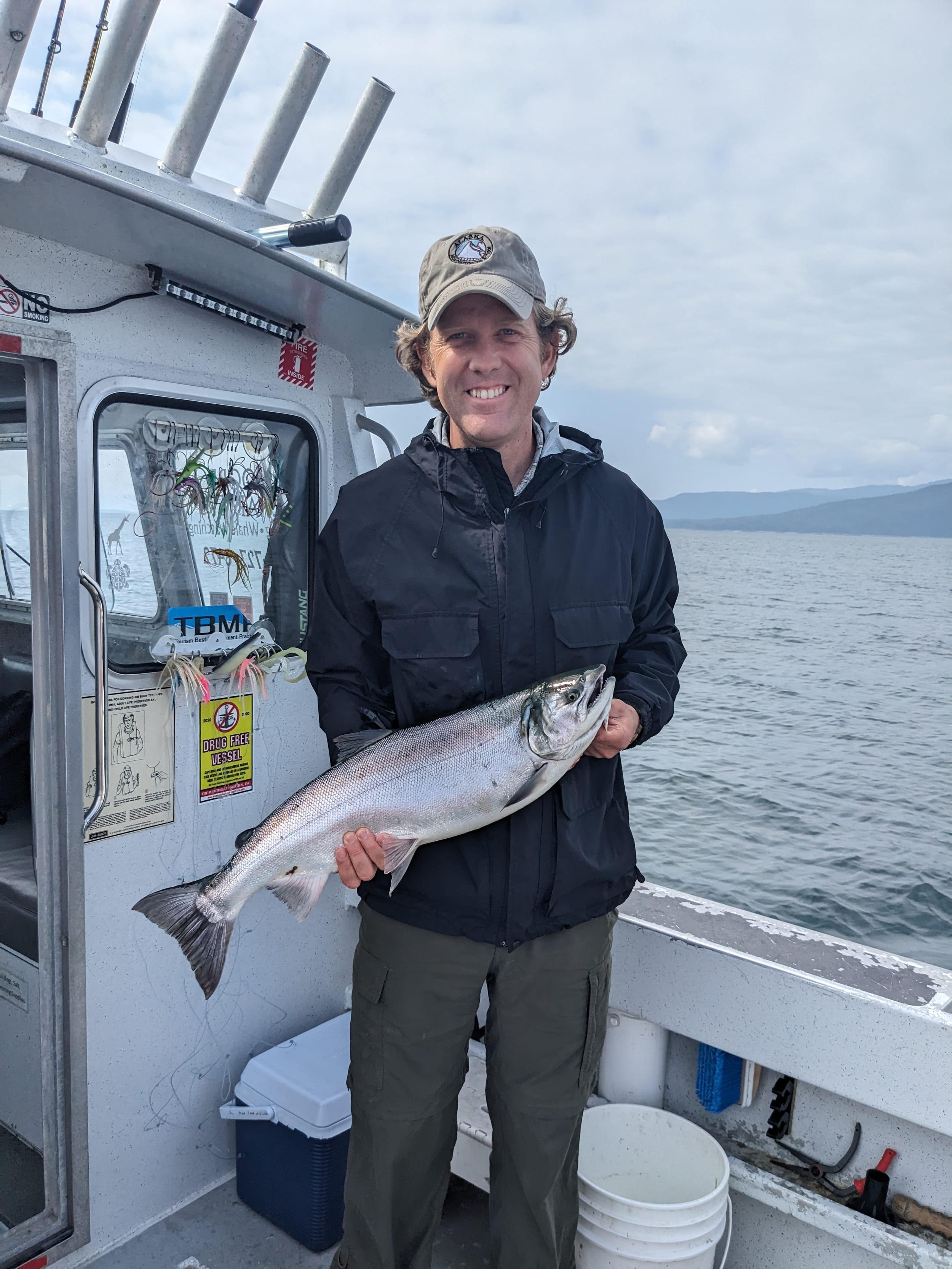 Our day involved a later start than usual with a 10a fishing charter, departing from the marina next door (15 min walk). We met up with captain Levi and his deckhand and one other client - which we later found out also worked for the fishing charter as a mechanic, but was just on this trip for fun. We headed out to the far side of Pt Retreat near Funter Bay - a journey that took about 45 min in this boat but took us the better part of a day in our boat.