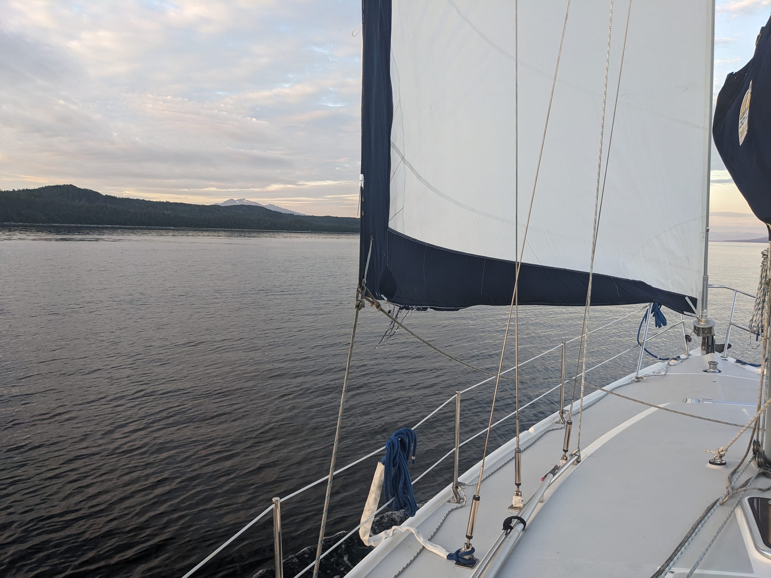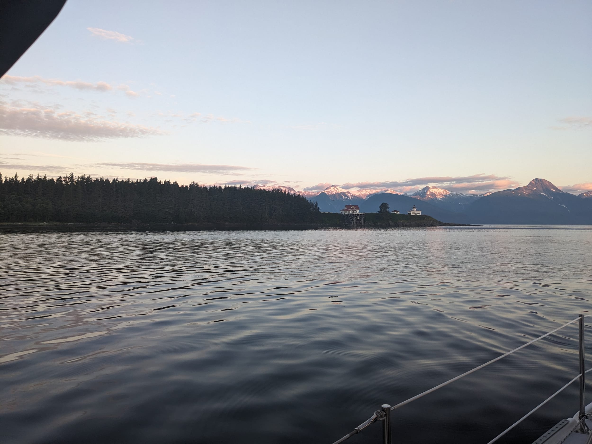 We already miss Oakley, but life without having to go to the shore in the morning is exponentially easier. We woke up at 4:45a and were underway by 4:50a. We pulled into Lynn Channel and immediately had a 3 knot current at our back which stuck with us all the way to icy passage. By the time we were out in the pass, we were thinking we could make it all the way to Bartlett Cove today - until we read the guidebook closer and realized we couldn’t pull into the cove until our permit opened up tomorrow…