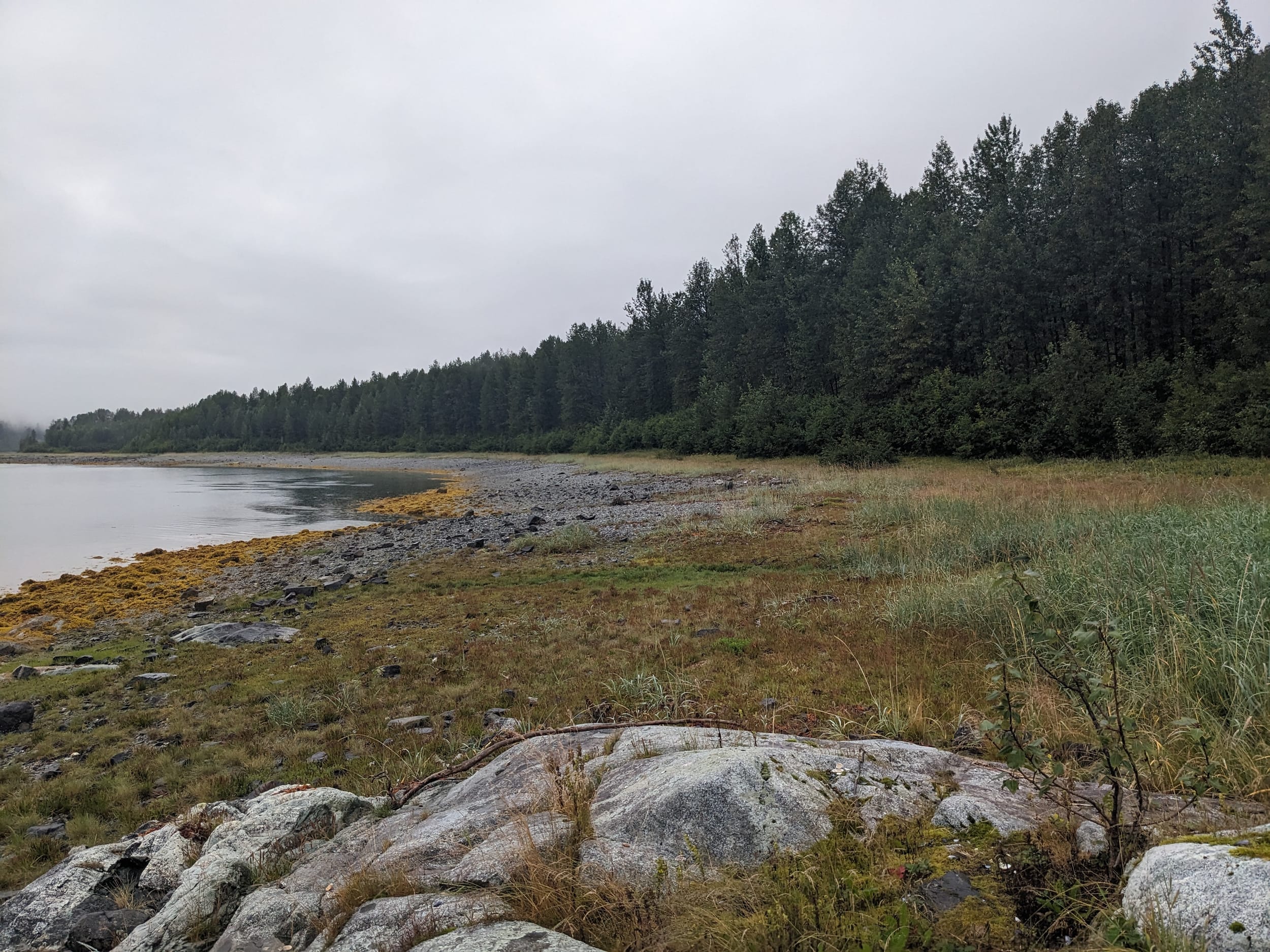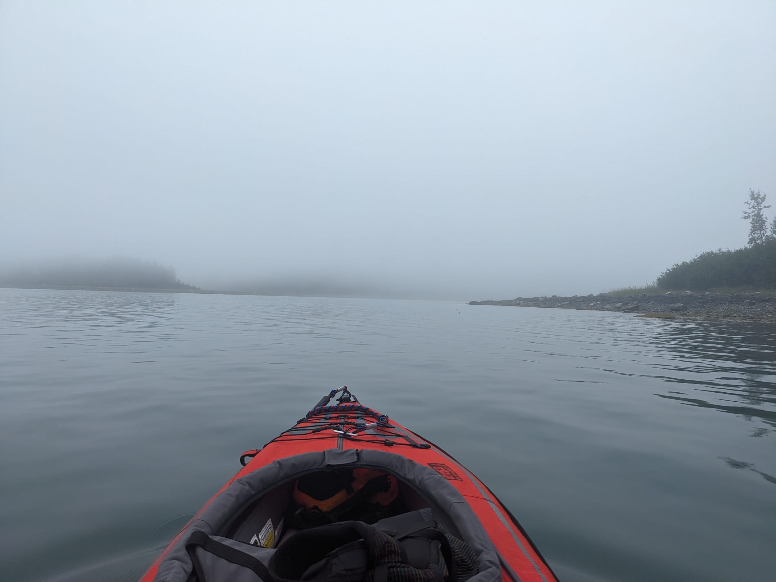 At the crack of 10a, we headed out for a morning excursion - kayaking for me and a shore walk for the three ladies. I took a bit of a longer kayak - going a bit deeper into Hugh Miller Inlet than we had the previous day. It was pretty foggy in the morning, which made the kayak trip that much more amazing.