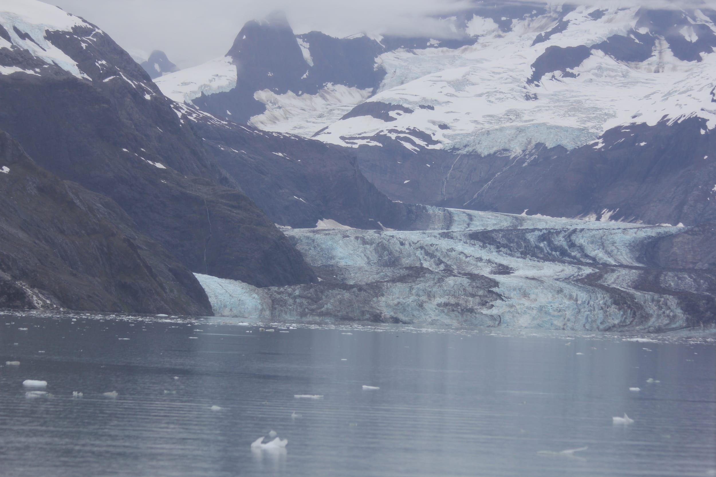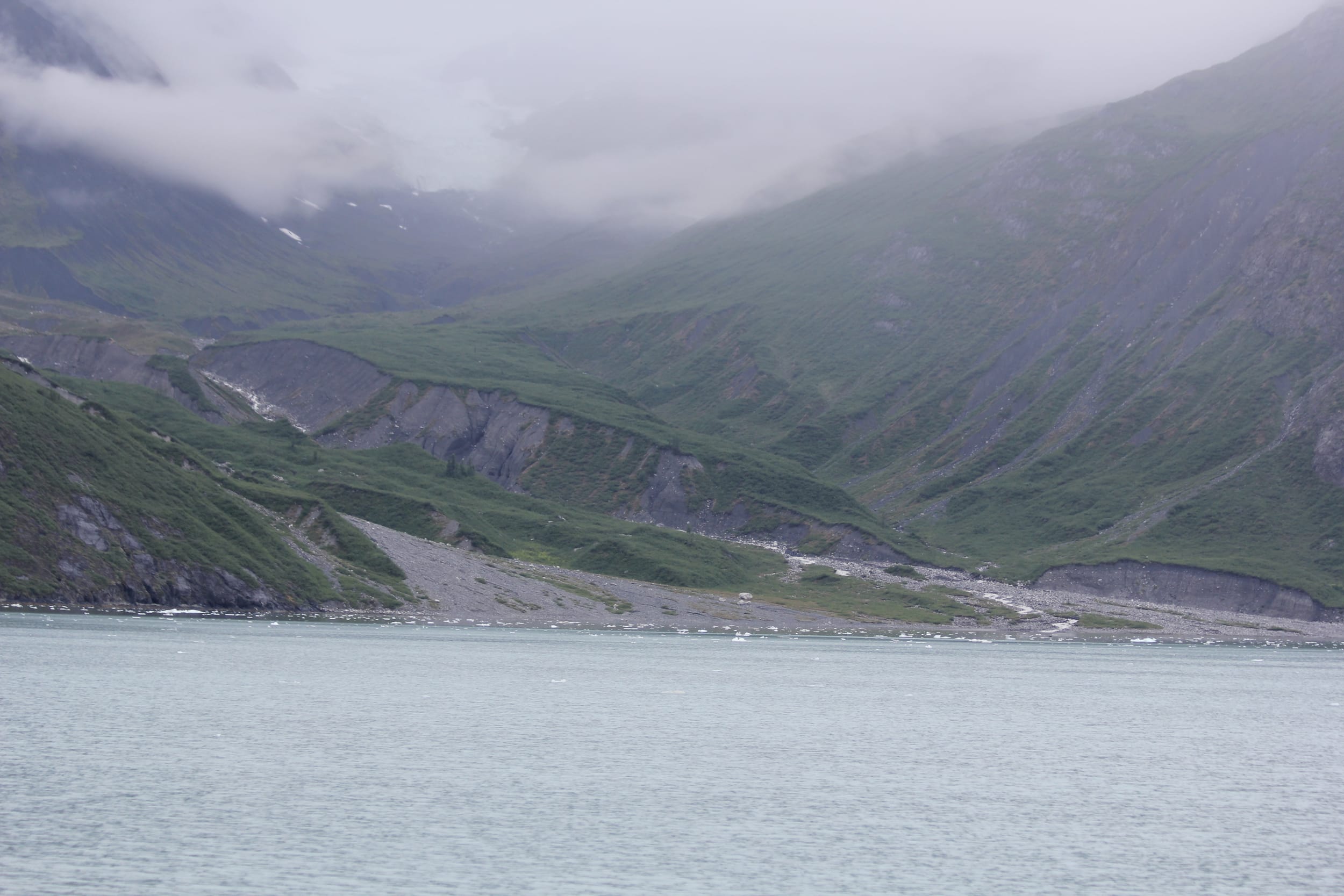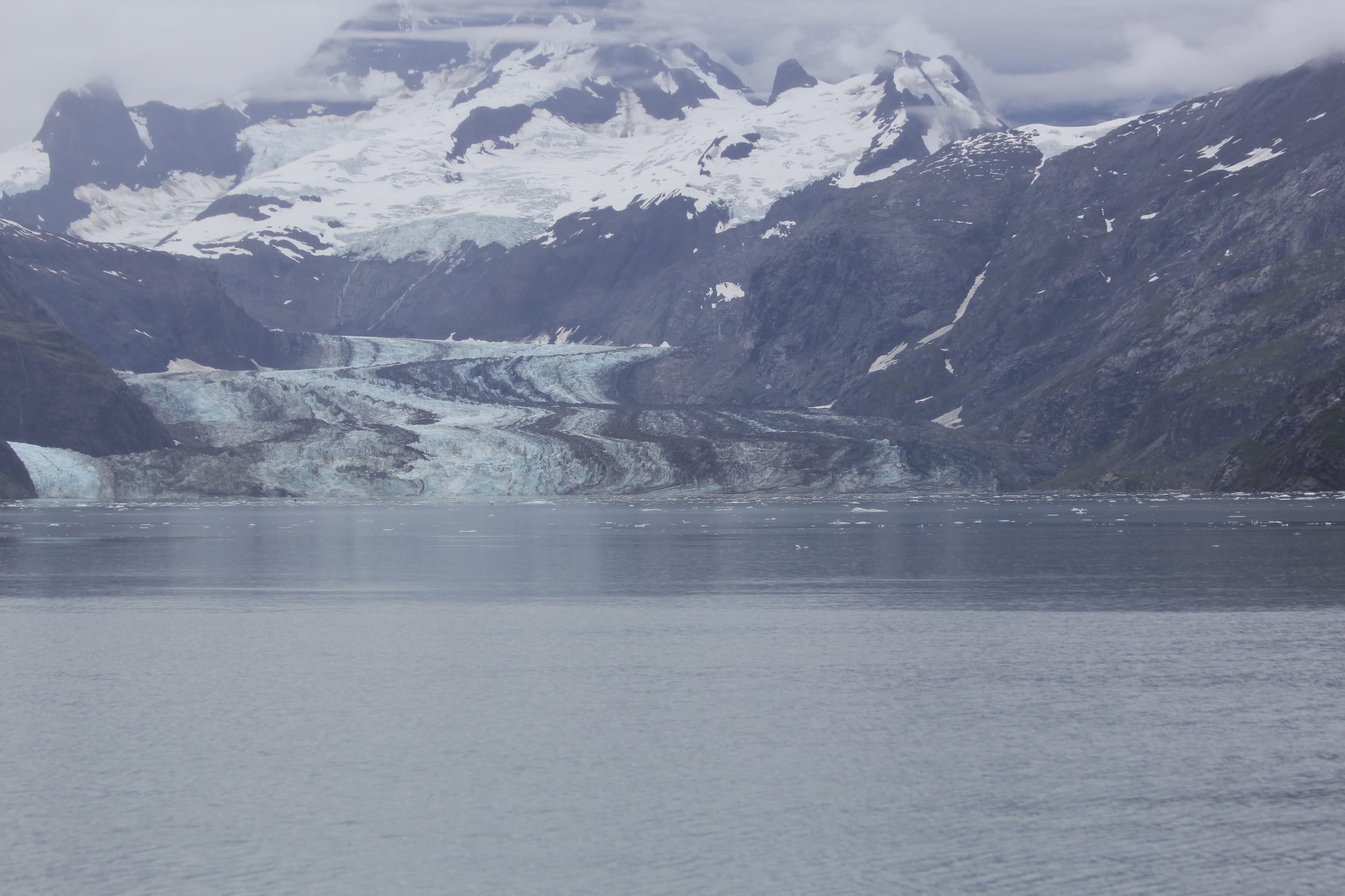 Johns Hopkins turned out to be a little bit of a bust - you know as much as 3 massive tidal glaciers can be in one bay. We were hoping to see a beautiful glacial valley with glaciers galore and scores of icebergs with seal pups hauled out all over them. The valley was beautiful and the glaciers impressive, but less so than Margerie the day before. John Hopkins was also supposed to be the one which is more active in terms of calving - but we saw no evidence of that during the hour or so that we were there. It also seems as though we were too late for the seals - they give birth on the icebergs and it must be too late in the season for them. We did see some whales departing the bay as we were entering - likely heading away from the noisy cruise ships, so there’s that.